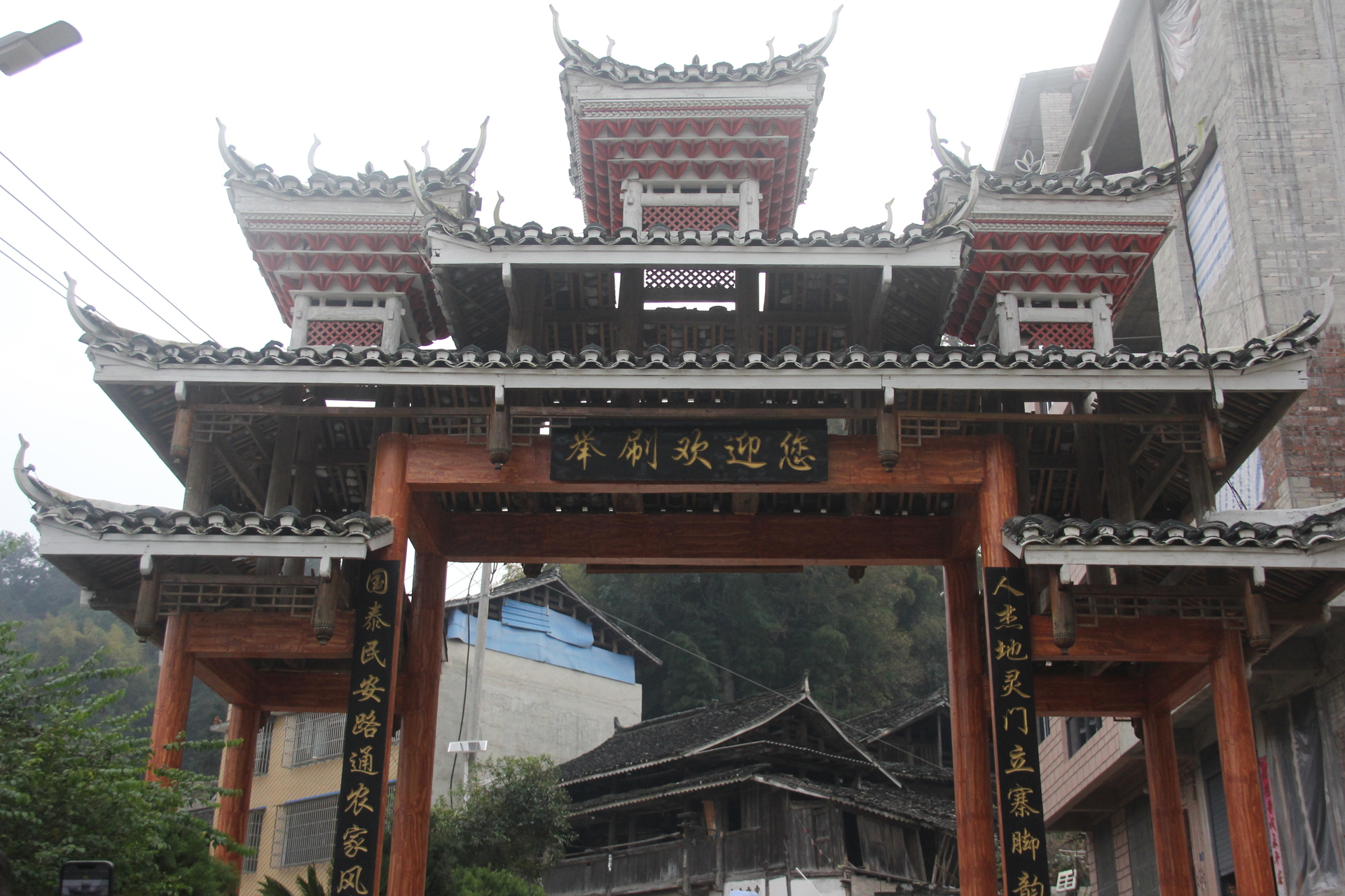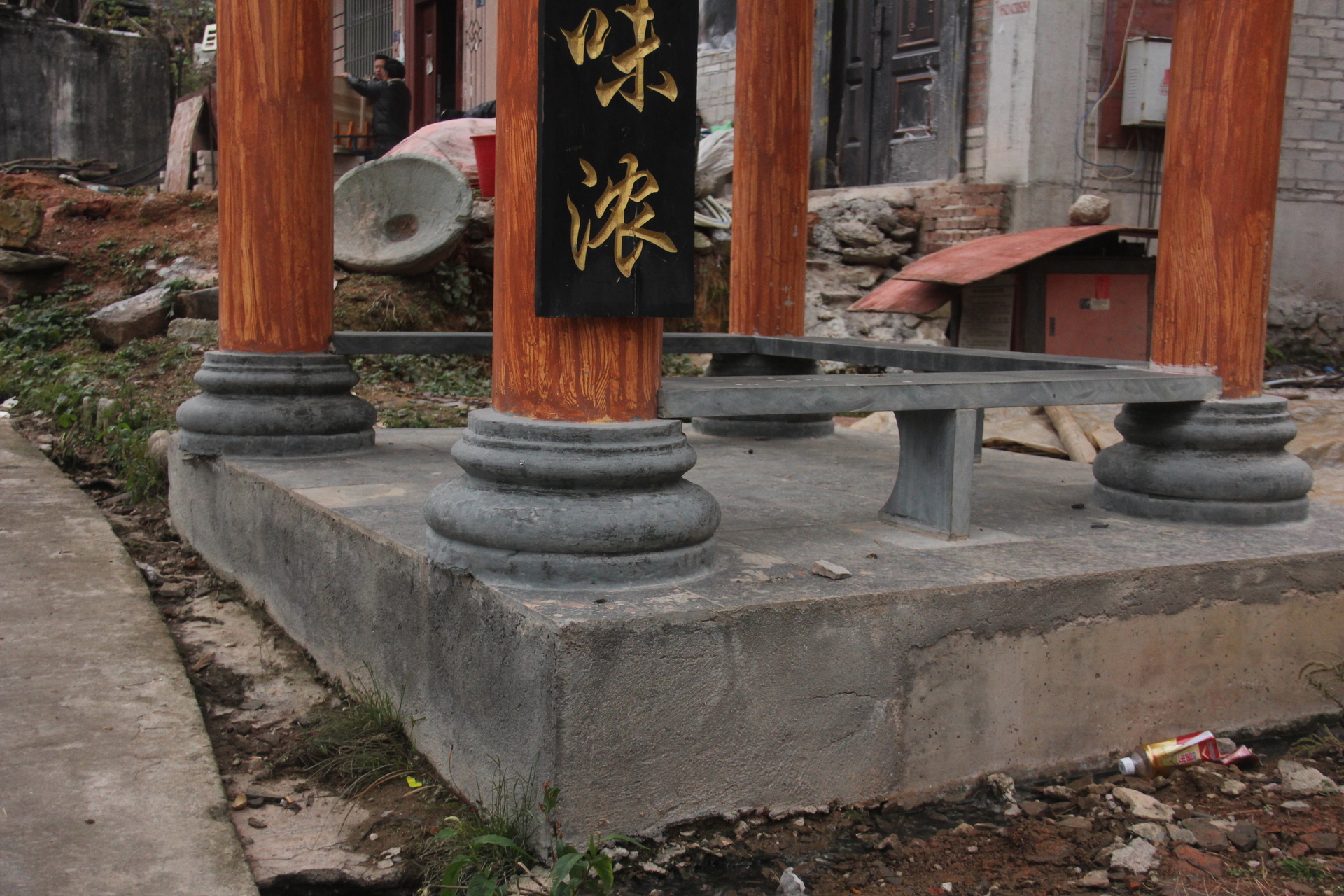 水泥柱与木作结合,柱子是水泥,