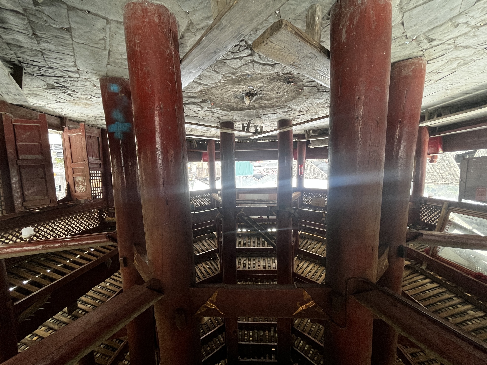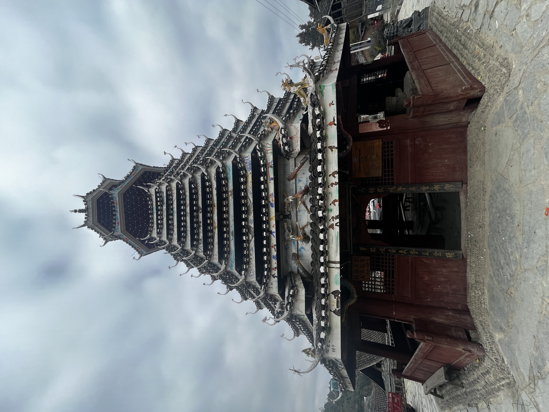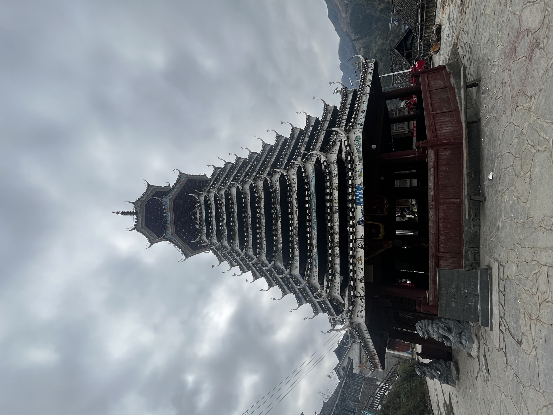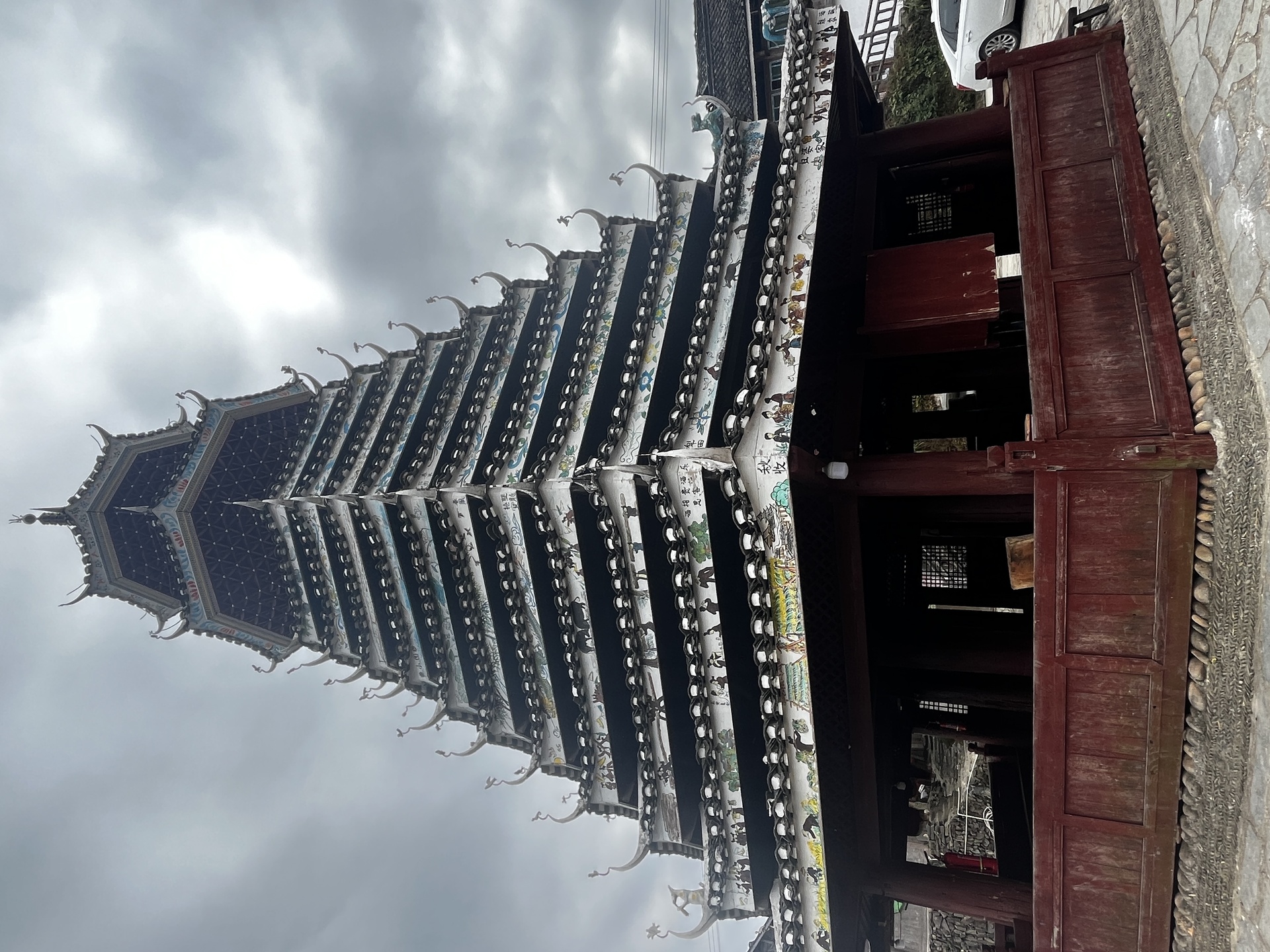 高仟村 下寨 宰俄鼓楼 (8对8柱)八角鼓楼,13层,始建雍正(1723-1735)全国重点文物, 30多年前建 湖南师傅来建 老人说)
