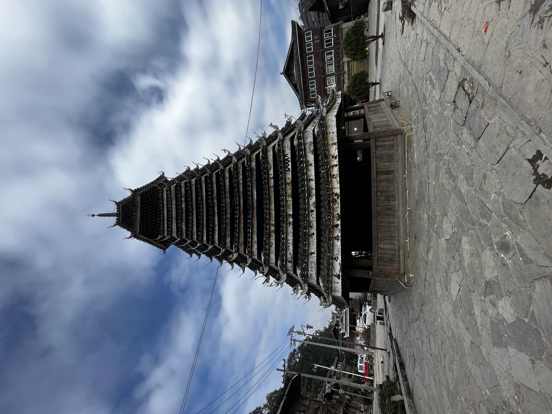 高仟村 上寨 宰养鼓楼( 6对6柱)六角鼓楼,估计有500年)