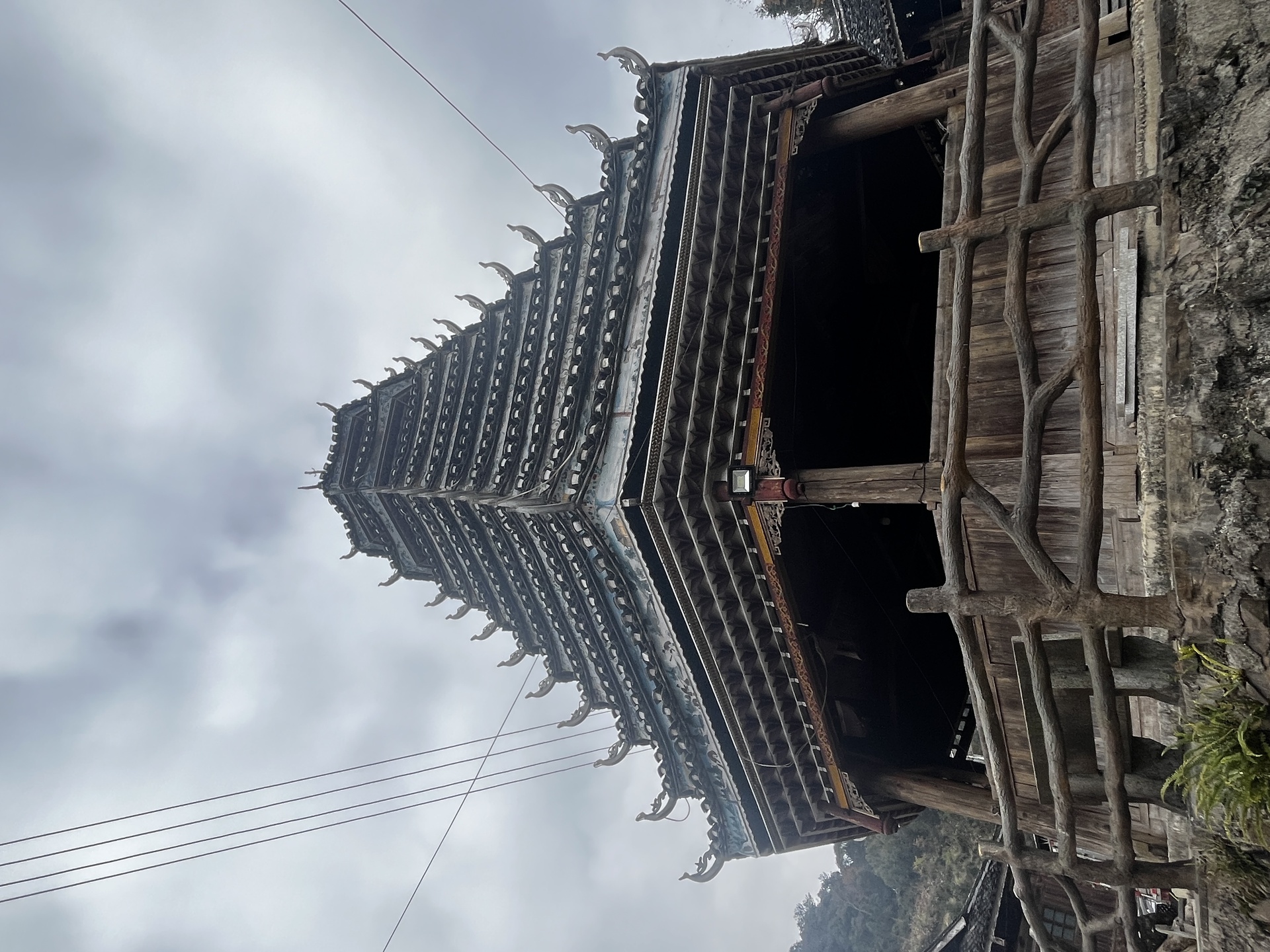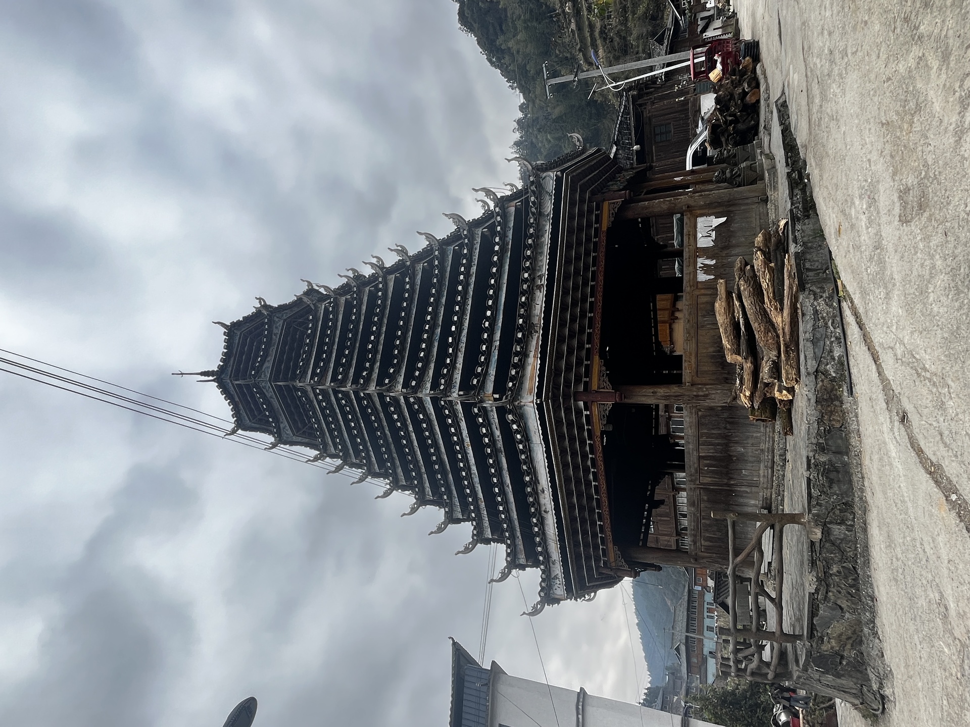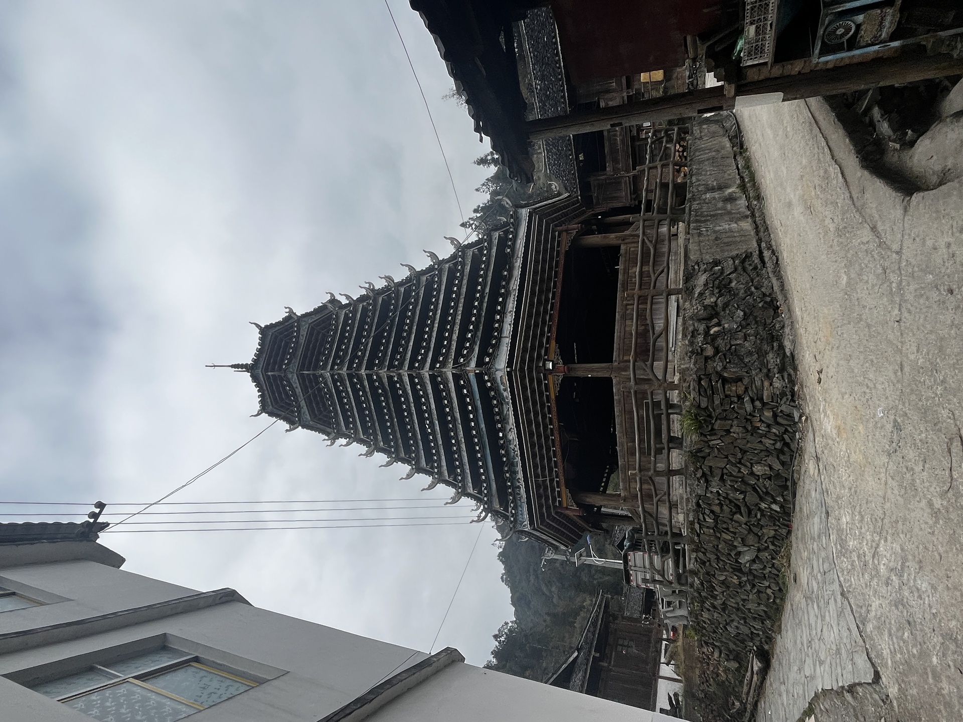 秧里村 上寨鼓楼 (4柱变8柱)的八角鼓楼,始建道光帝(1824年间)11层 ,2016年修建,每户7000元,
