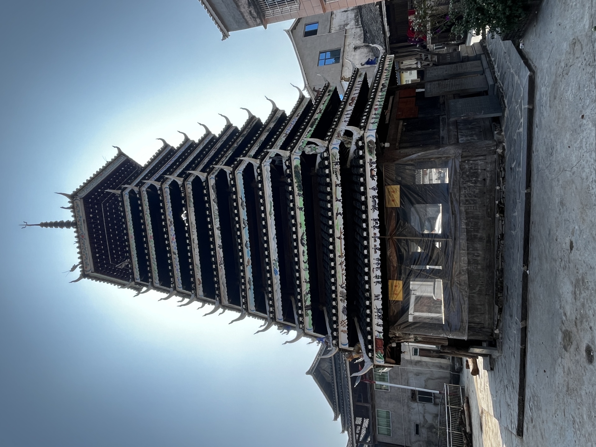 则里村 则里鼓楼 1984年为县级文物,2007年维修 2008年竣工,杨氏, 400多年了 木匠(湖南通道师傅 第一个 kkkni增冲鼓楼)首批传统村落,(高千村 鼓楼)80多户,180人 ,八卦 六合)