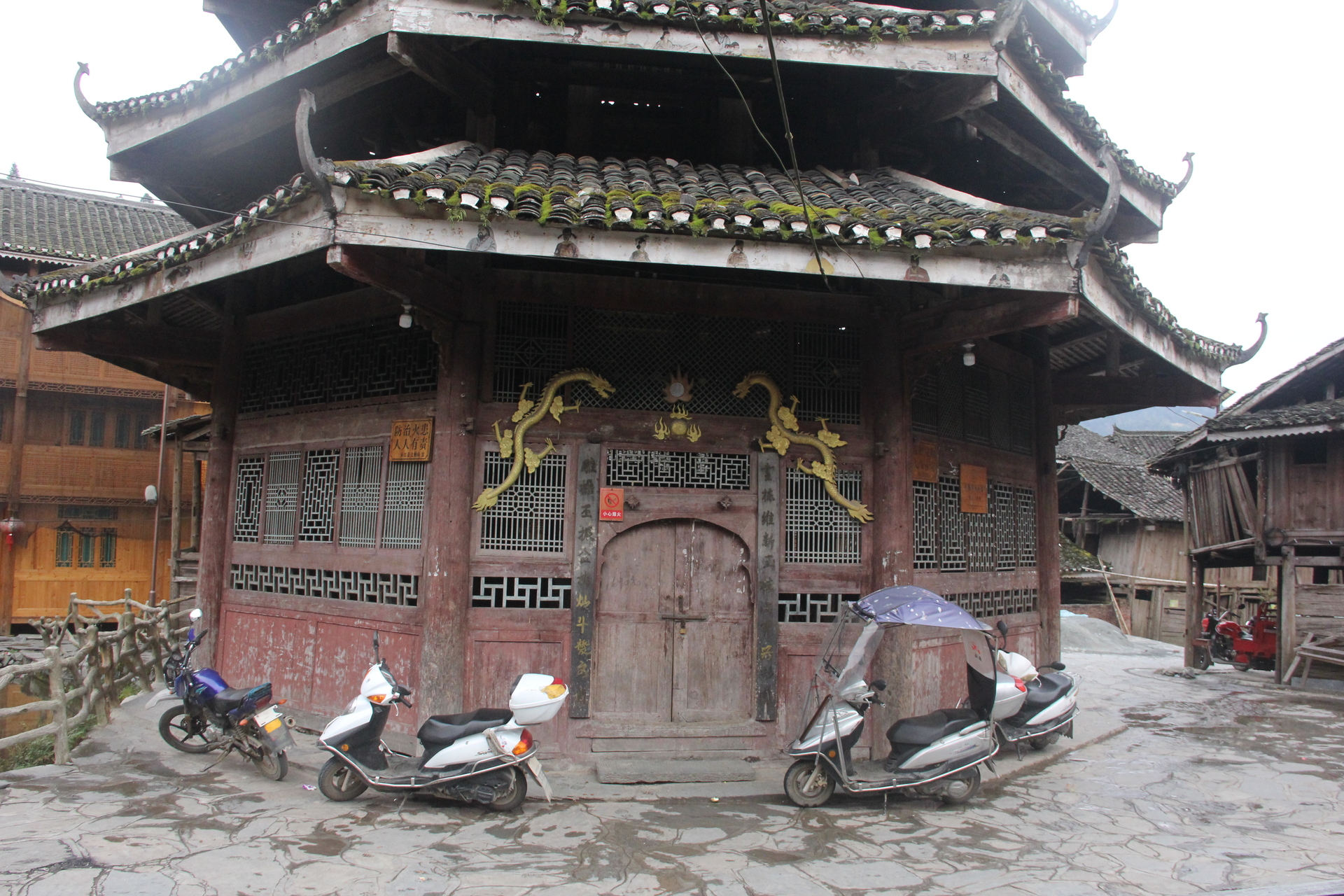 增盈村 上寨 增盈鼓楼 ,(8对8柱)八角7层攒尖顶鼓楼,省级文物单位,明朝搬迁过来,大清朝顺治12年(1655年)曾多次维修,于2006年大修