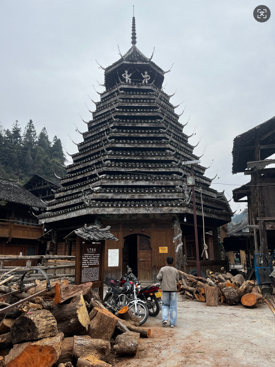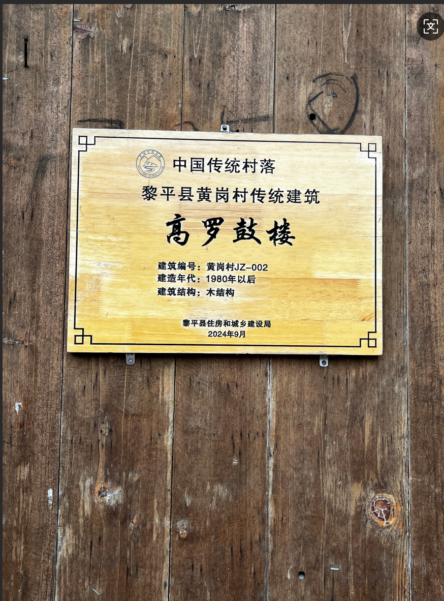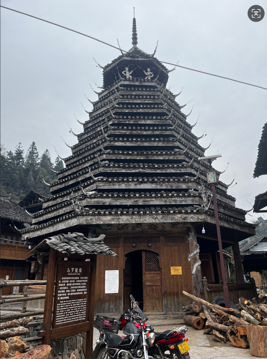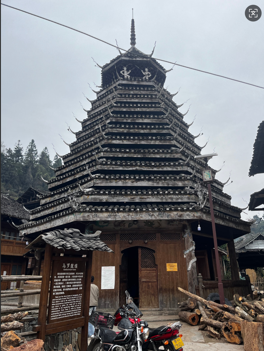 黄岗 高罗鼓楼 1980年 2003年重建 四寨村 木匠,年文财(已故)