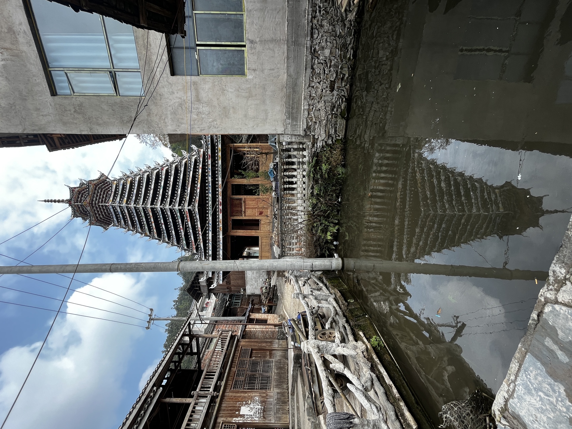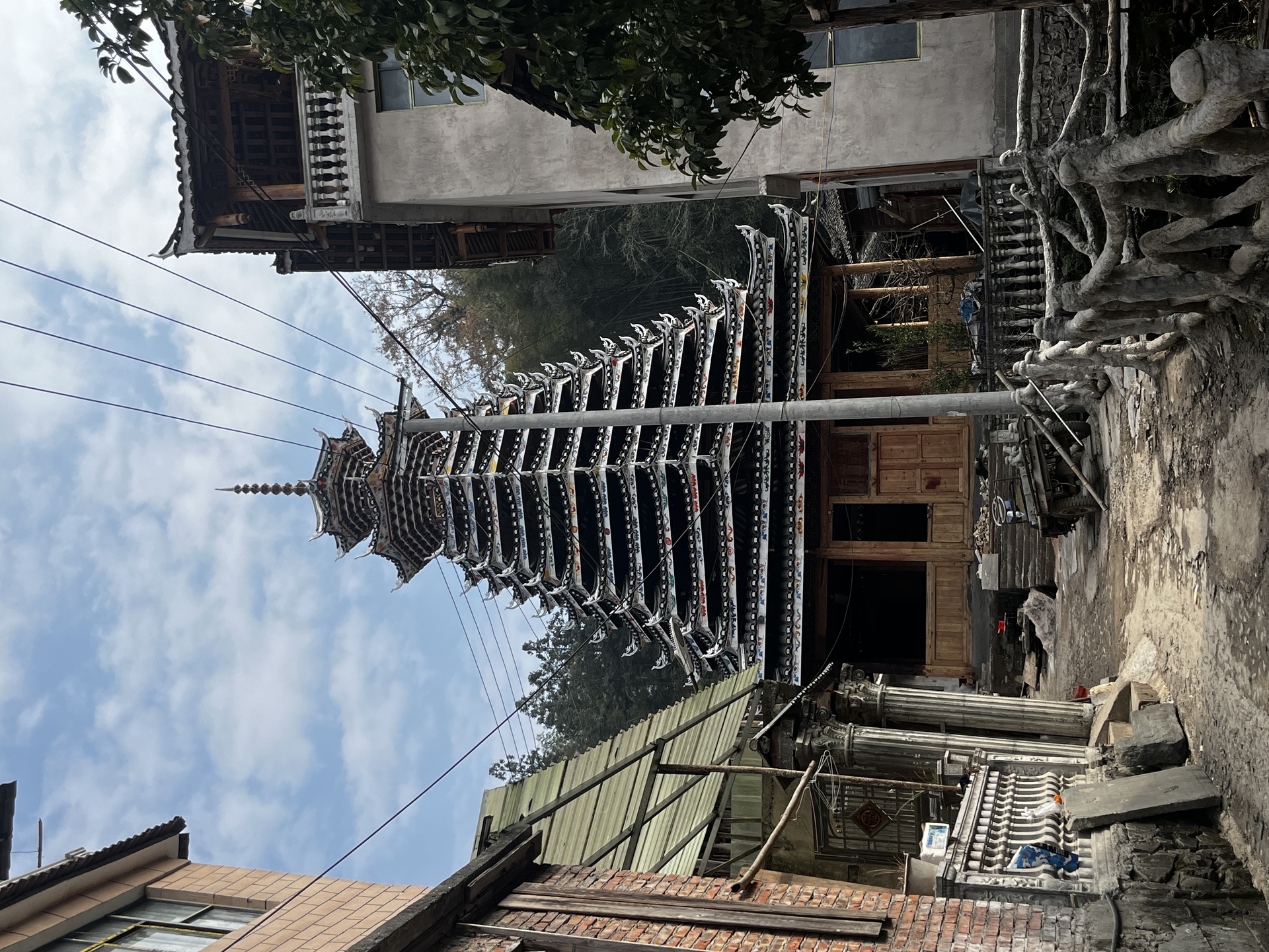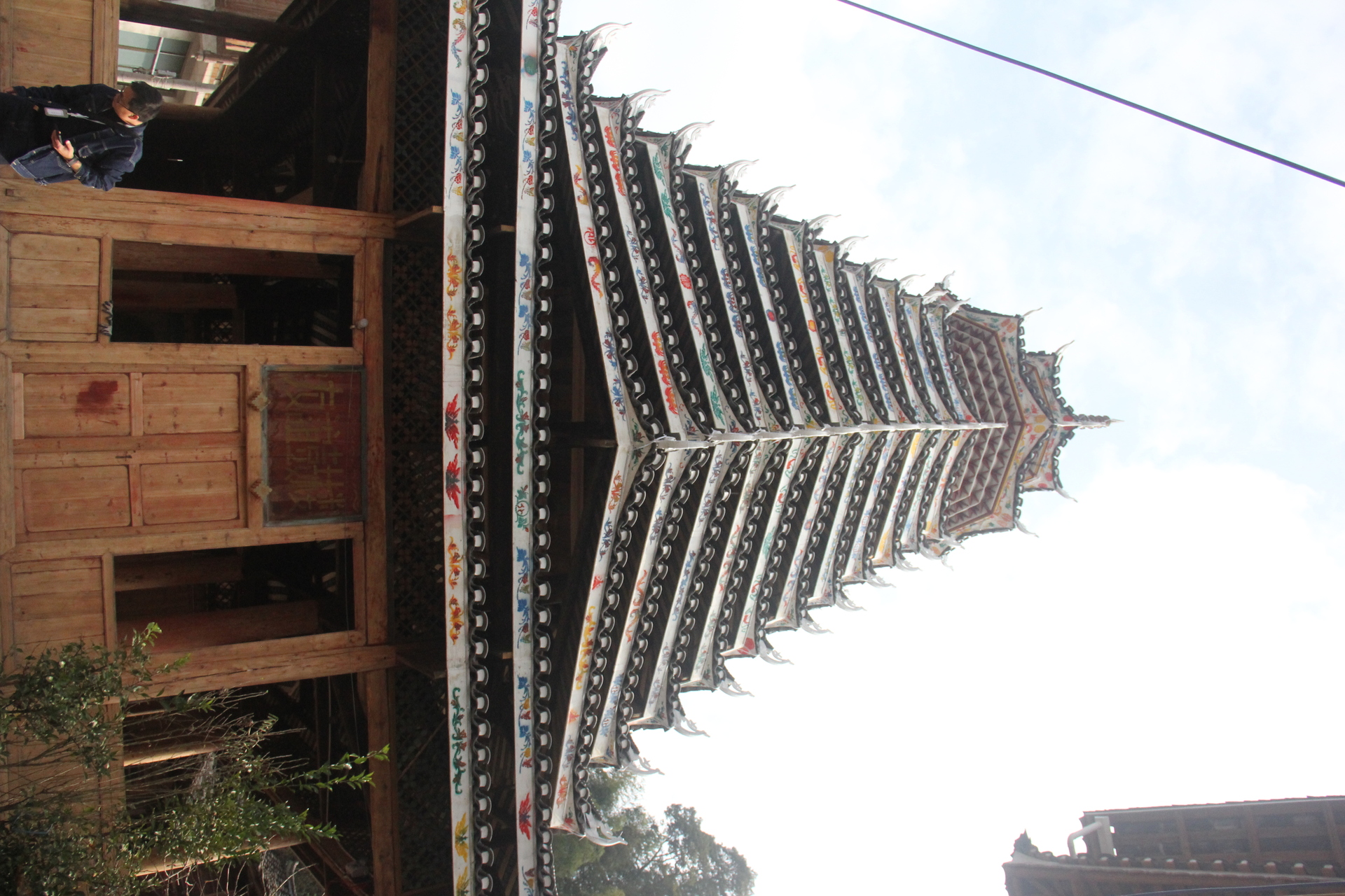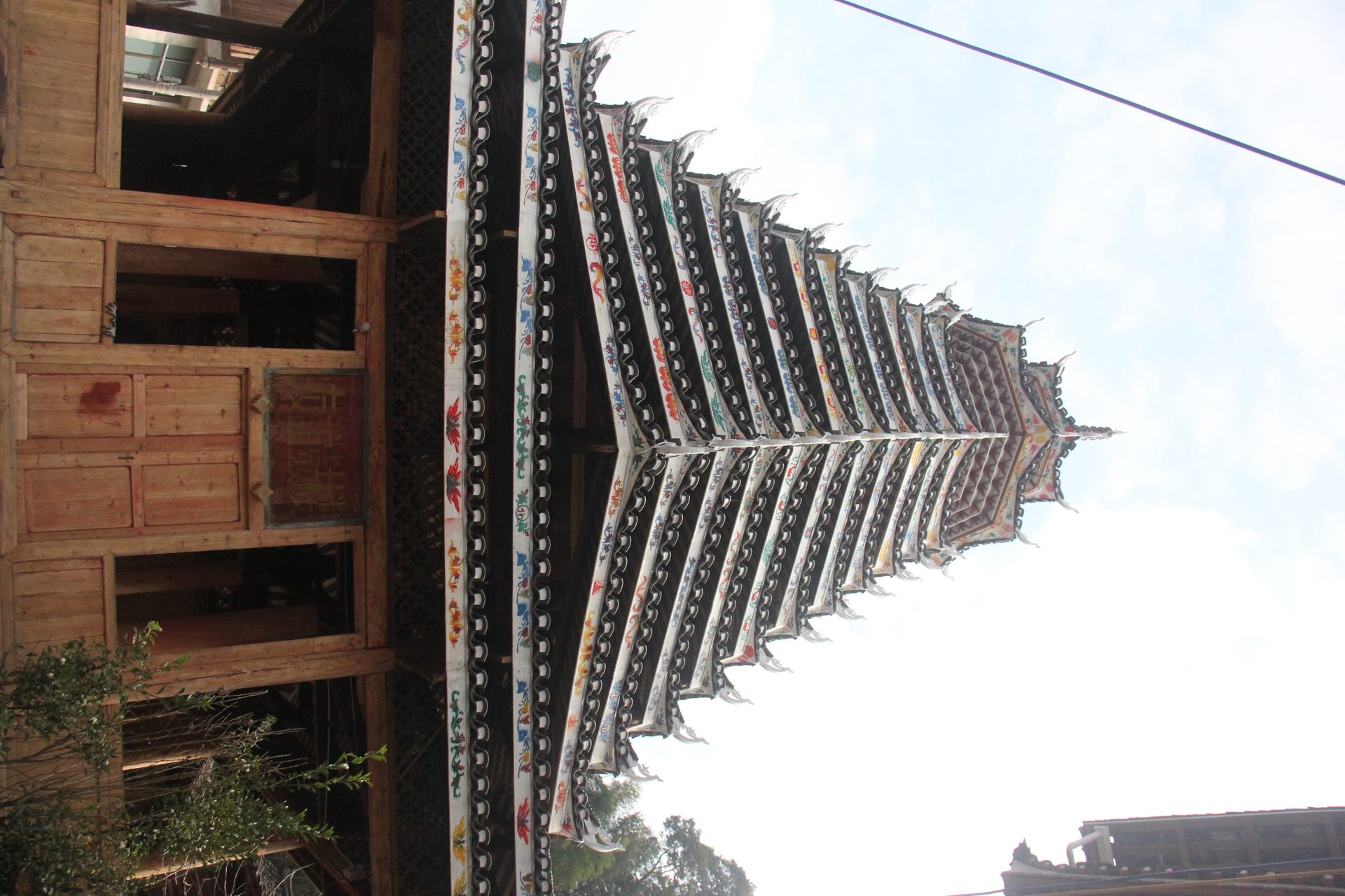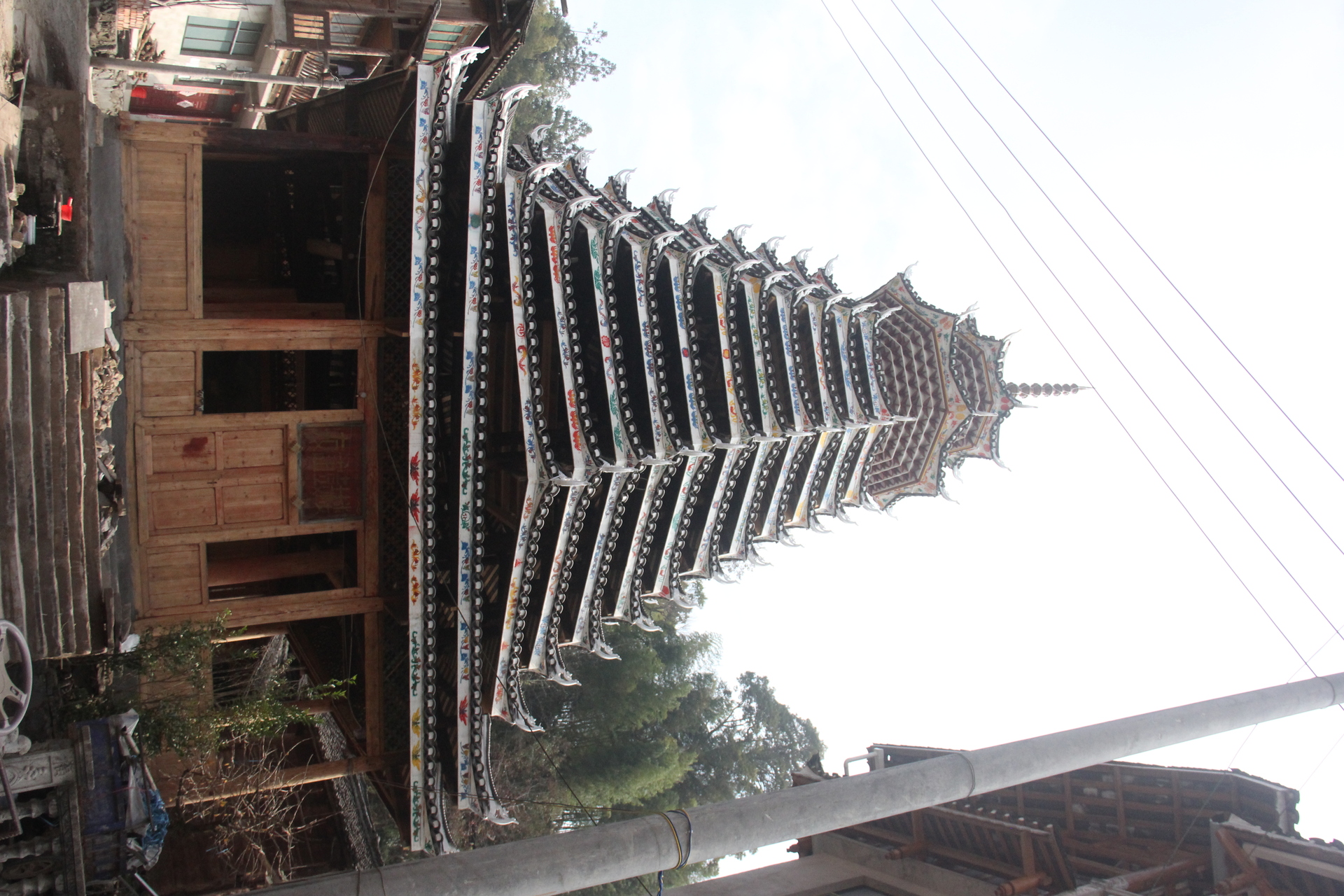 登岑侗寨,友谊鼓楼。1999年 ,2025年修建上漆,(4对12柱)共15层 2层4角 ,11层八角,2层攒尖顶鼓楼