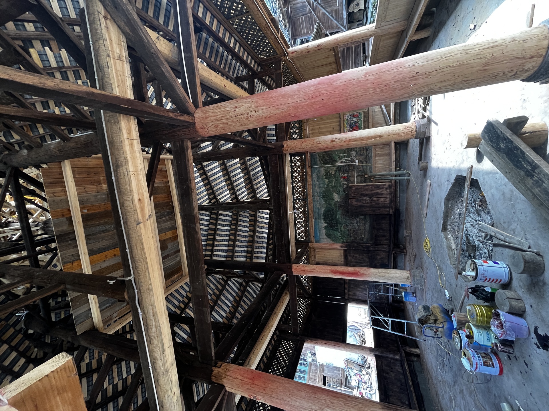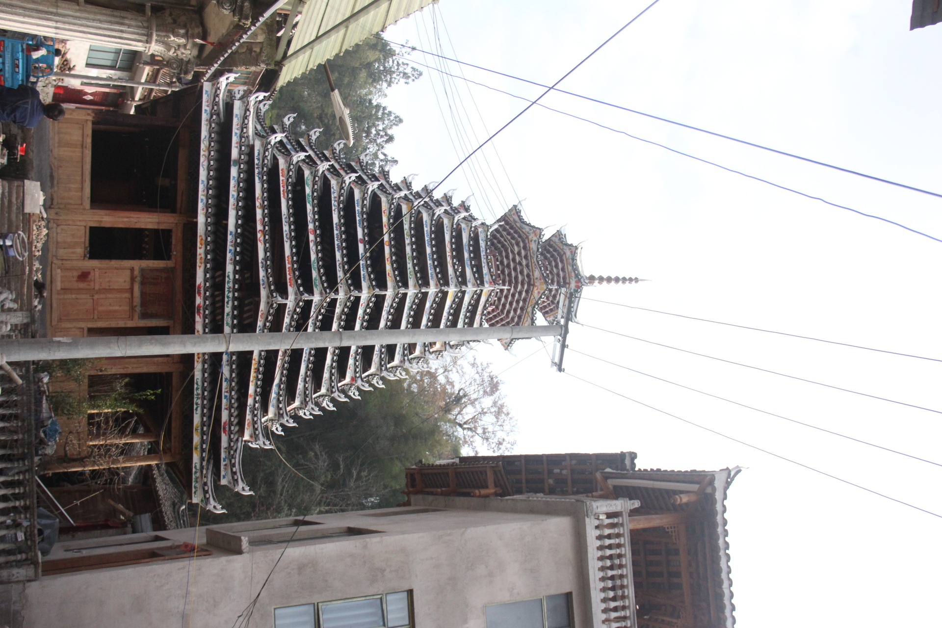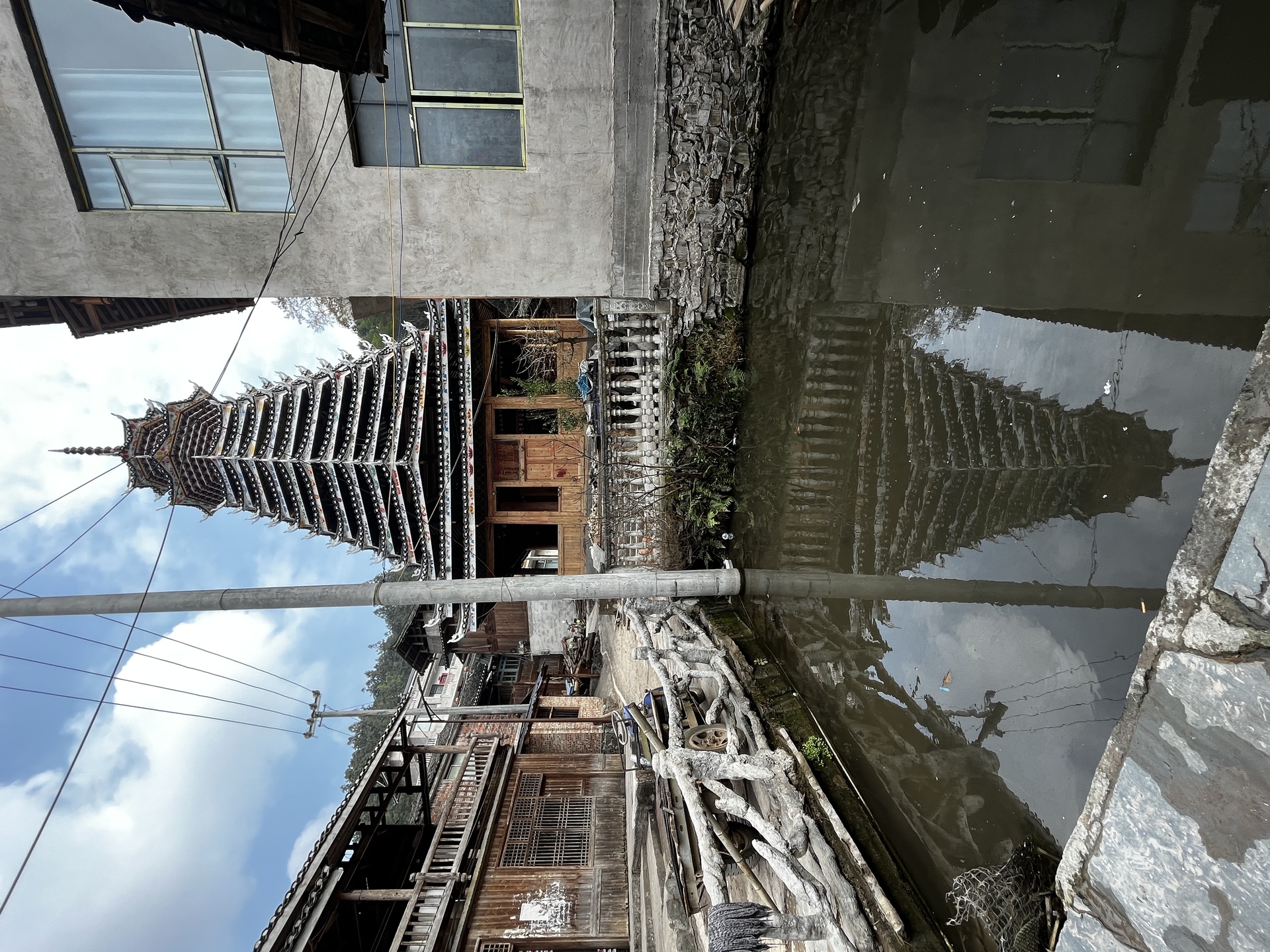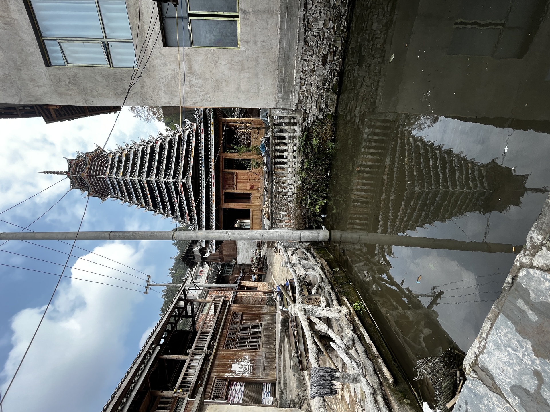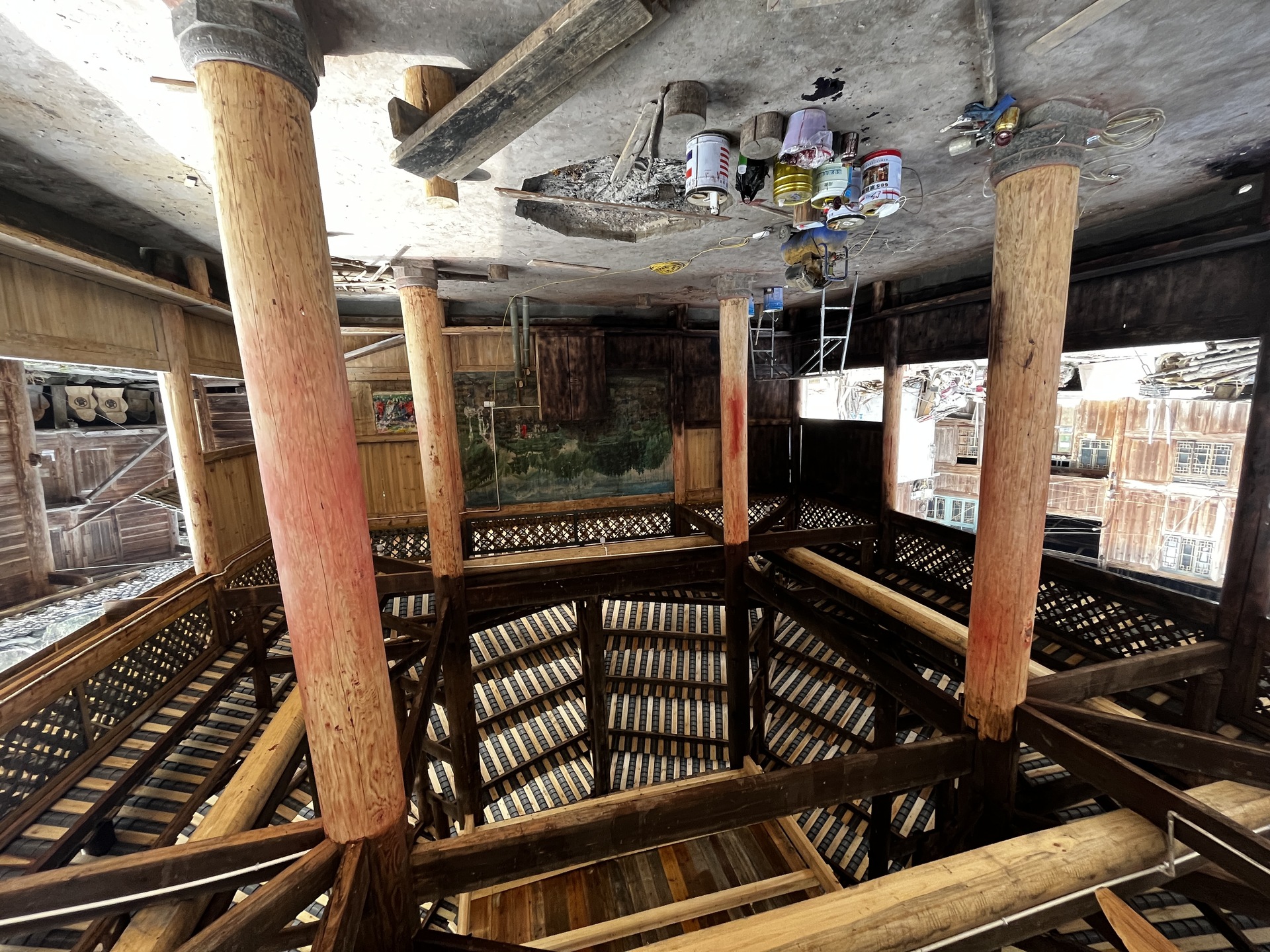 登岑侗寨,友谊鼓楼。1999年 ,2025年修建上漆,(4对12柱)共15层 2层4角 ,11层八角,2层攒尖顶鼓楼
