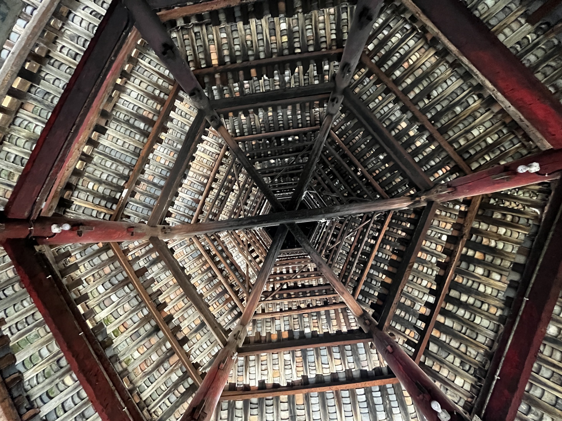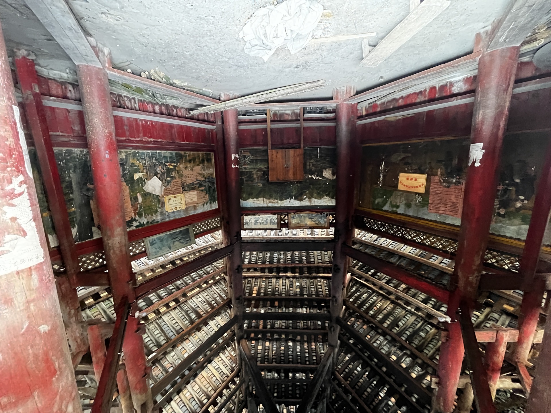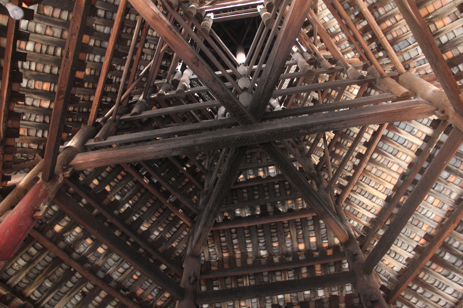 地洞侗寨 母寨鼓楼 ,(6对6柱)共9层 1攒尖顶鼓楼 ,省级文物。始建于清代,高15米,占地/46.08平