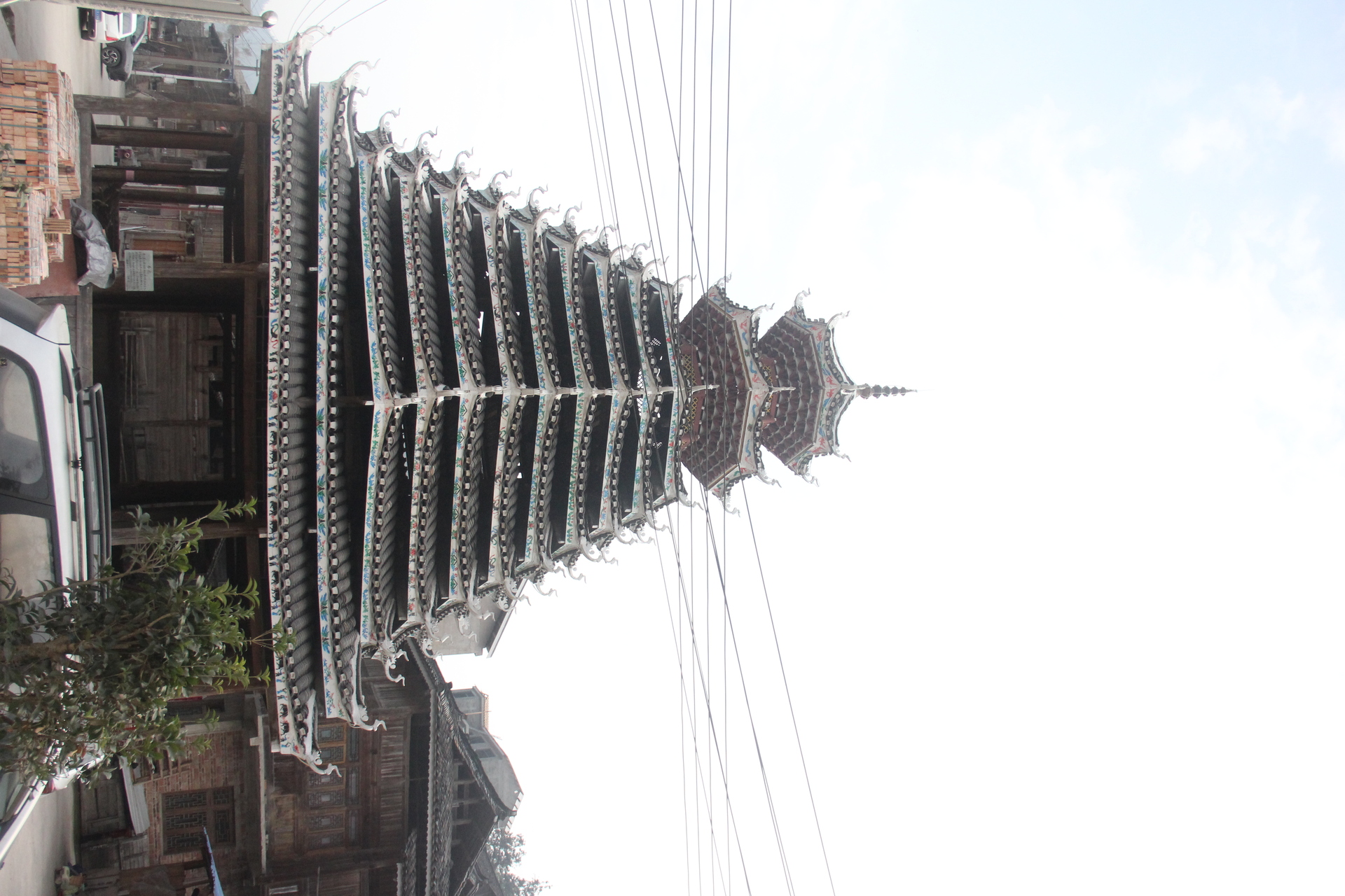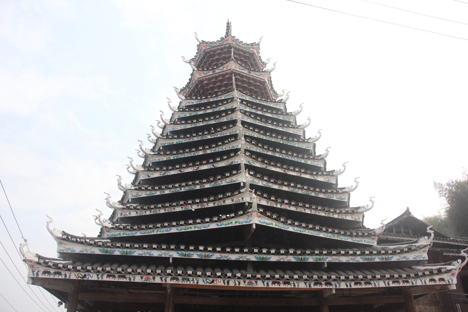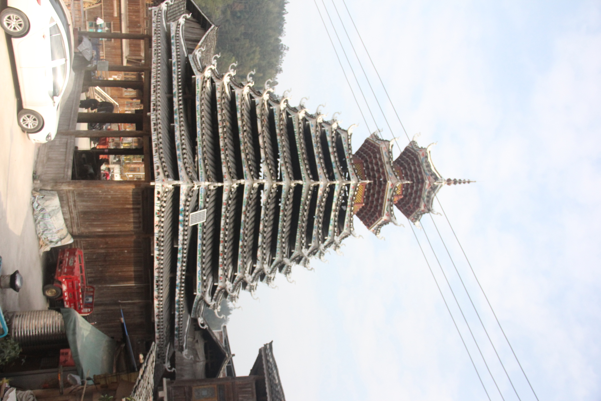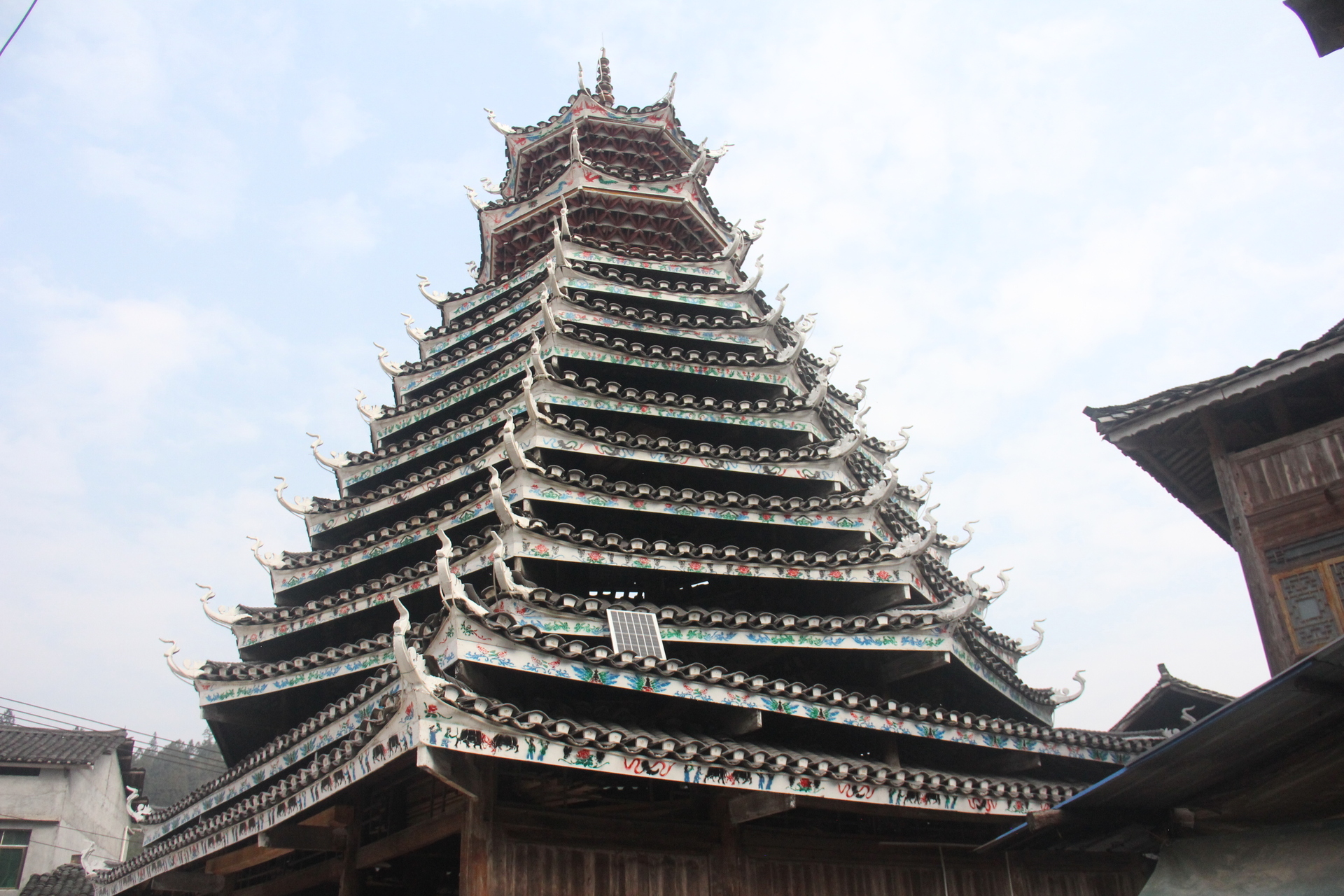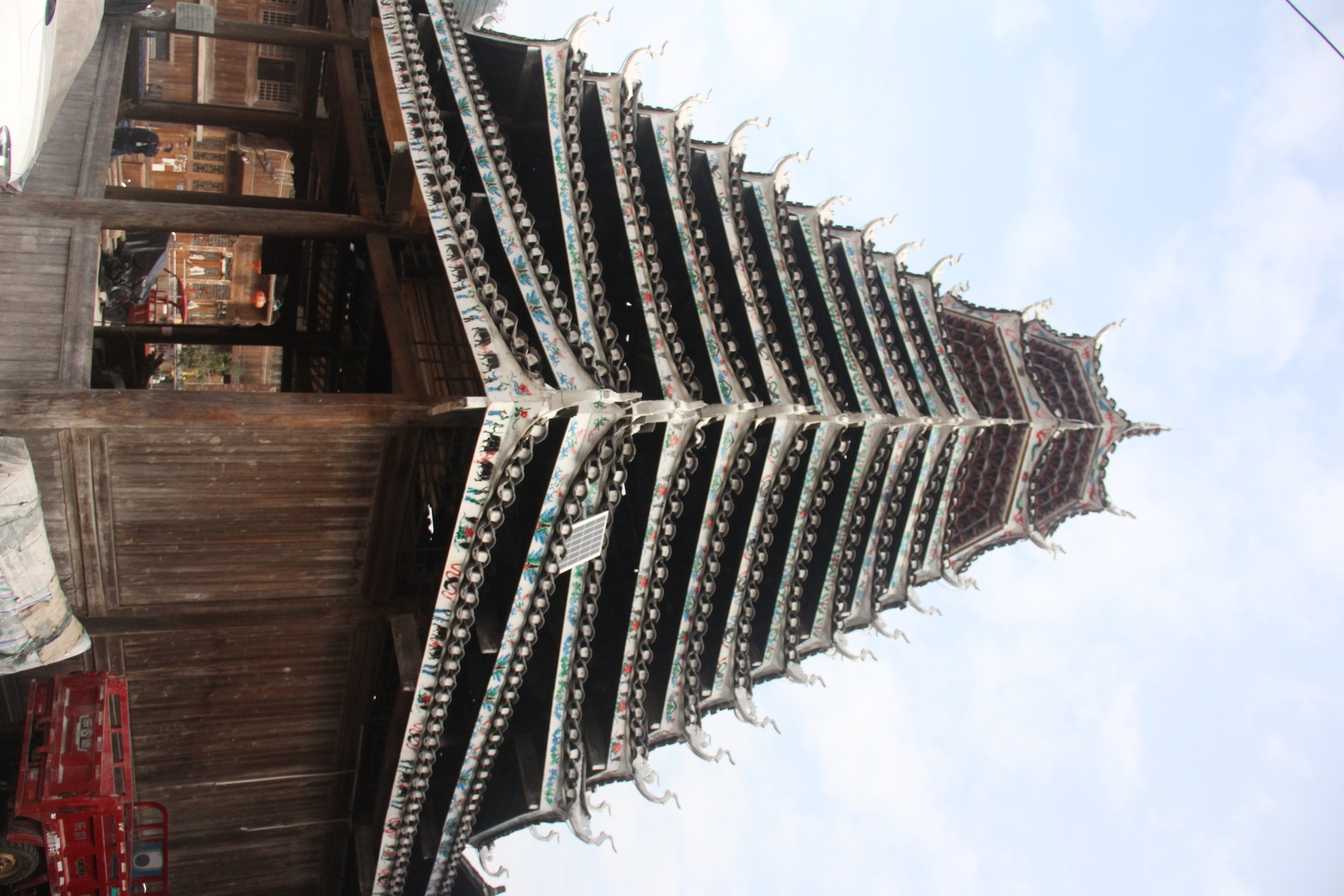 地扪村 千三鼓楼( 4对12柱)共13层,2层4角 9层8角 2层攒尖顶鼓楼) 2007年建