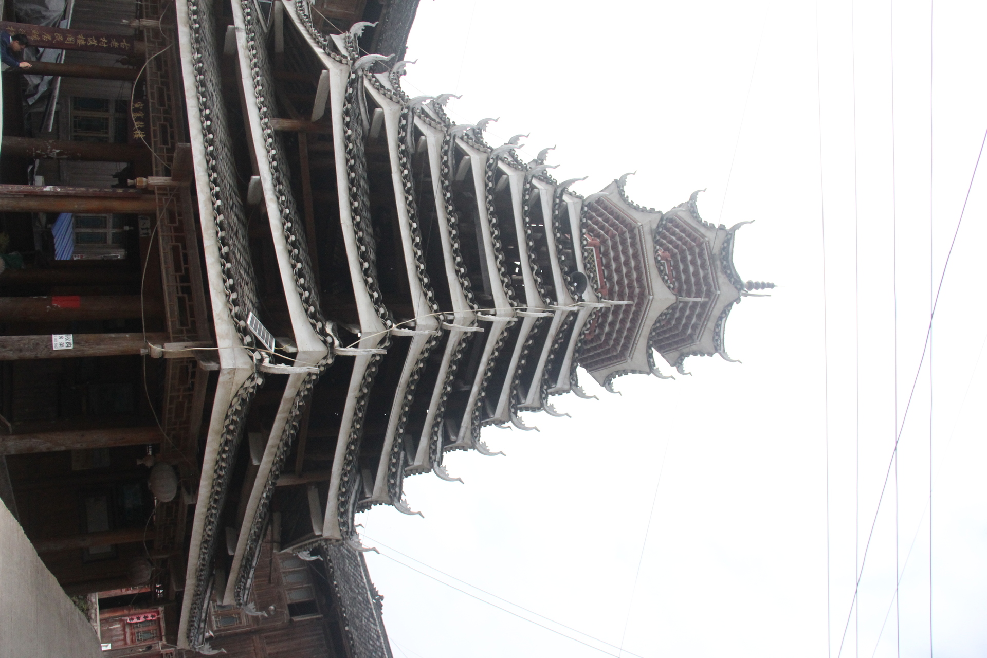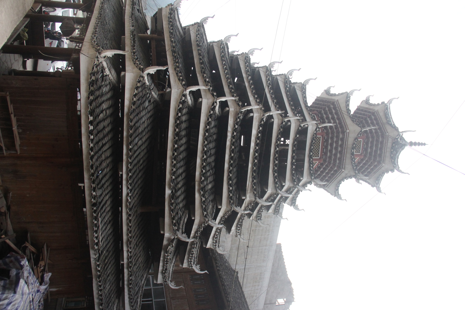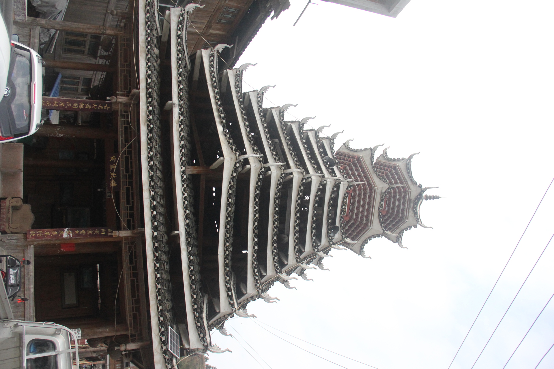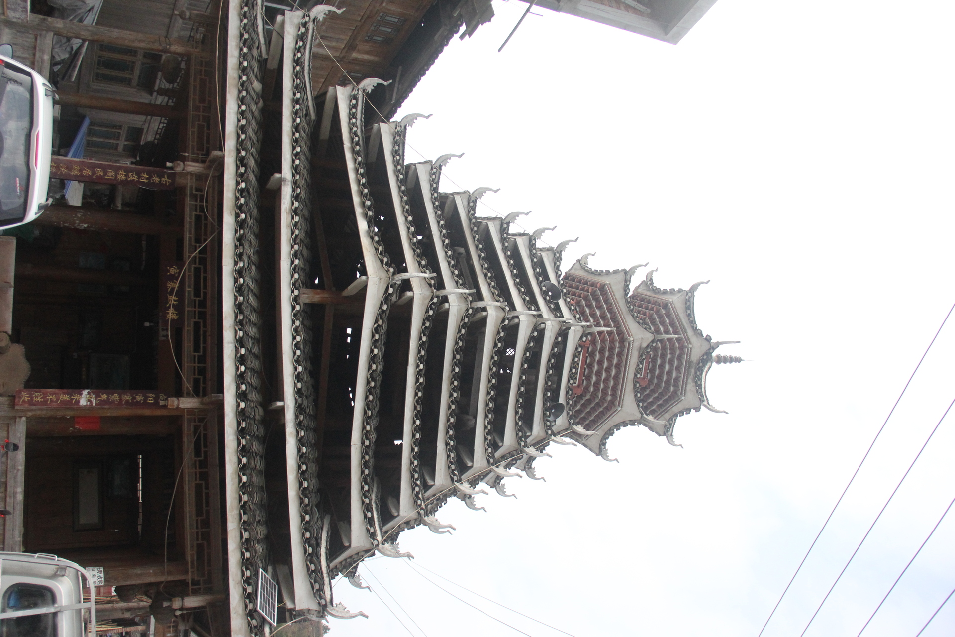 地扪侗寨 寅寨鼓楼(4对8柱)共11层 2层4角 2层攒尖顶鼓楼。2012年