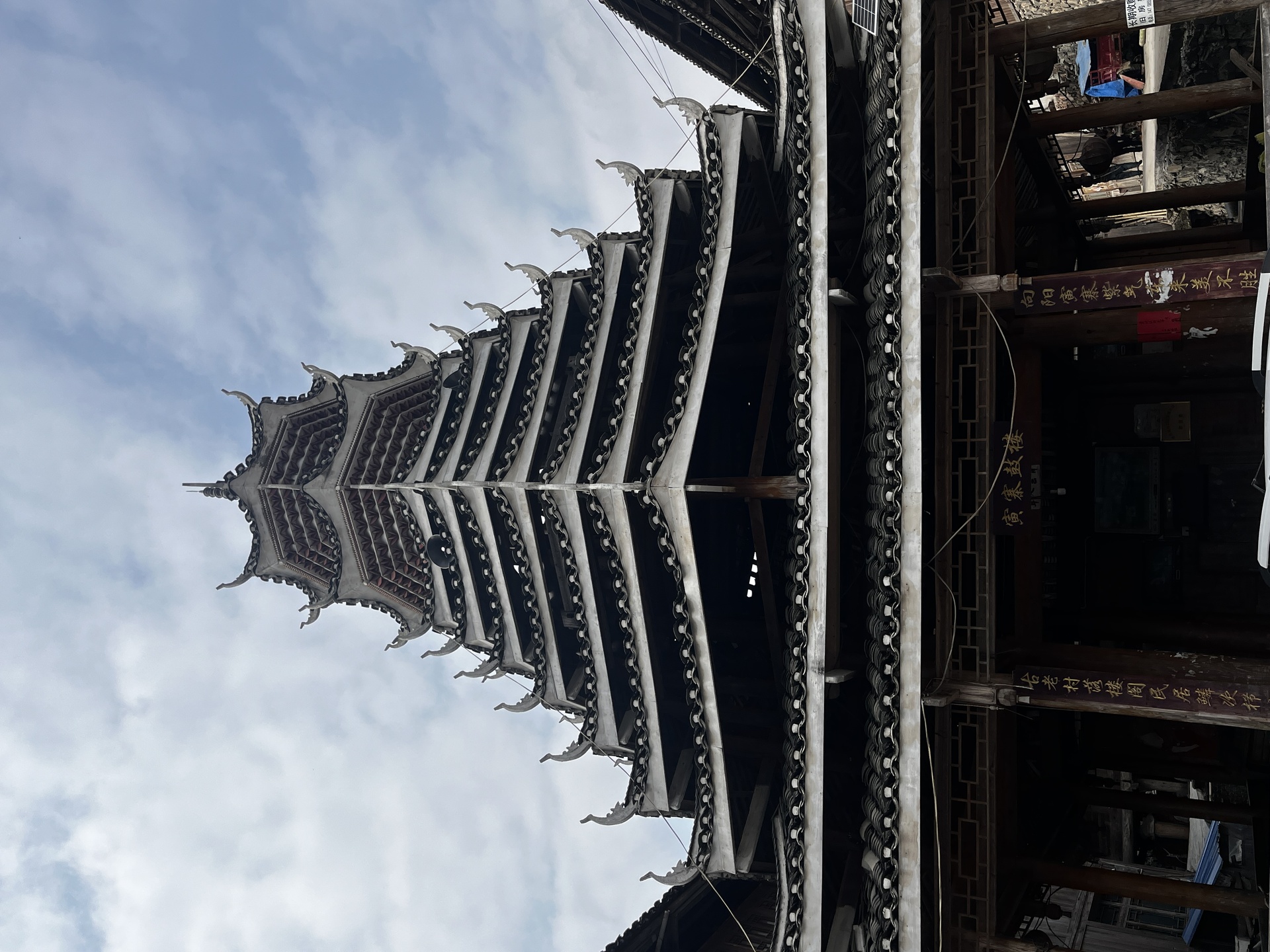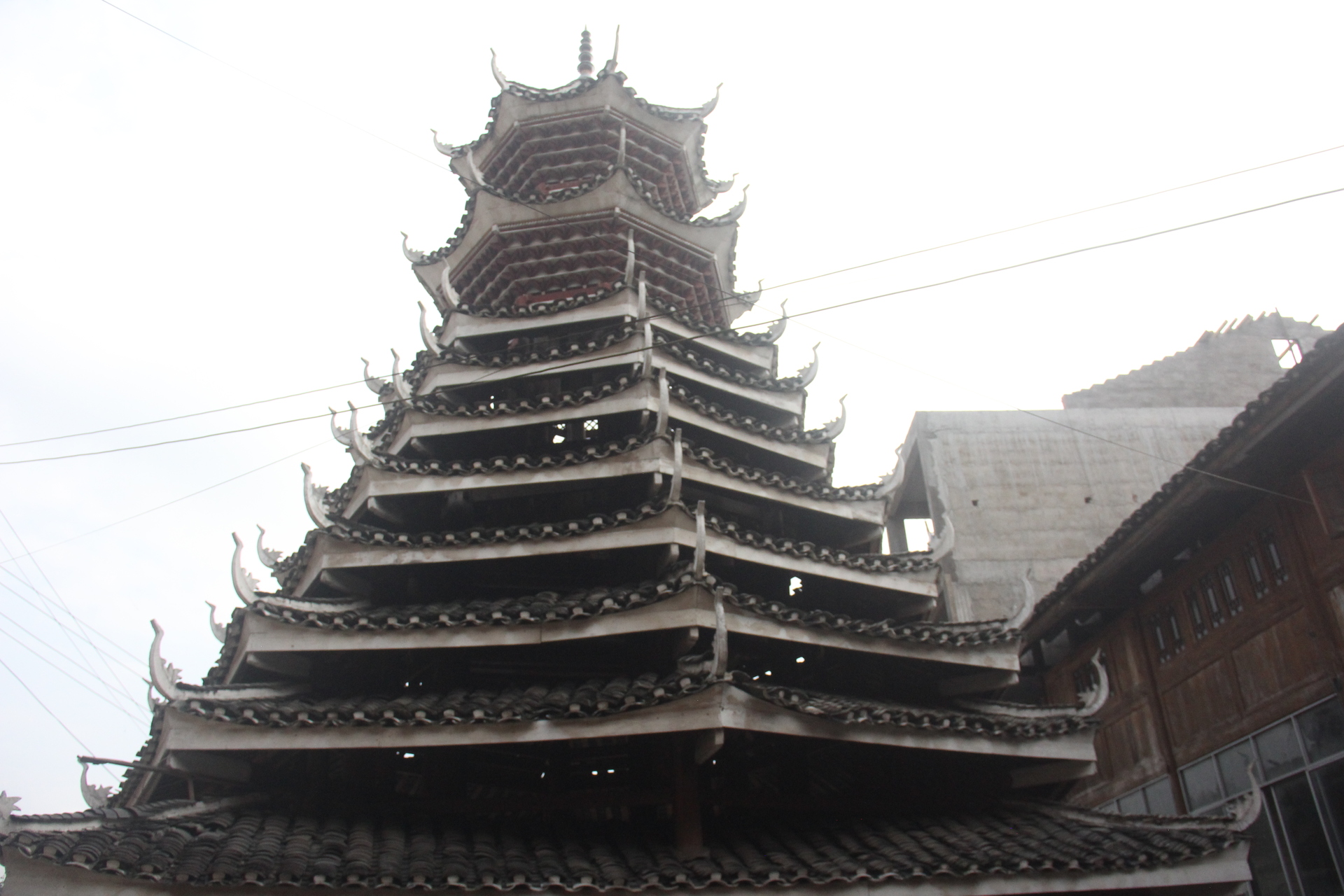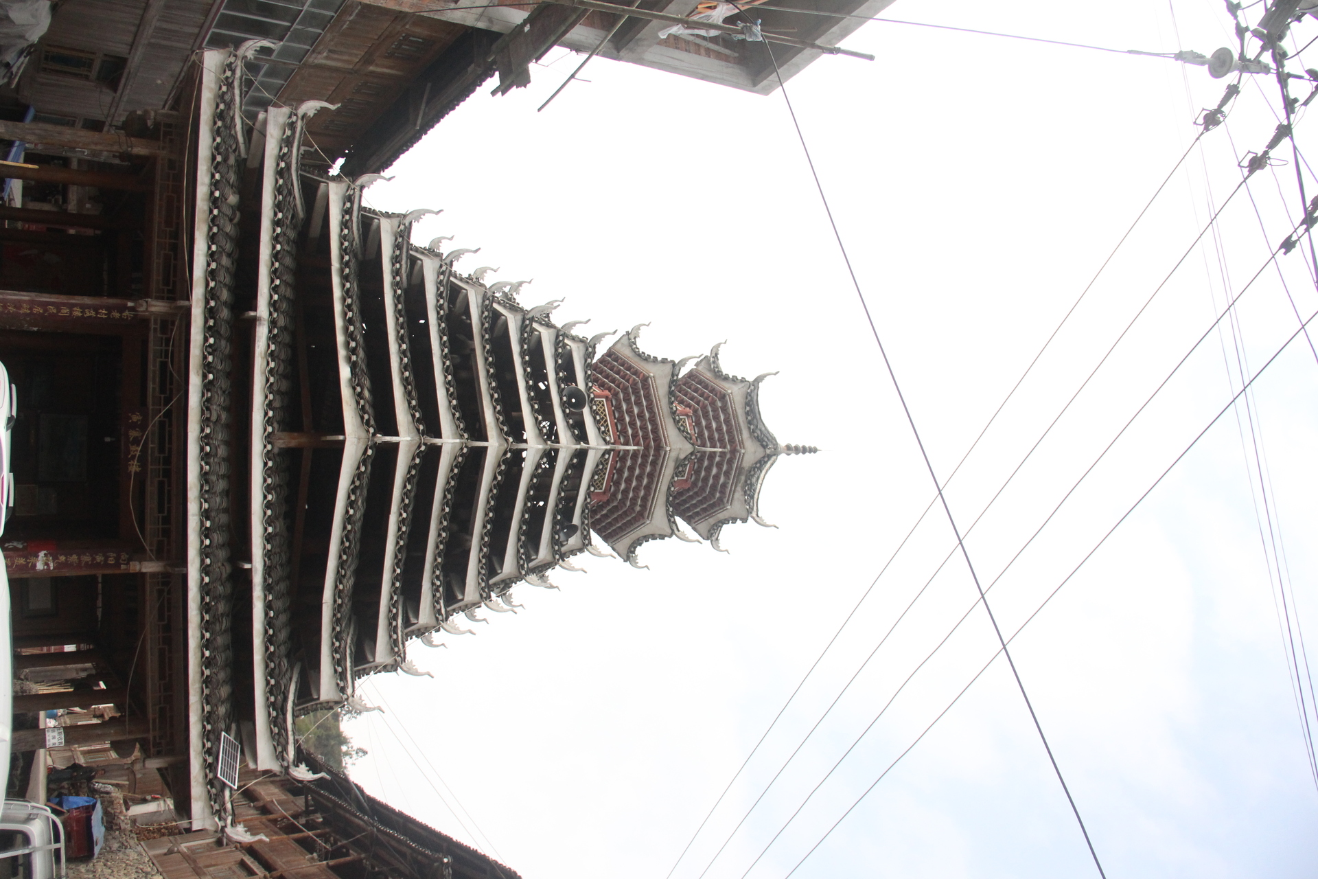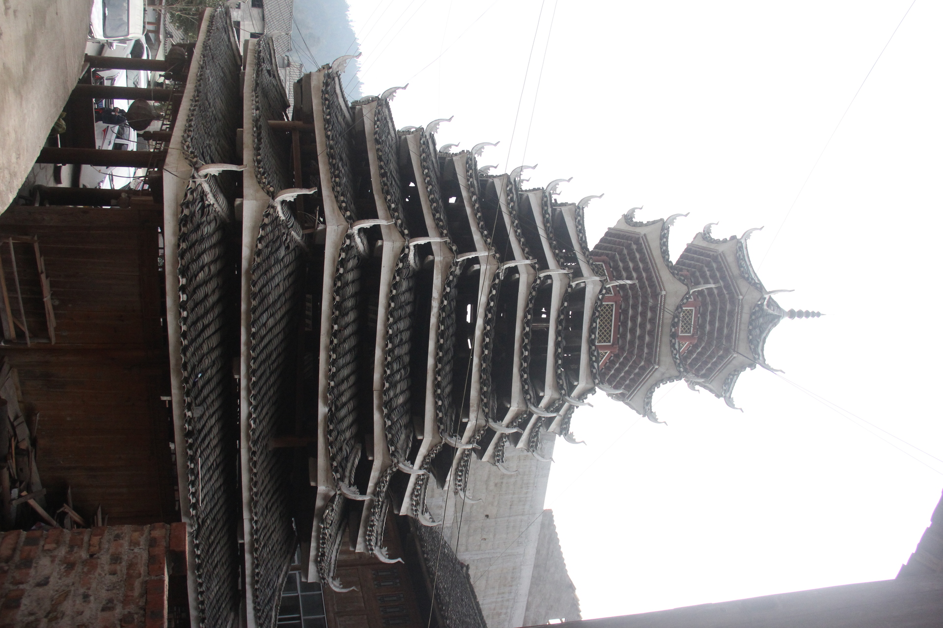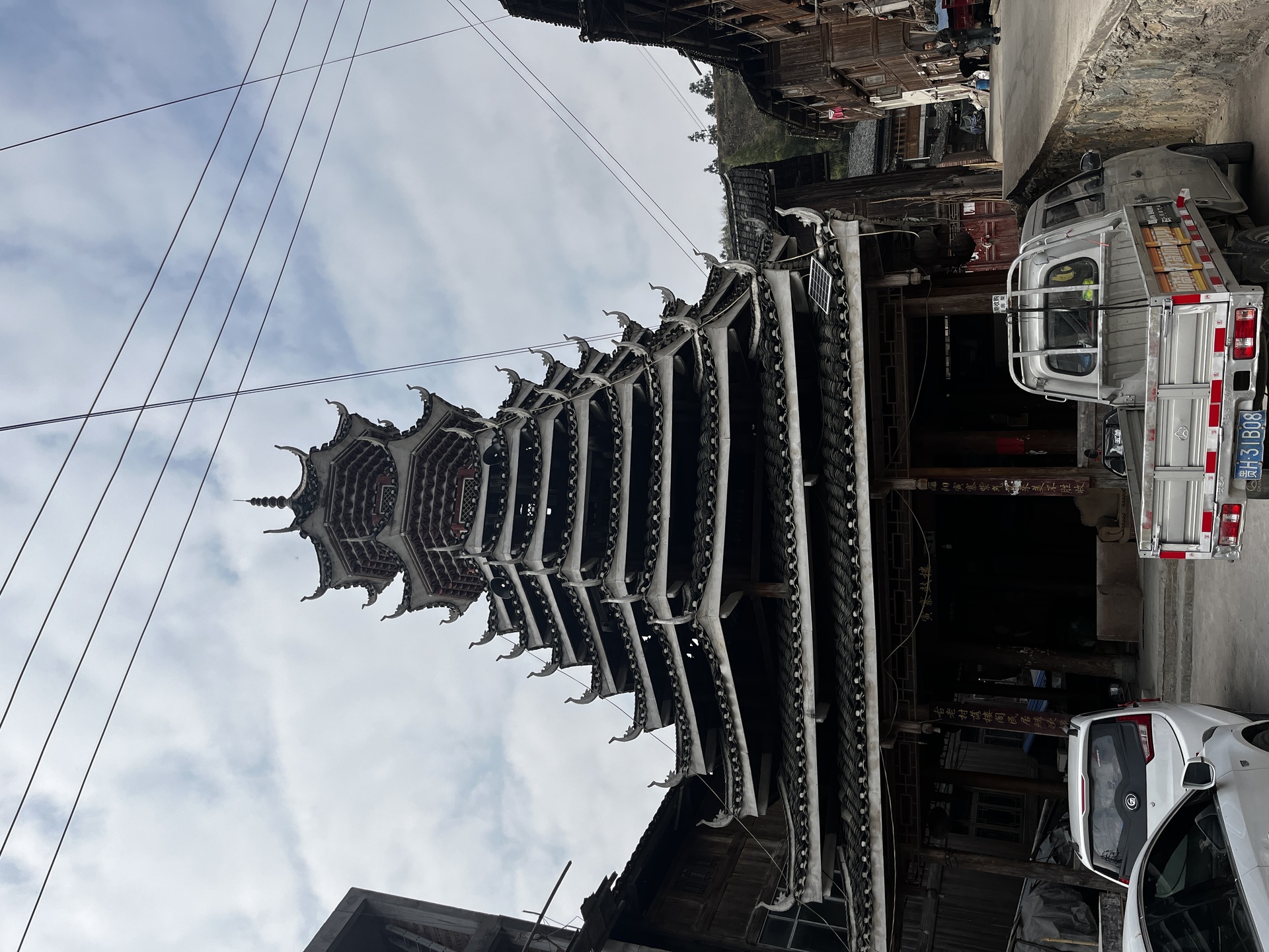 地扪侗寨 寅寨鼓楼(4对8柱)共11层 2层4角 2层攒尖顶鼓楼。2012年