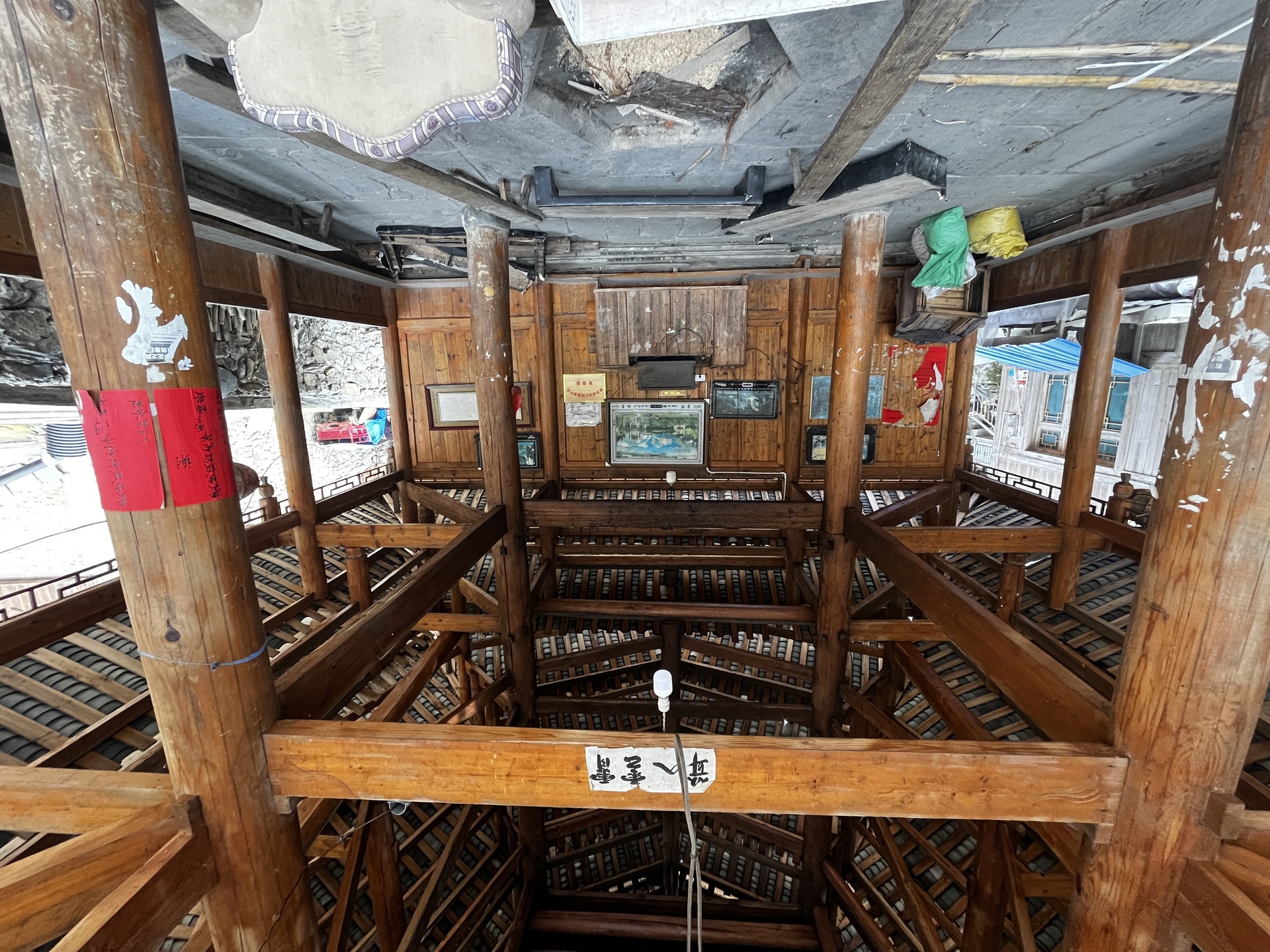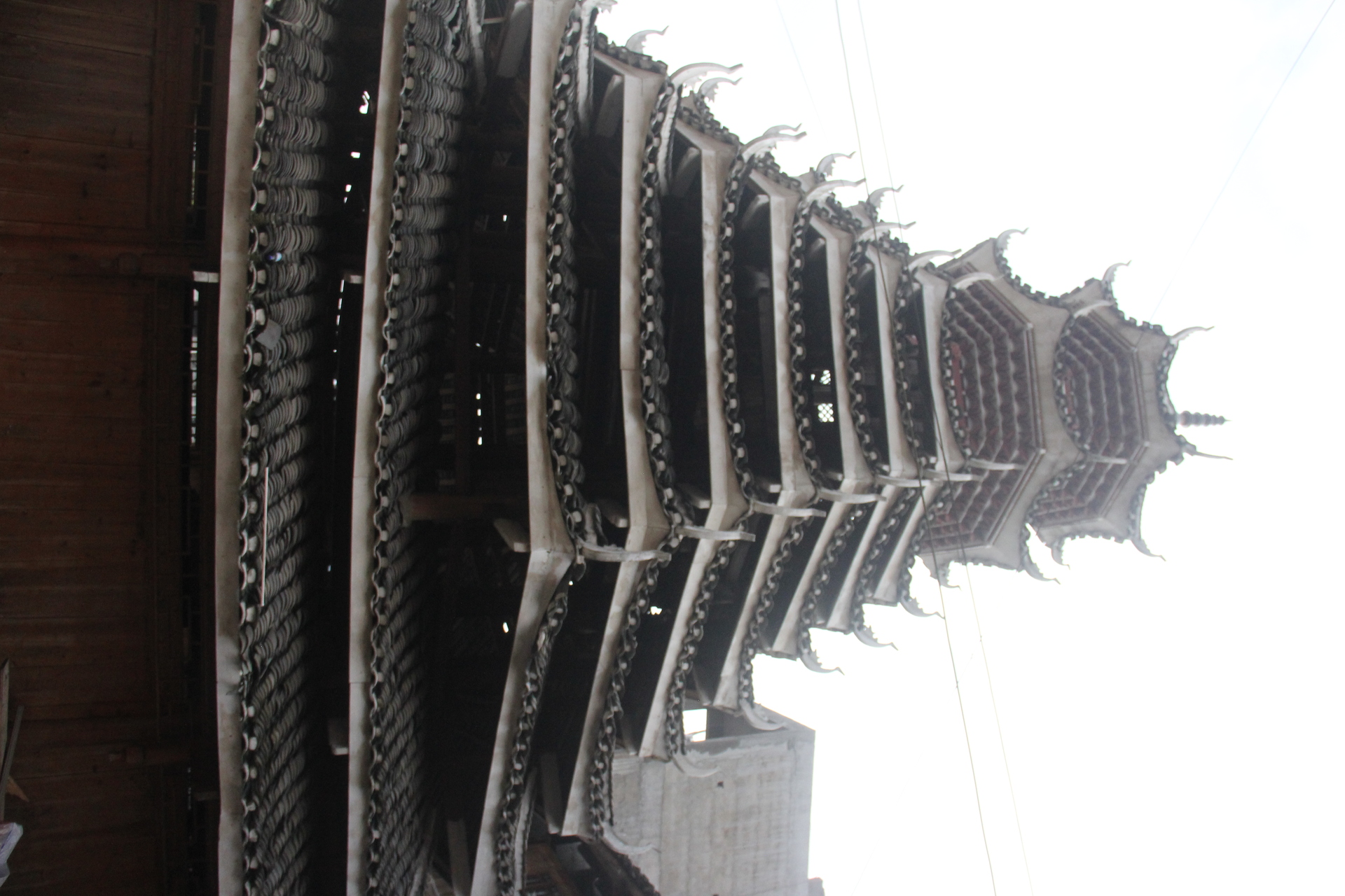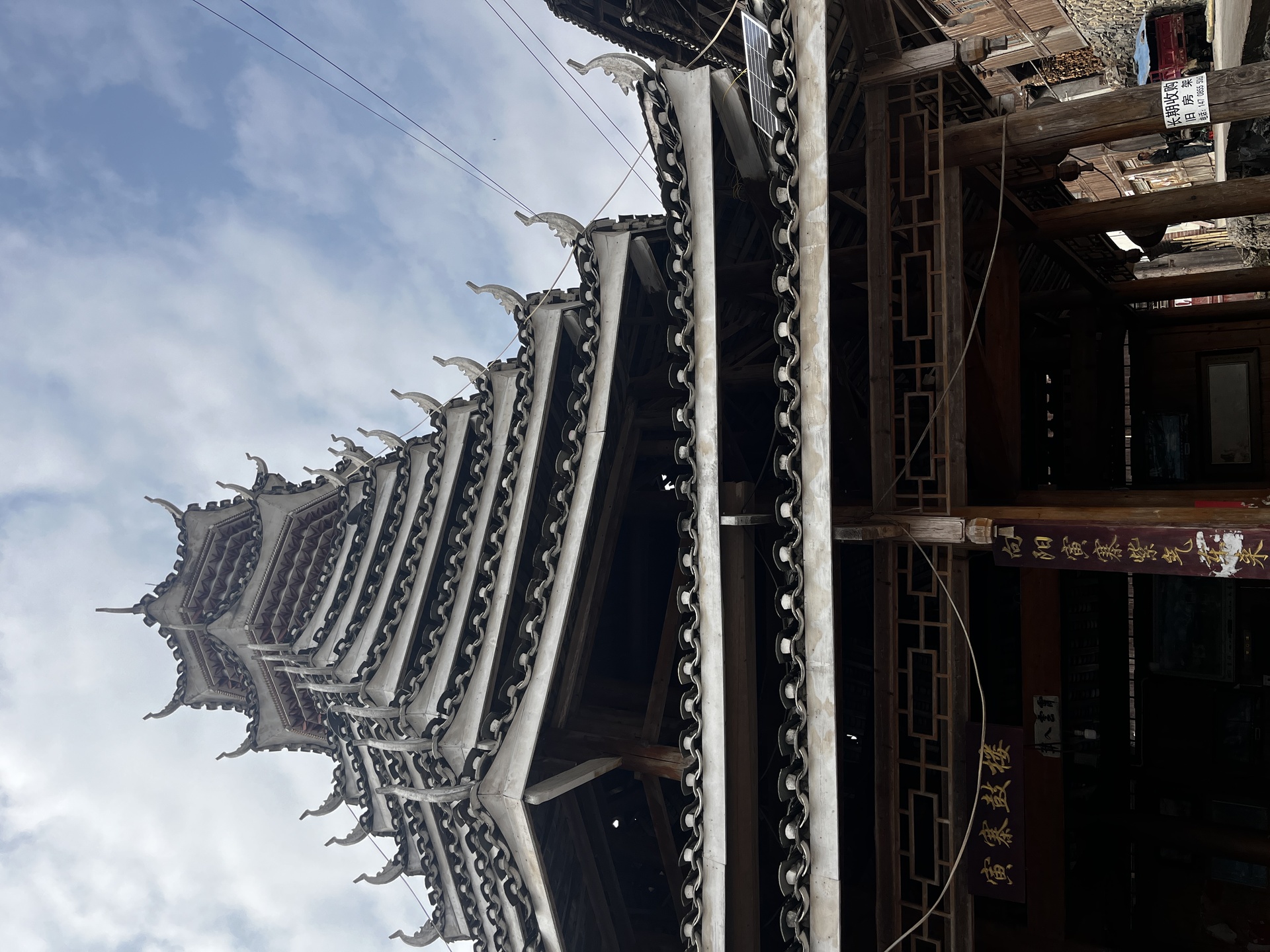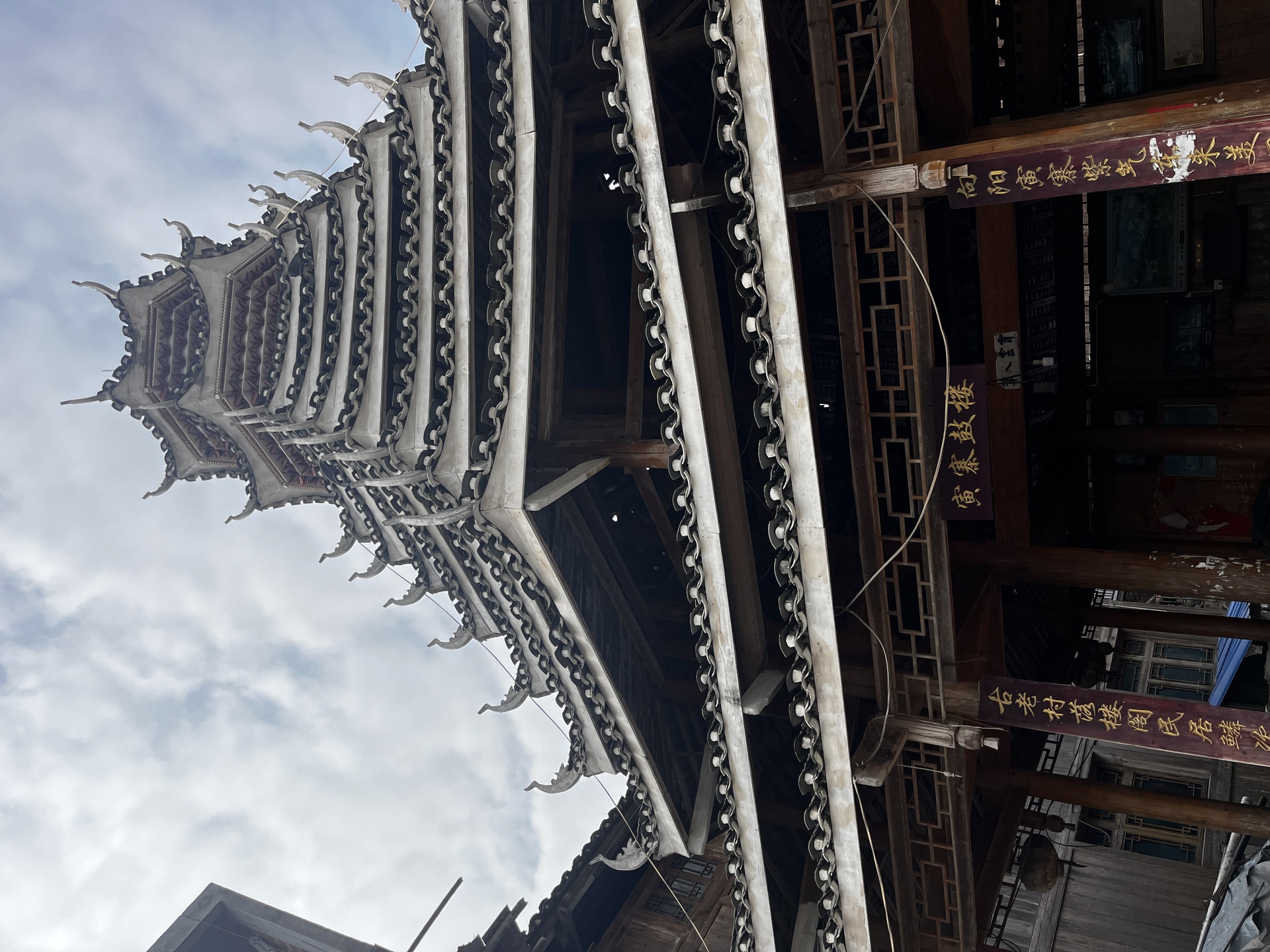 地扪侗寨 寅寨鼓楼(4对8柱)共11层 2层4角 2层攒尖顶鼓楼。2012年
