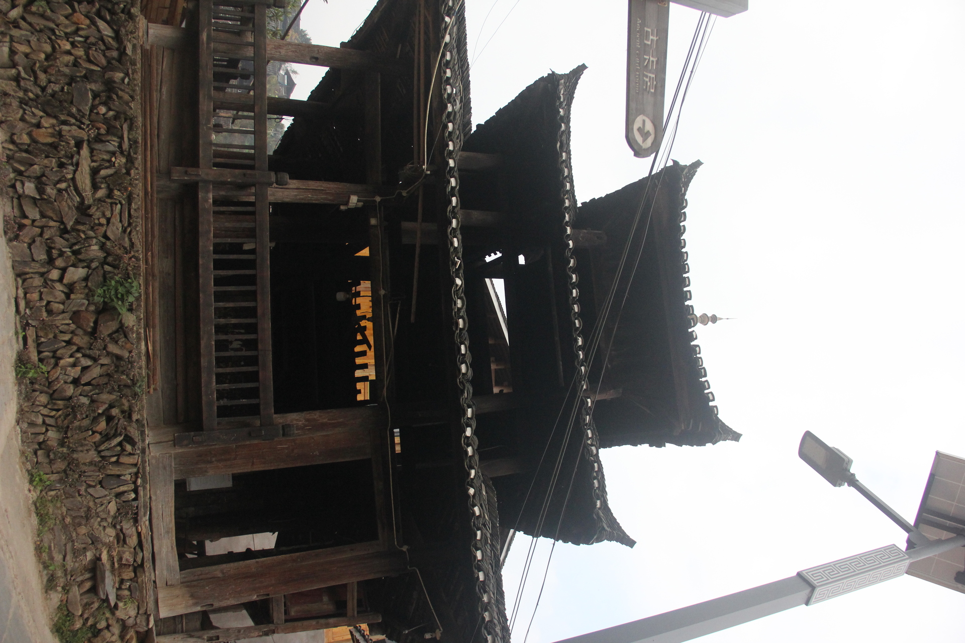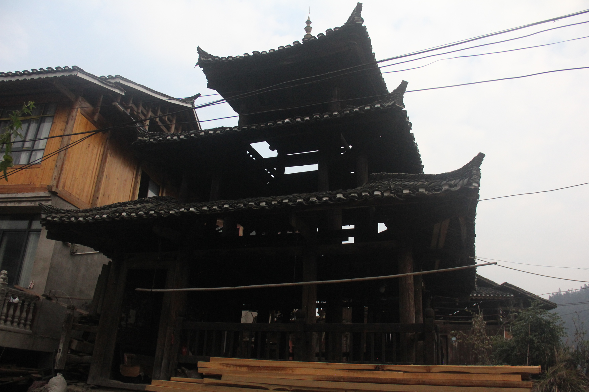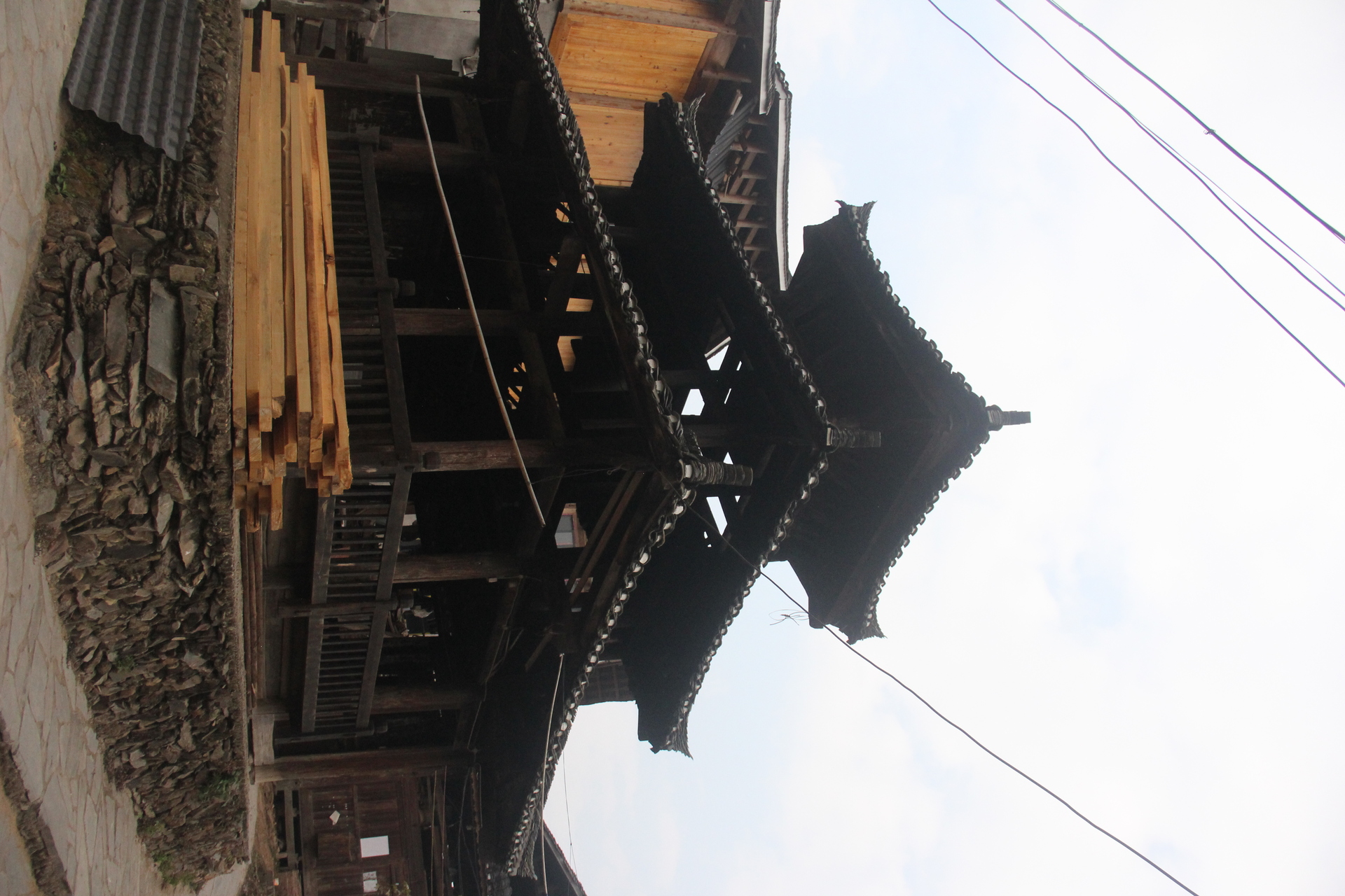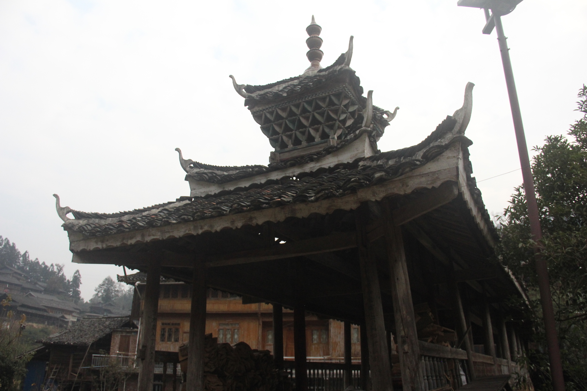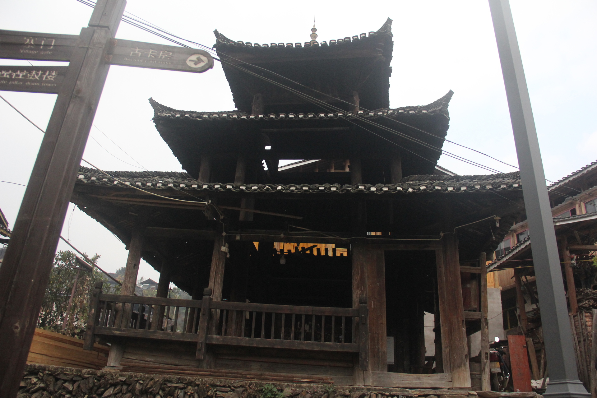 述洞 上寨鼓楼。(4对12柱)共3层 1层攒尖顶鼓楼