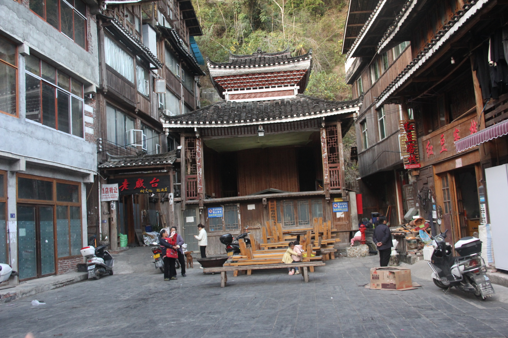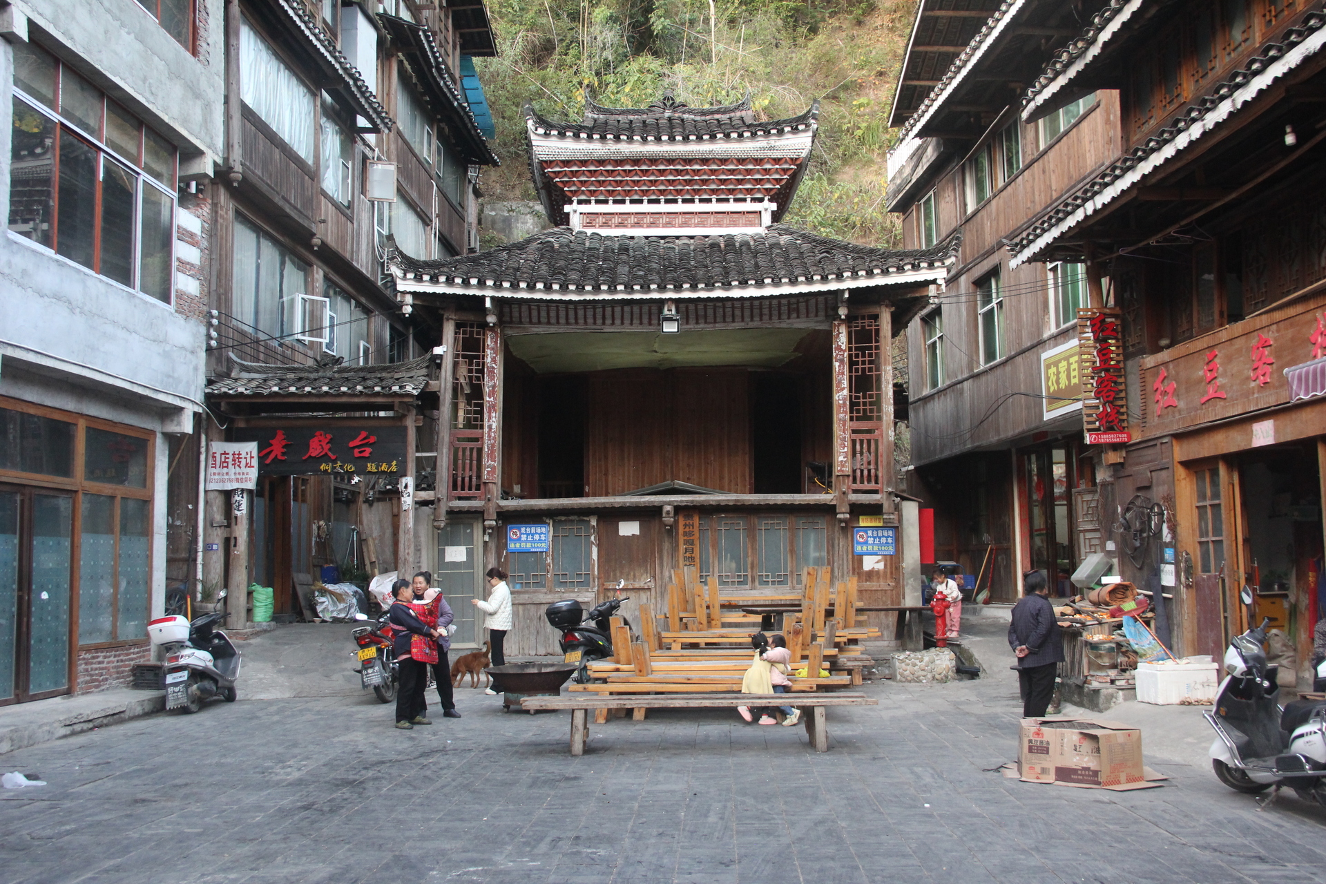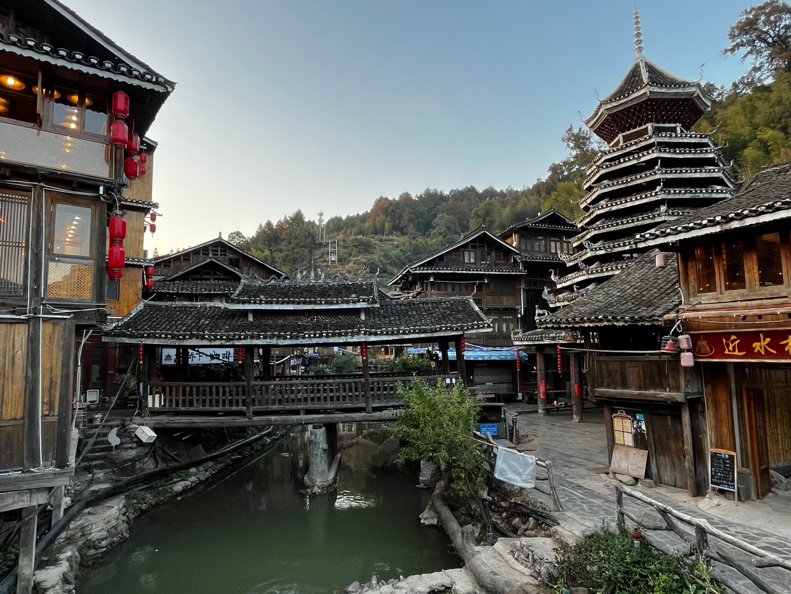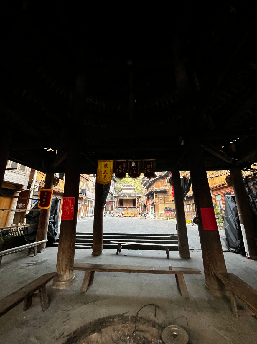 义团鼓楼。该楼为重檐攒头顶宝塔式八角鼓婆,高11层,23.36米,占地144平方米,侗语称为“”楼店格”(Louc Dinl Geev).为满赢袁和龙家族所建。始建予18世纪1982年重建,掌墨师傅为堂安人陆,继贤。
