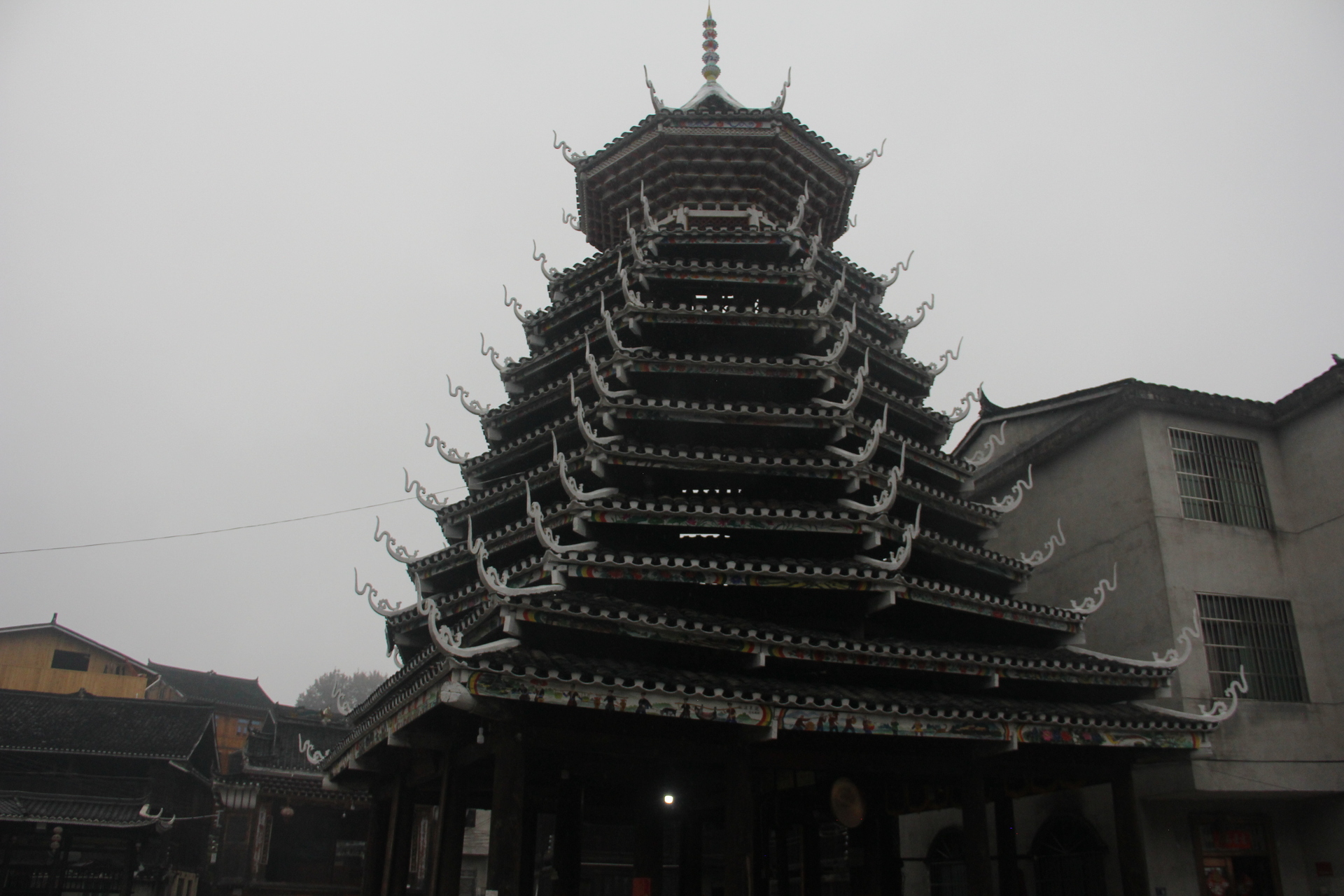 该鼓楼建筑群在1966年曾遭破坏,于1978年由当地侗族民众献工献料修复。1982年2月23日,纪堂鼓楼被列为贵州省第一批省级重点文物保护单位。其建筑技艺,特别是“四角变八角重檐”的“变角鼓楼”技法,在古建筑学界被视为一项技术革命。3以掌墨师陆文礼、陆培福为代表的纪堂建造团队技艺高超,享有“鼓楼师傅在纪堂”的赞誉,曾参与北京中华民族园、上海中华民族大观园及深圳锦绣中华等民族文化工程的鼓楼建造。