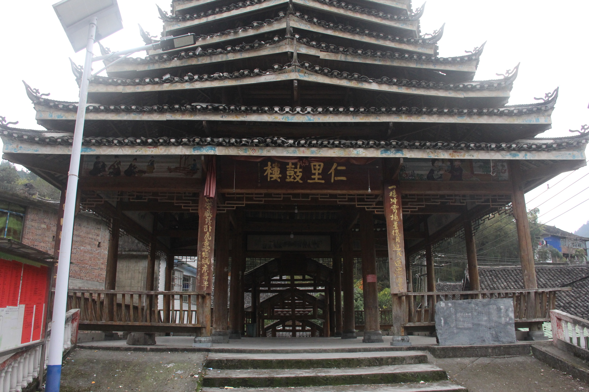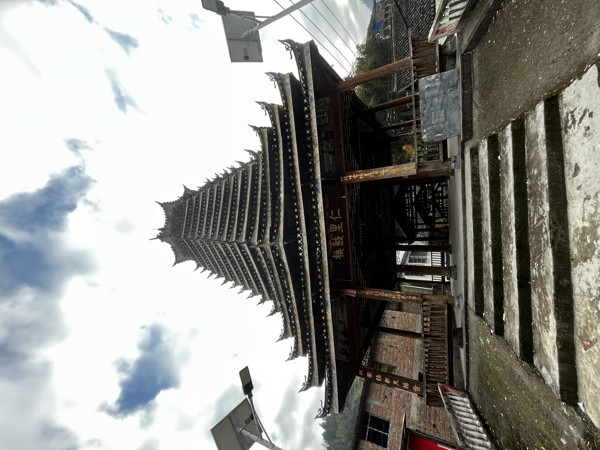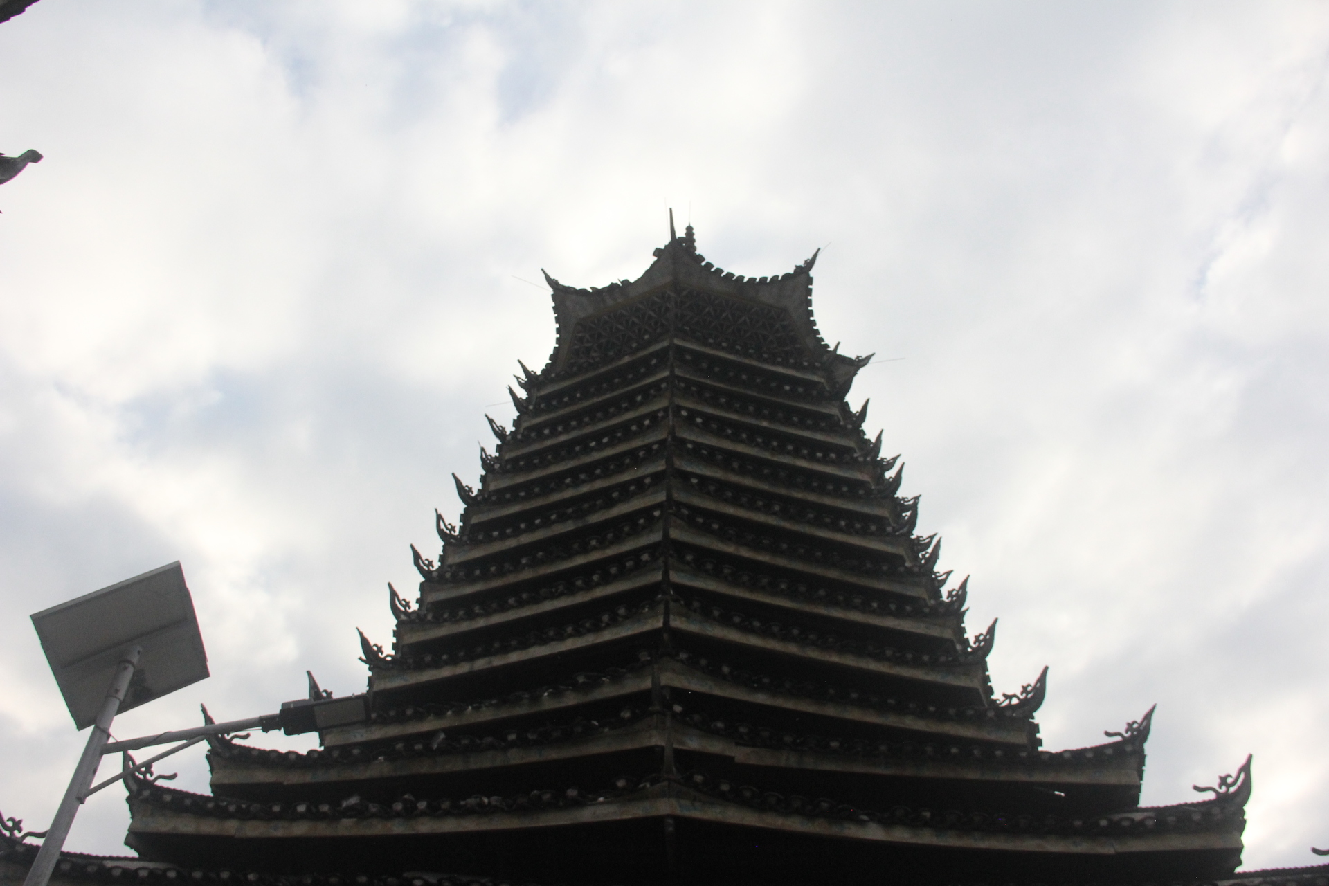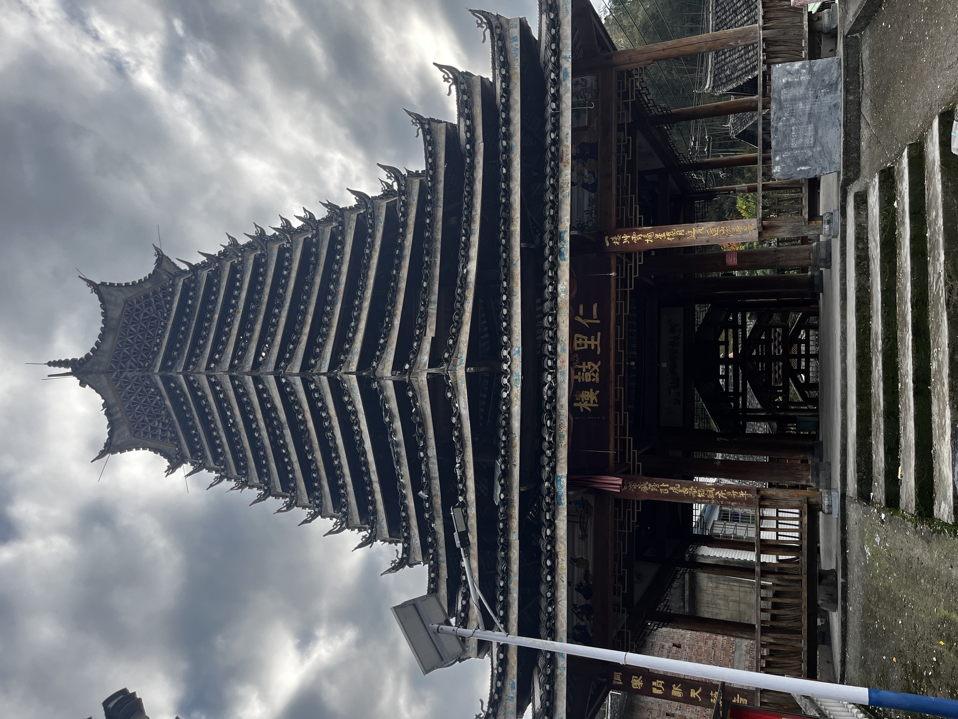 仁里侗寨\仁里鼓楼 (4对8柱)15层,(2层四角,12层8角 1攒尖顶)鼓楼,占地100平,高28米,2010年建,(72寨最大最高的鼓楼)