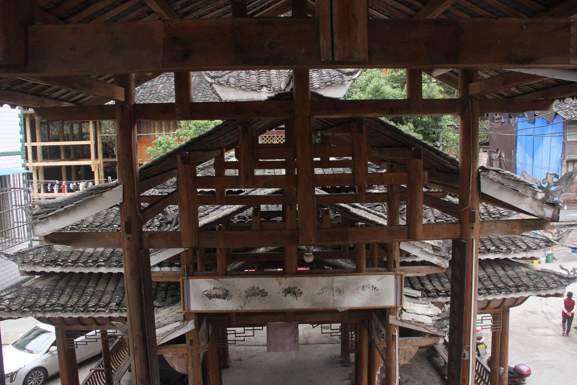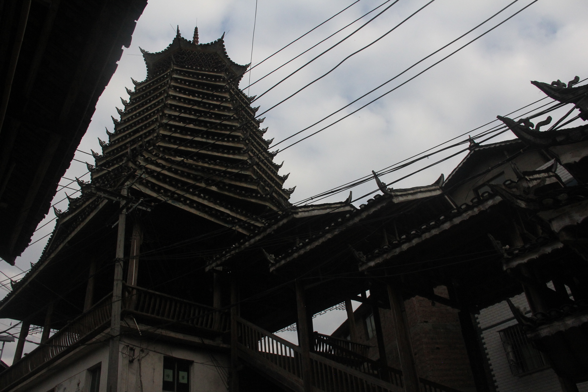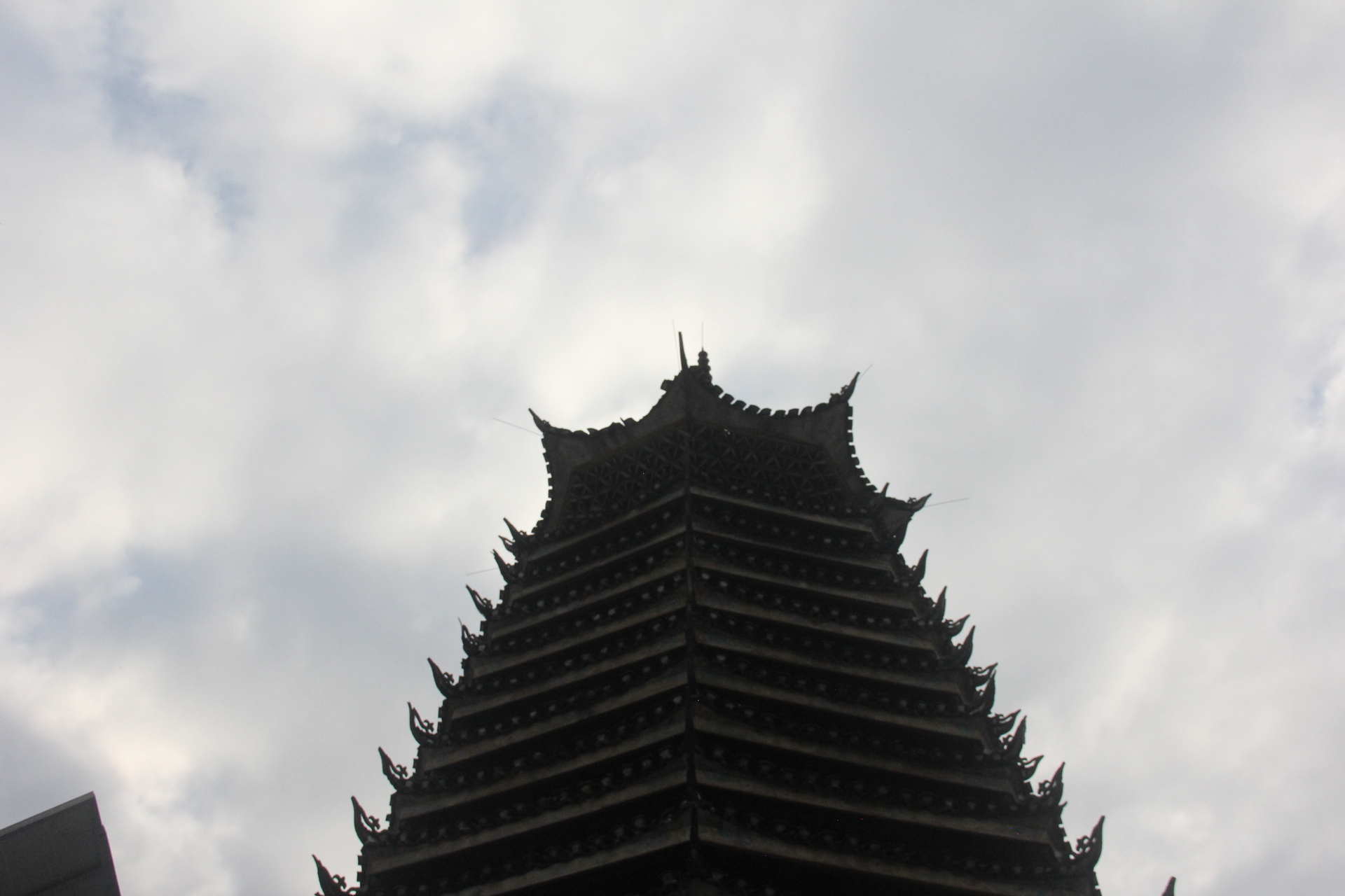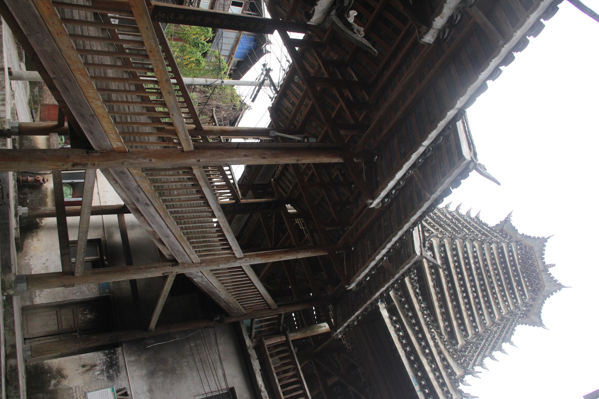仁里侗寨\仁里鼓楼 (4对8柱)15层,(2层四角,12层8角 1攒尖顶)鼓楼,占地100平,高28米,2010年建,(72寨最大最高的鼓楼)