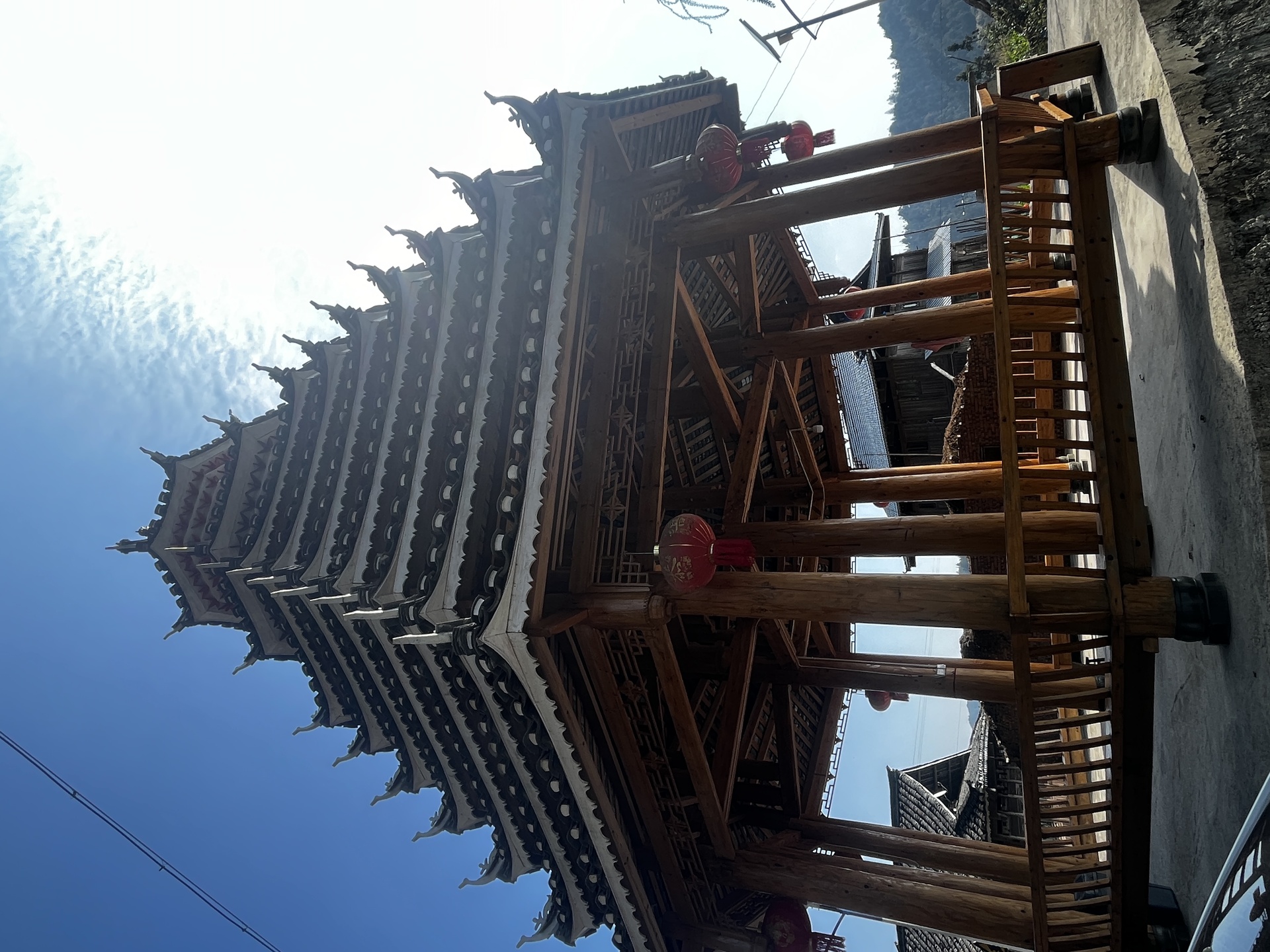 本里侗寨 上顶鼓楼(4对8柱)八角9层 2攒尖顶鼓楼 (纪念旧债鼓楼建,2024年 外来木匠
