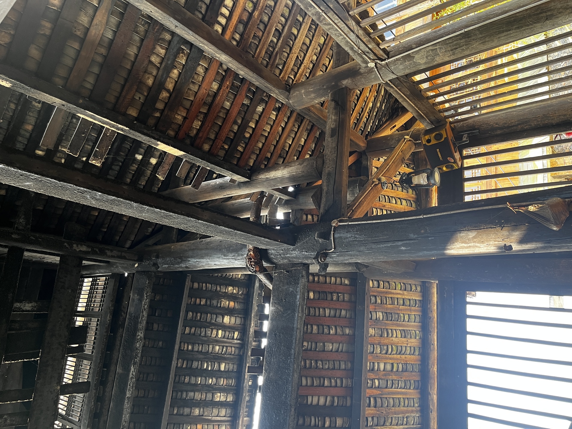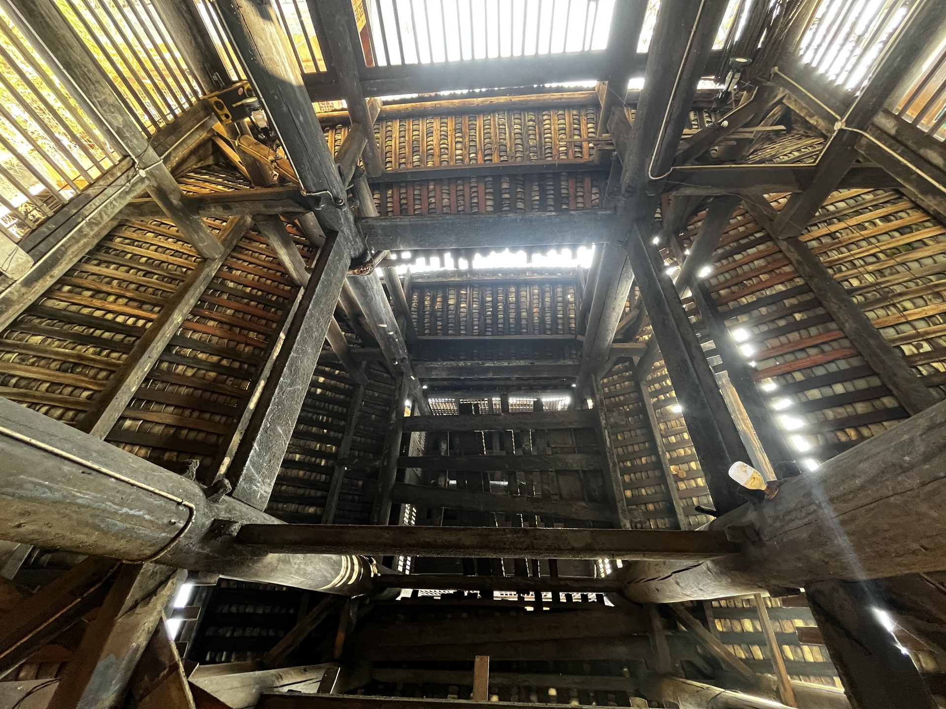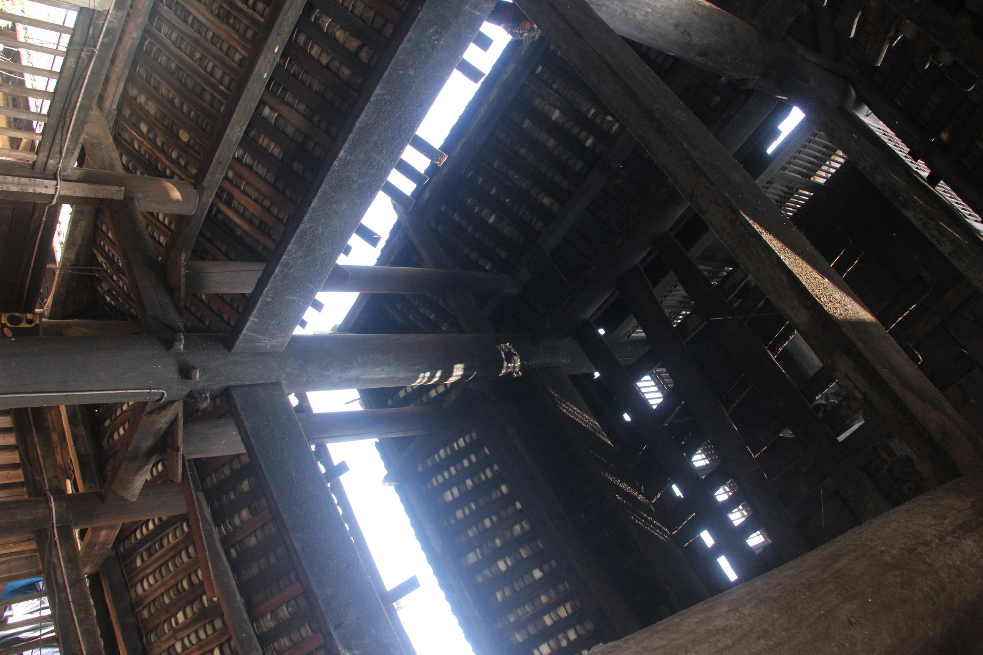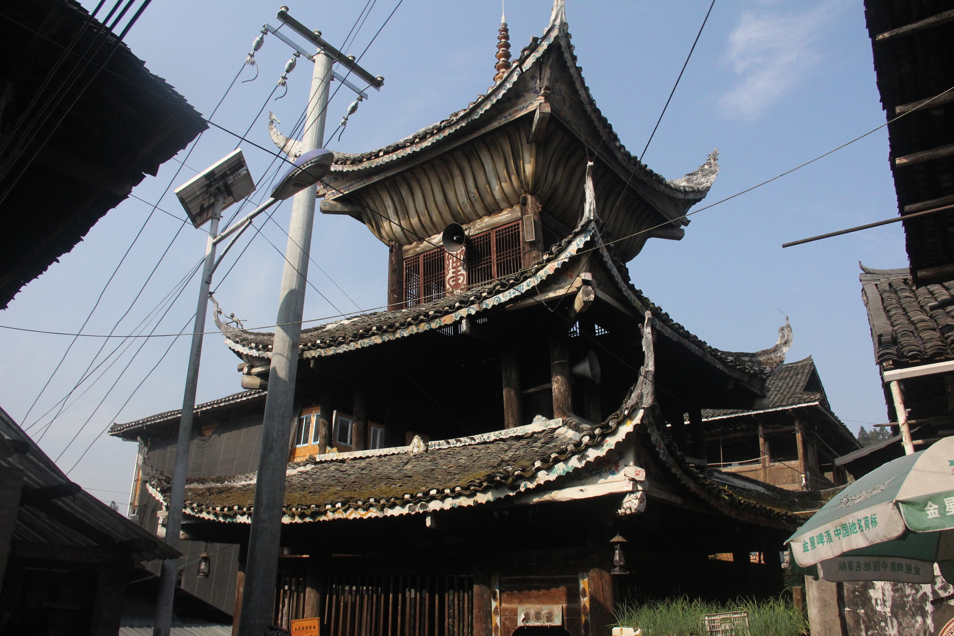 归柳村 上寨鼓楼 (4对12柱)3层四边鼓楼 ,145多户, 300年左右,老人自建,四柱 4个