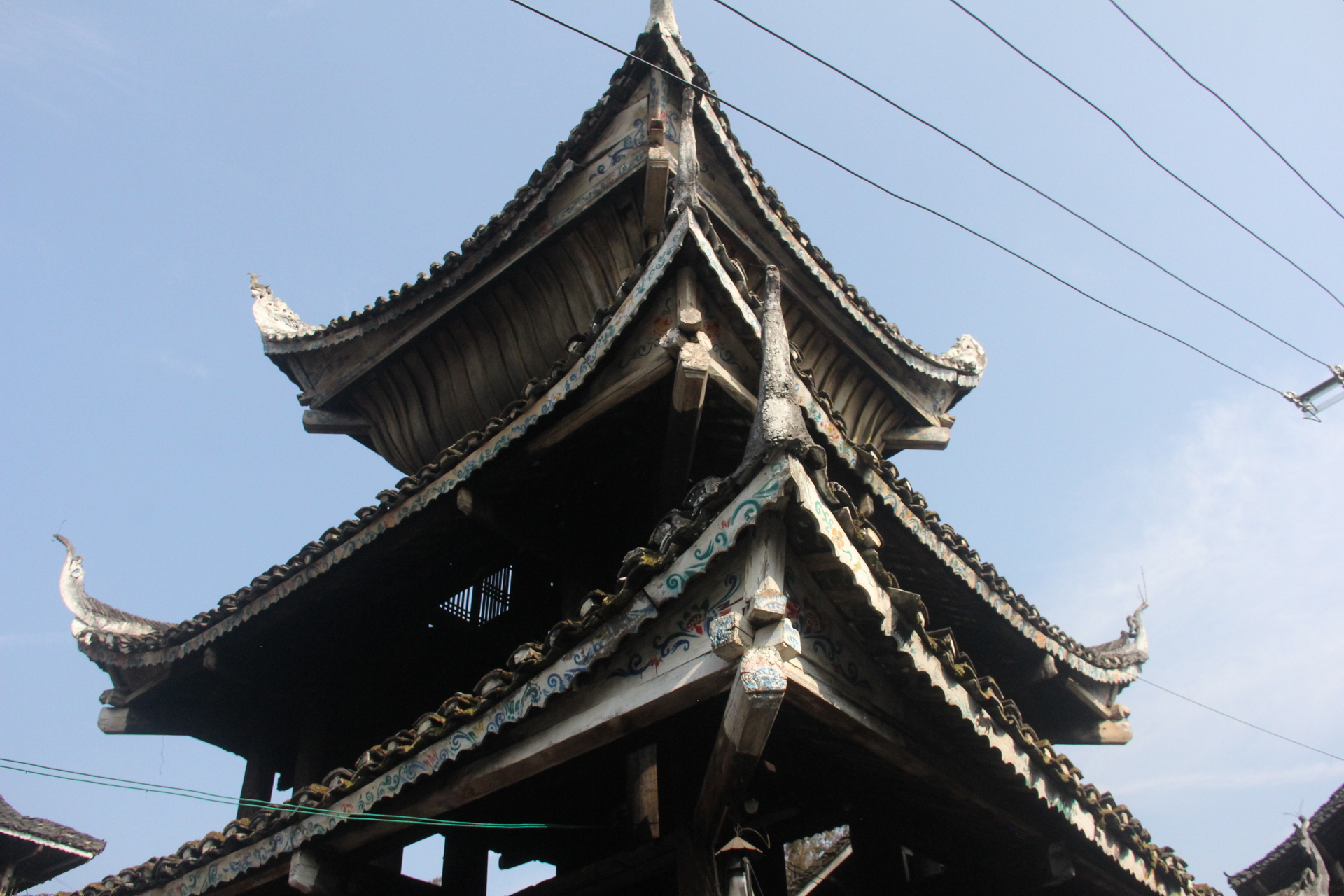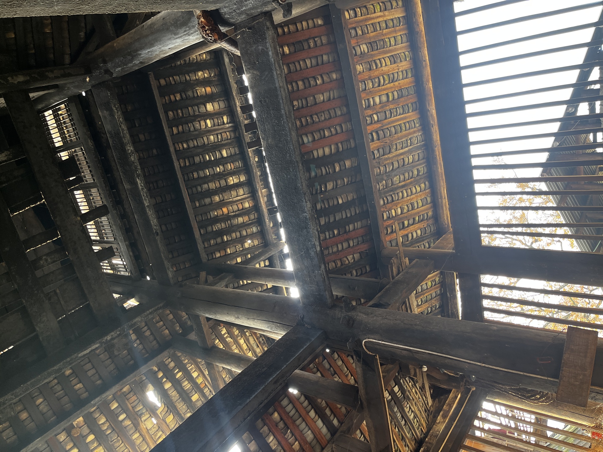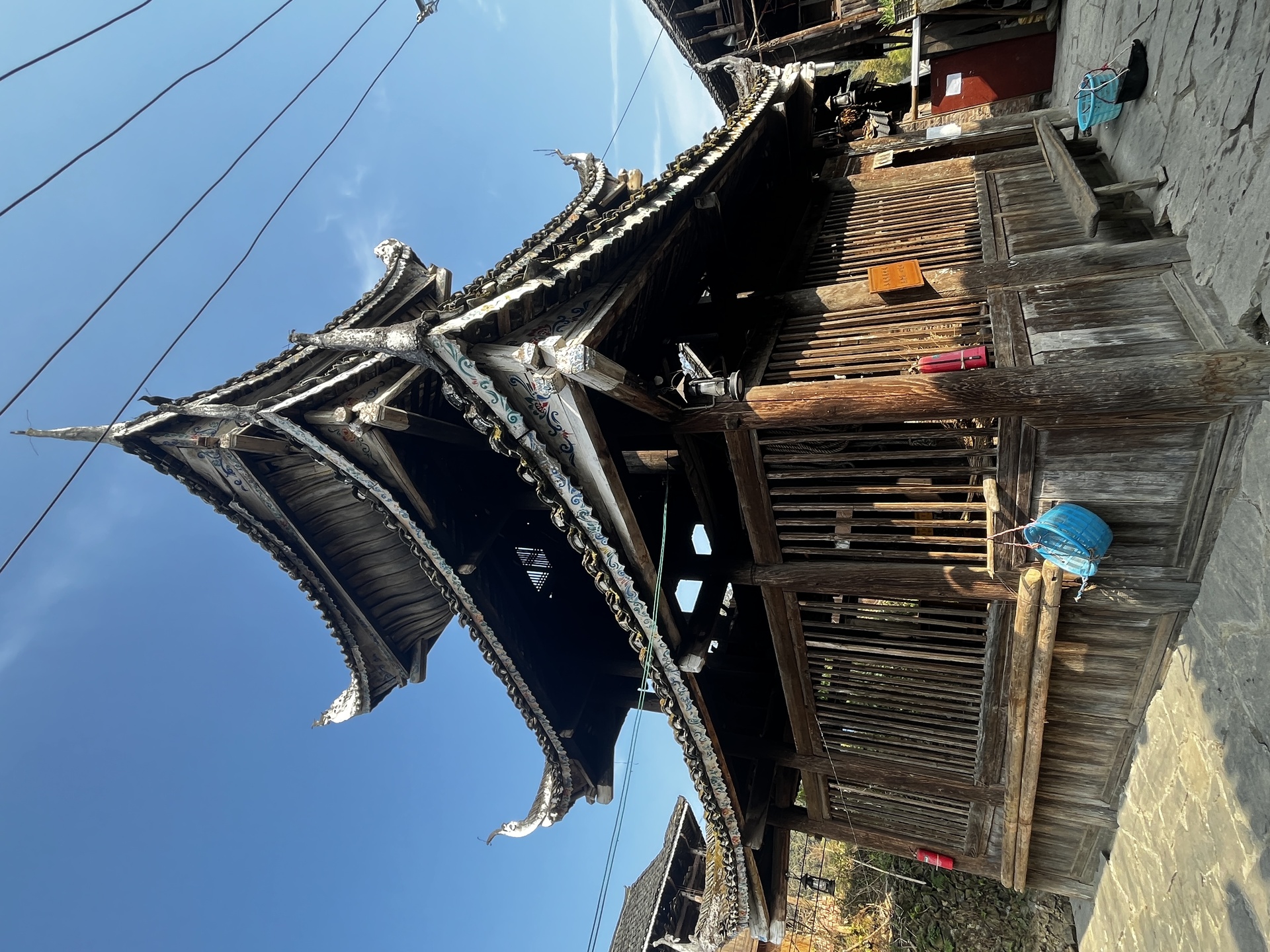 归柳村 上寨鼓楼 (4对12柱)3层四边鼓楼 ,145多户, 300年左右,老人自建,四柱 4个