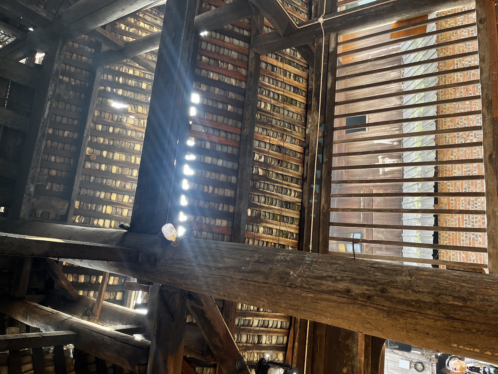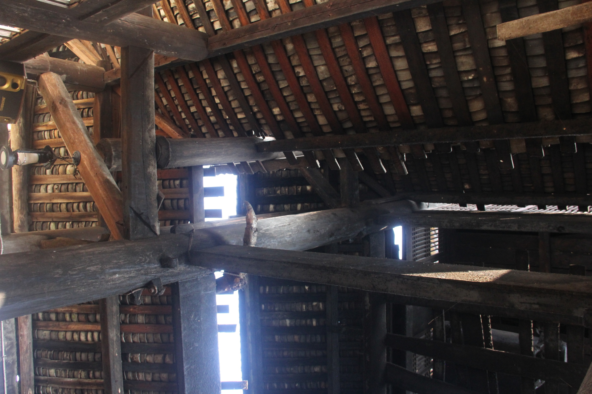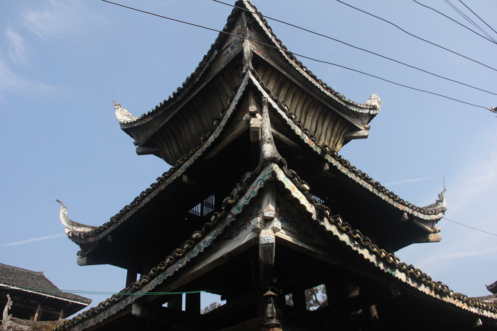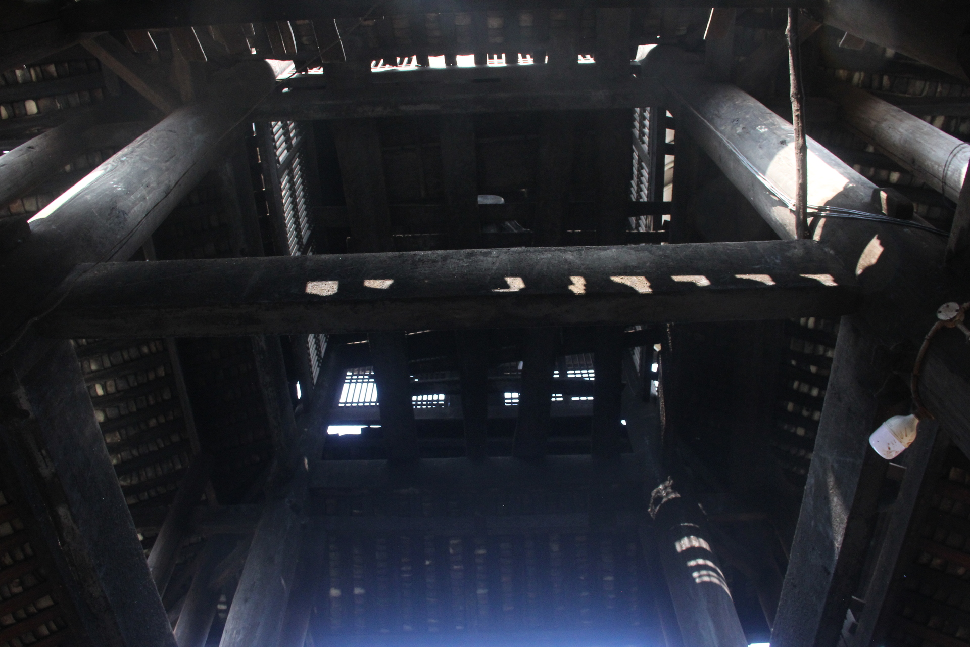 归柳村 上寨鼓楼 (4对12柱)3层四边鼓楼 ,145多户, 300年左右,老人自建,四柱 4个