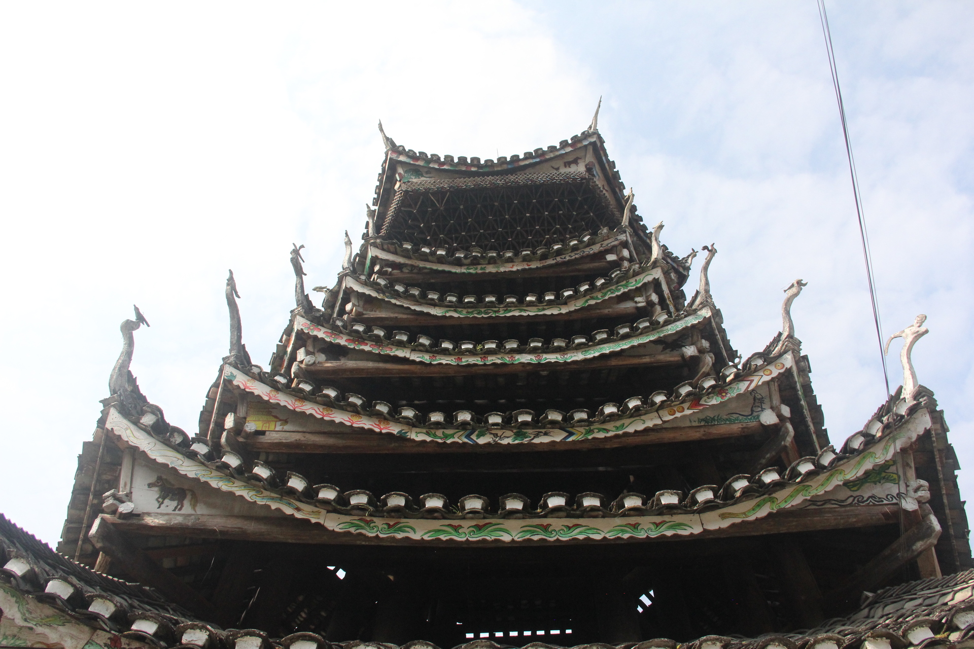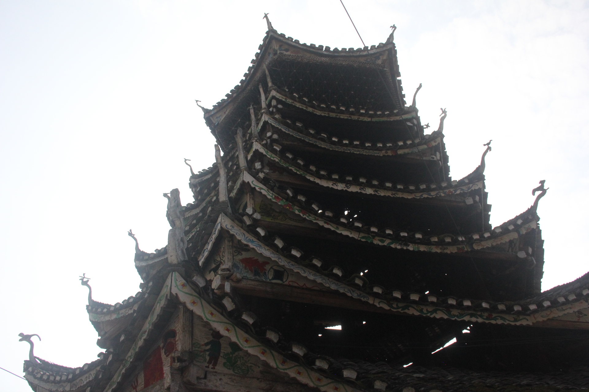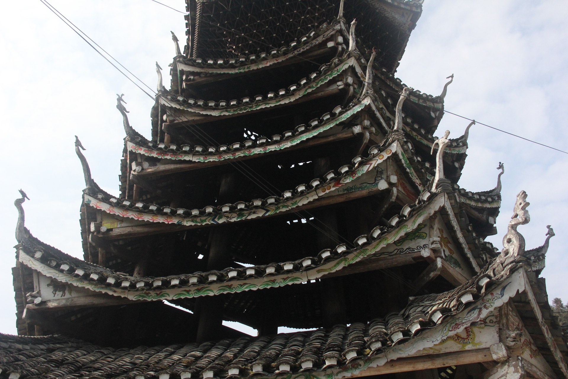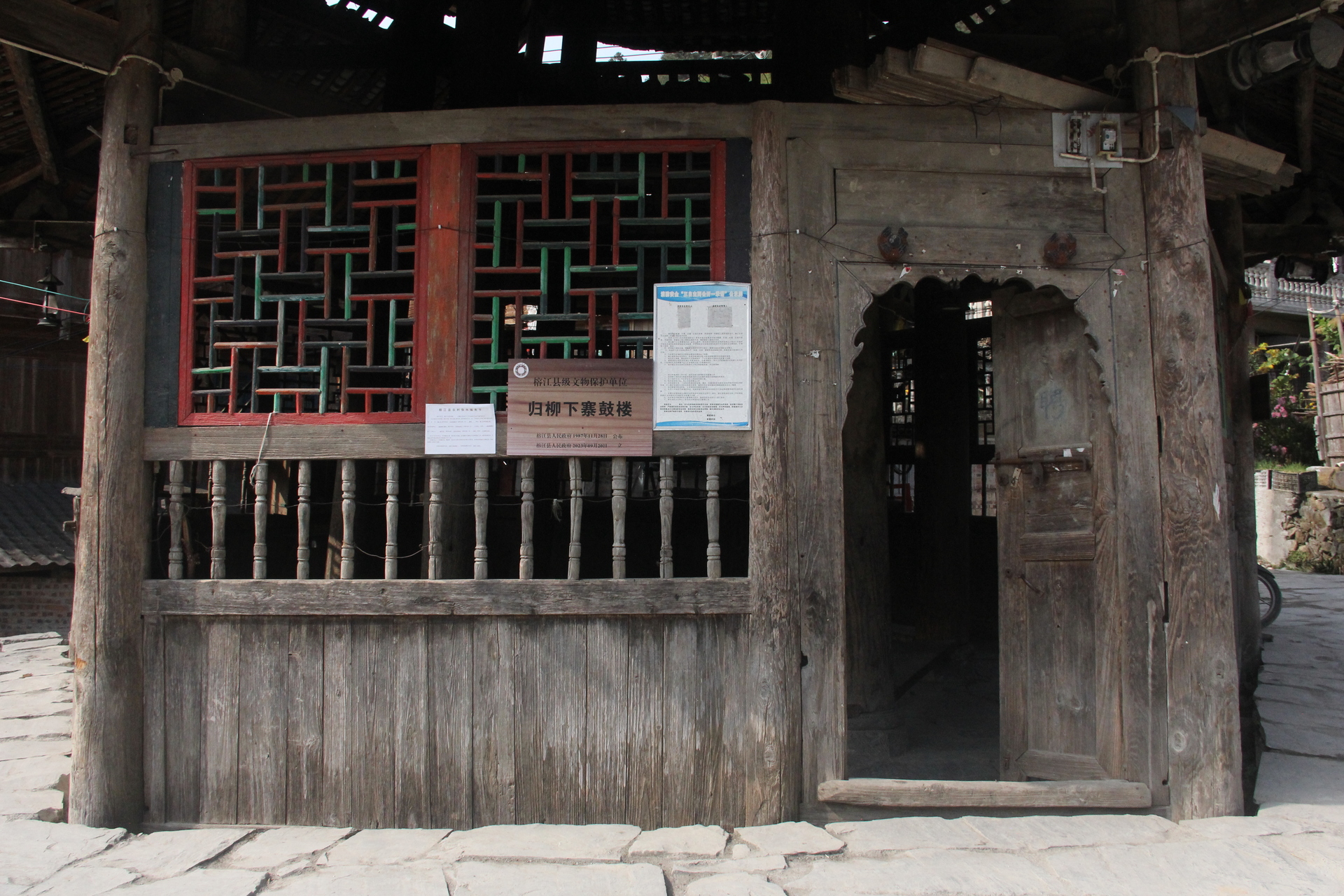 归柳村 下寨鼓楼 乾隆期间。(6对6柱)7层六角 攒尖顶鼓楼,(内柱向内微倾斜设计)2001年修建,村里修建,2016政府经费,修建 ,7个组,龙家兰家,