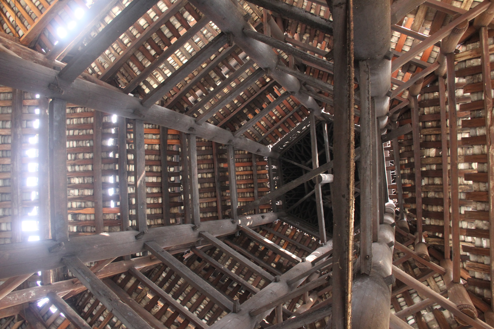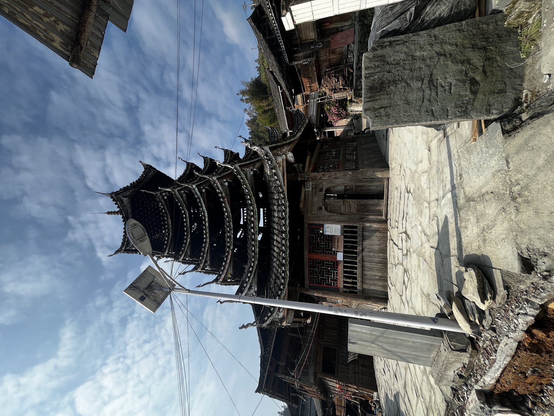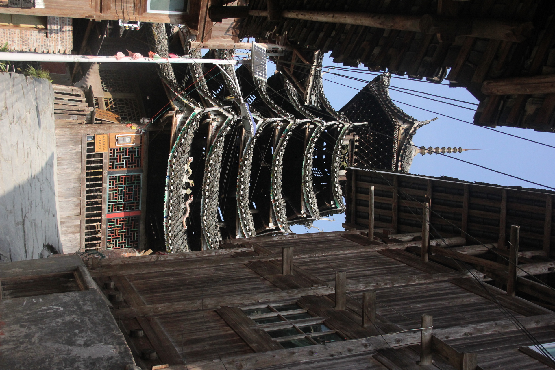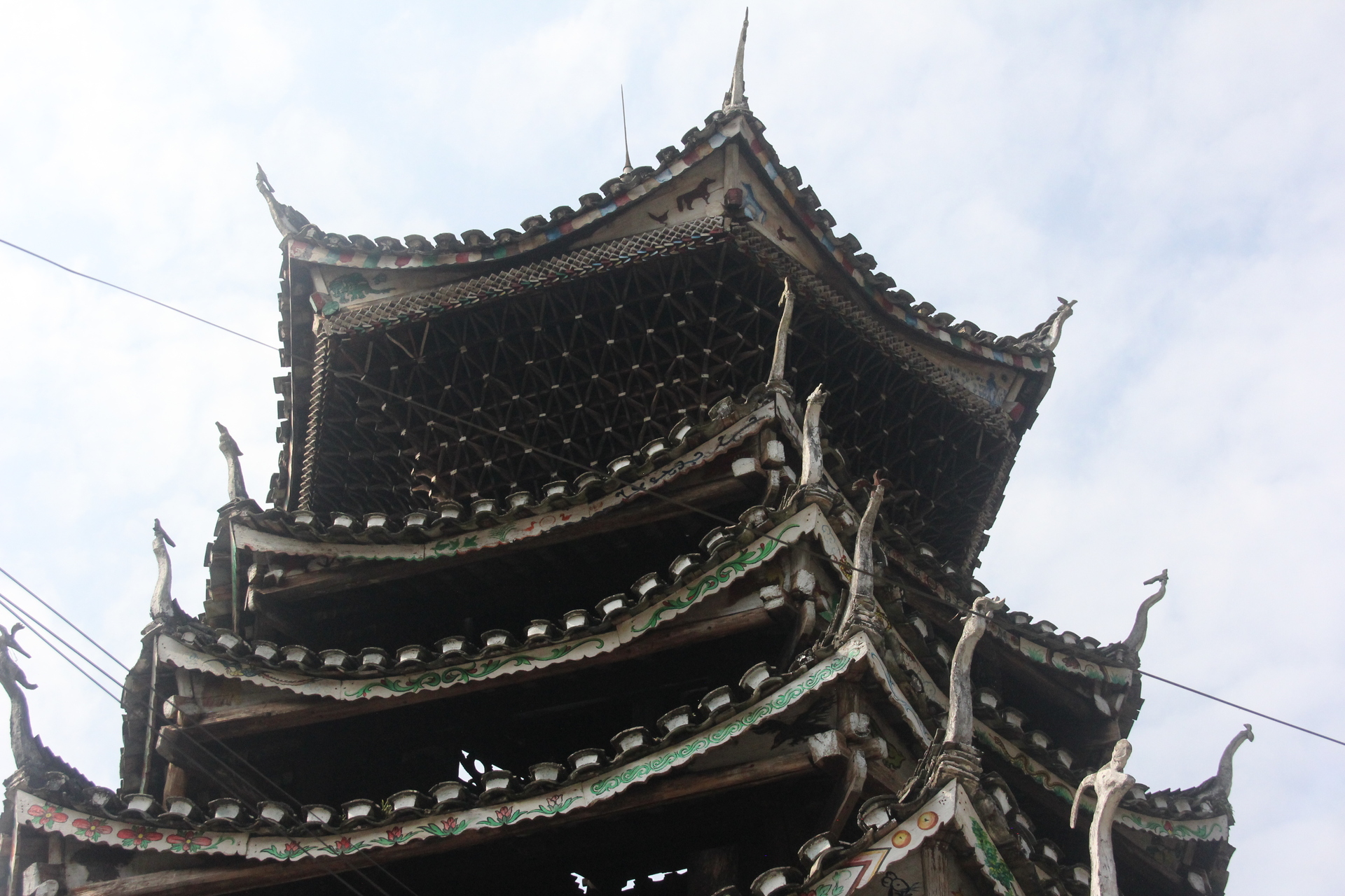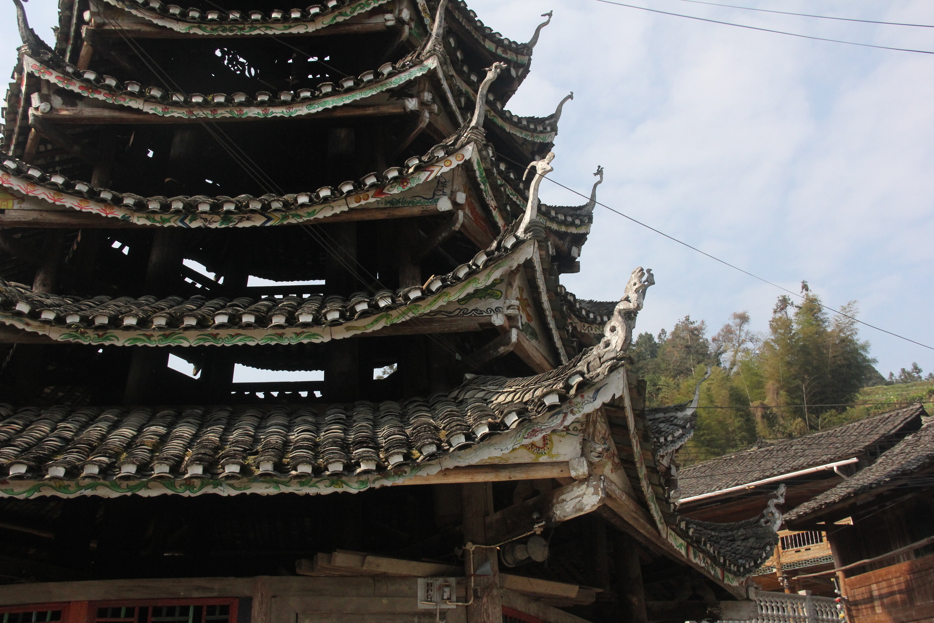 归柳村 下寨鼓楼 乾隆期间。(6对6柱)7层六角 攒尖顶鼓楼,(内柱向内微倾斜设计)2001年修建,村里修建,2016政府经费,修建 ,7个组,龙家兰家,