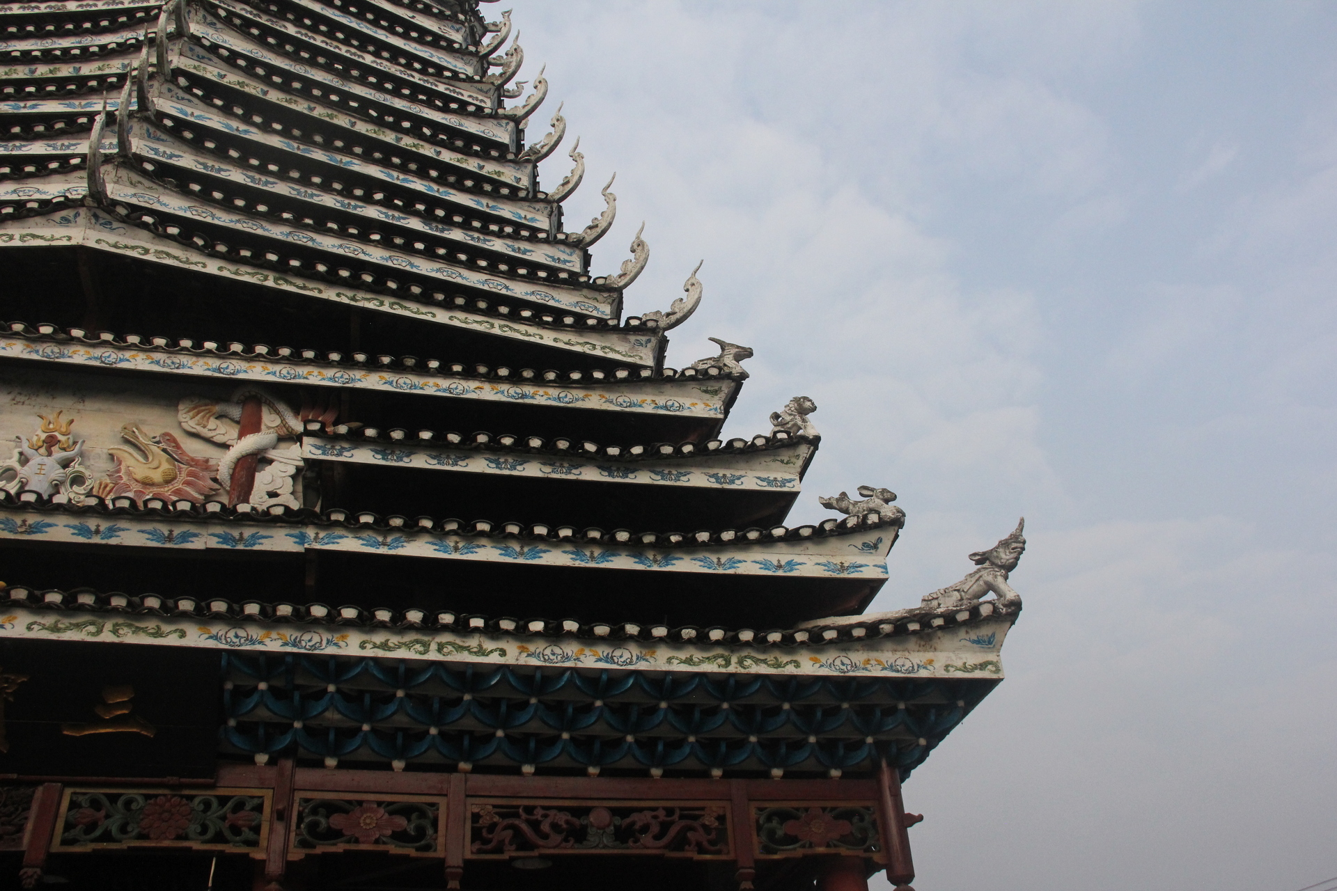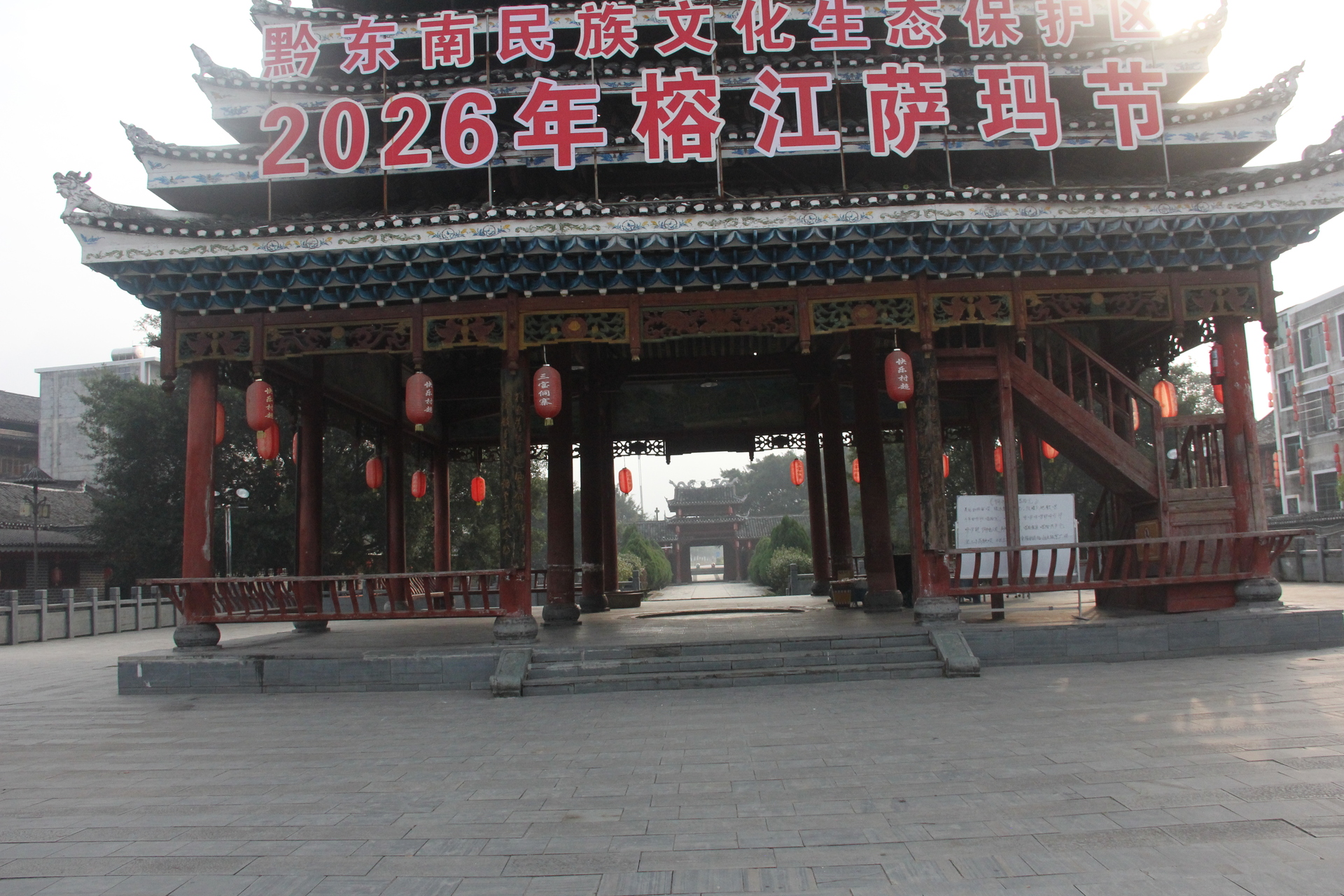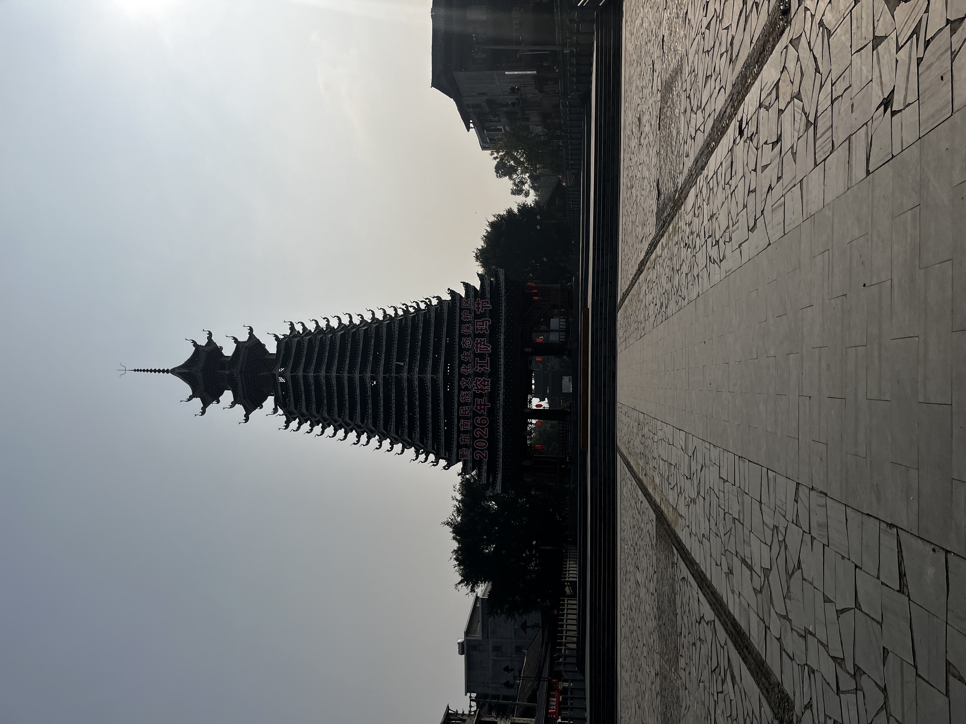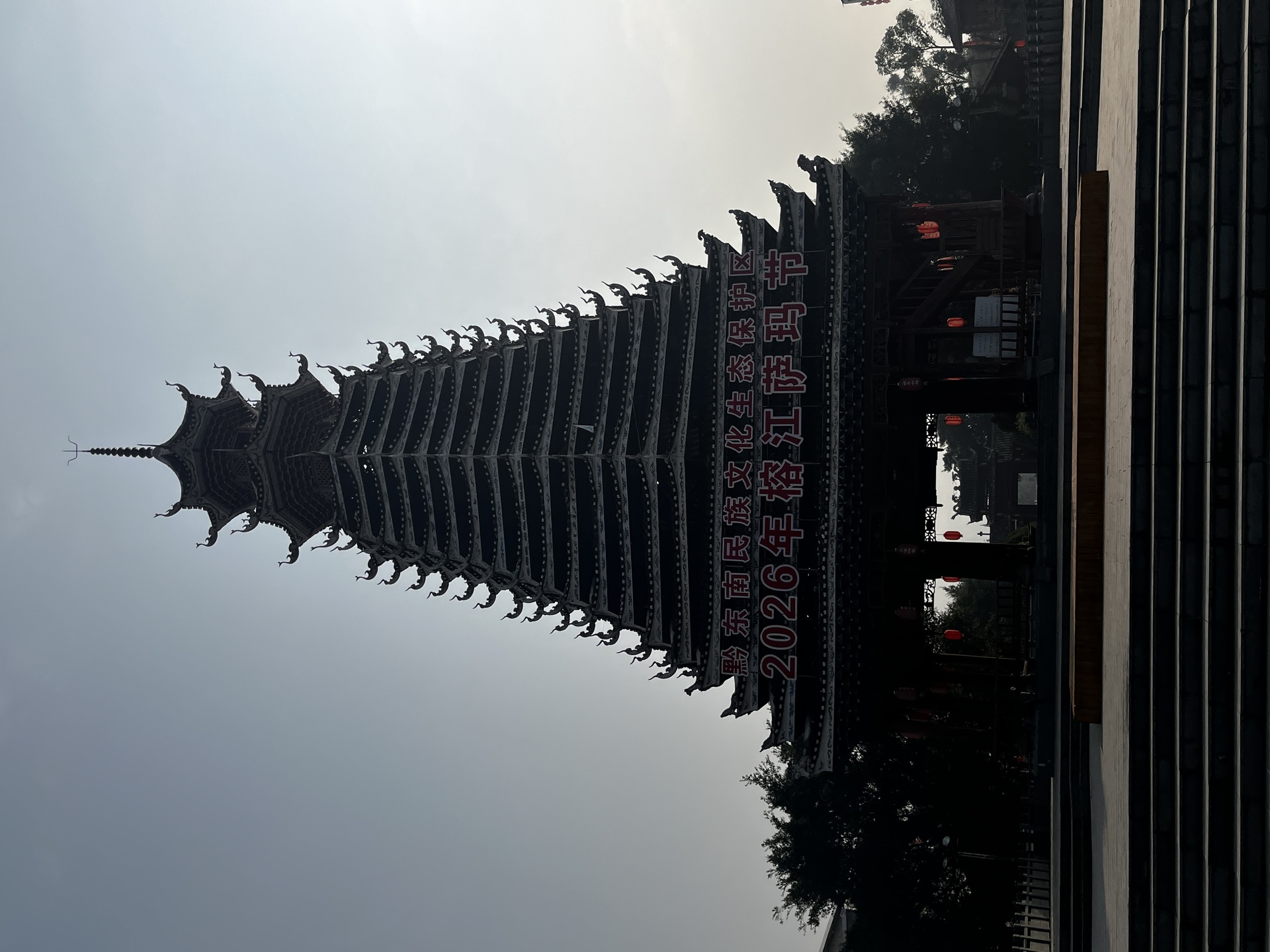 三宝侗寨 三宝鼓楼(4对8柱)共21层 (4角4层 2层攒尖顶鼓楼,2001年 建设单位:榕江人民政府,林业局,施工单位 黎平县民族古建筑公司、城市综合总开发公司,经理:杨应琪,总经理:周长波)