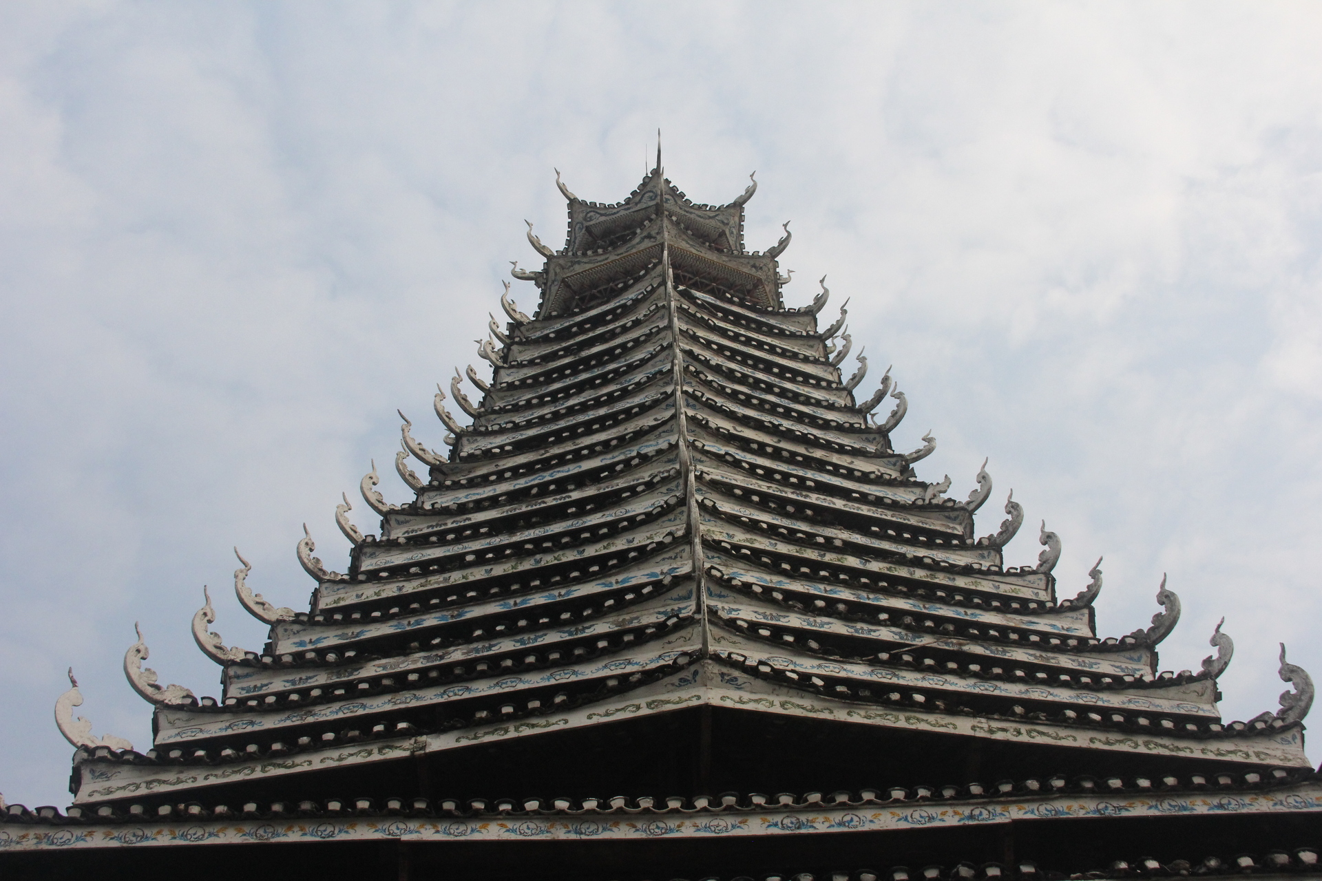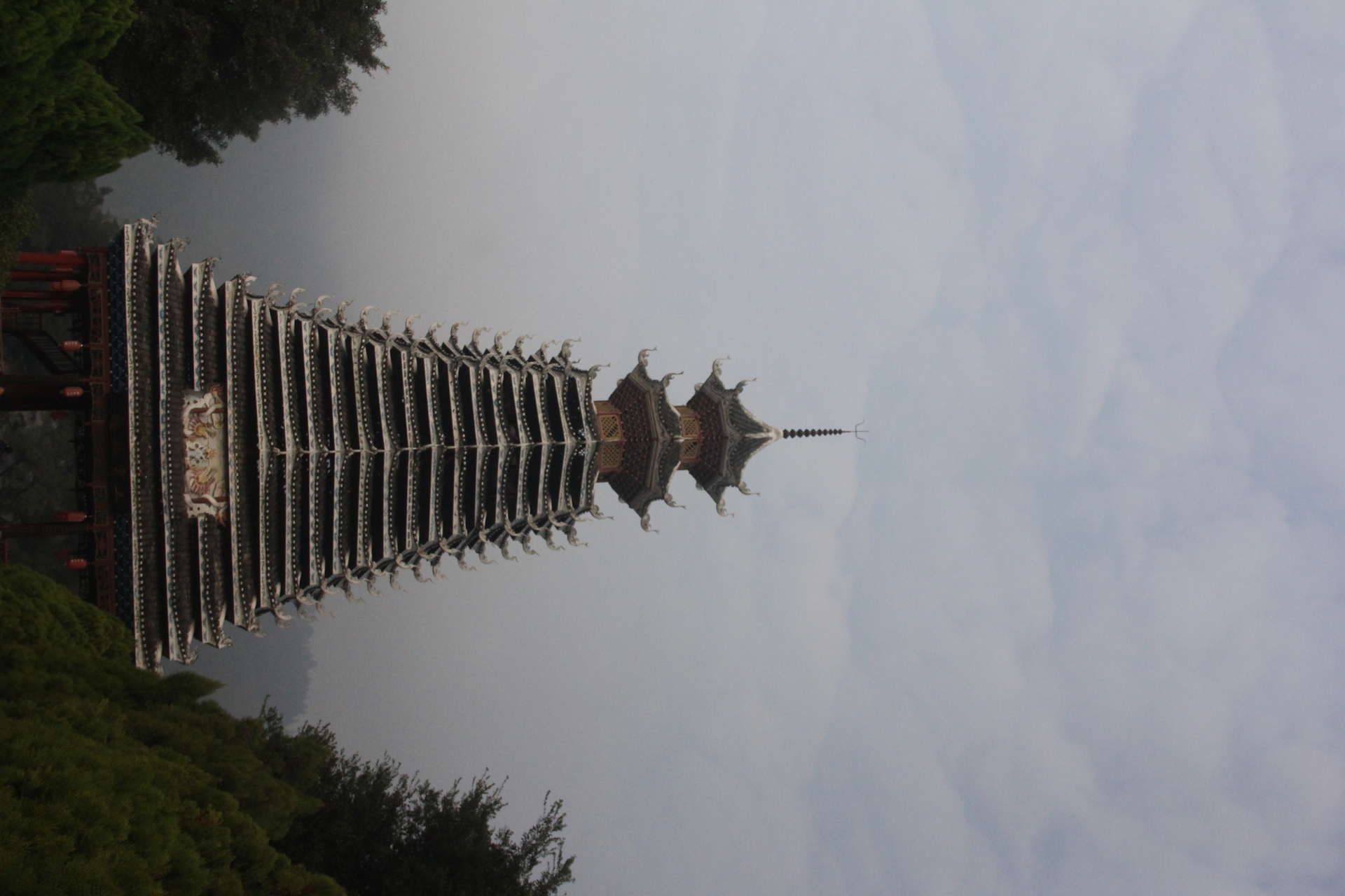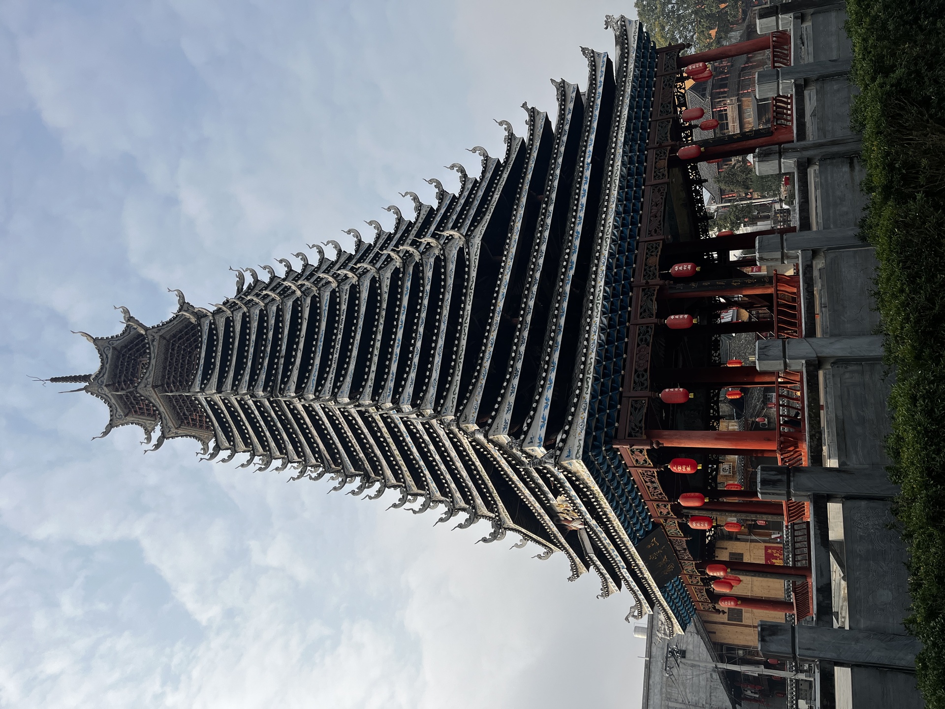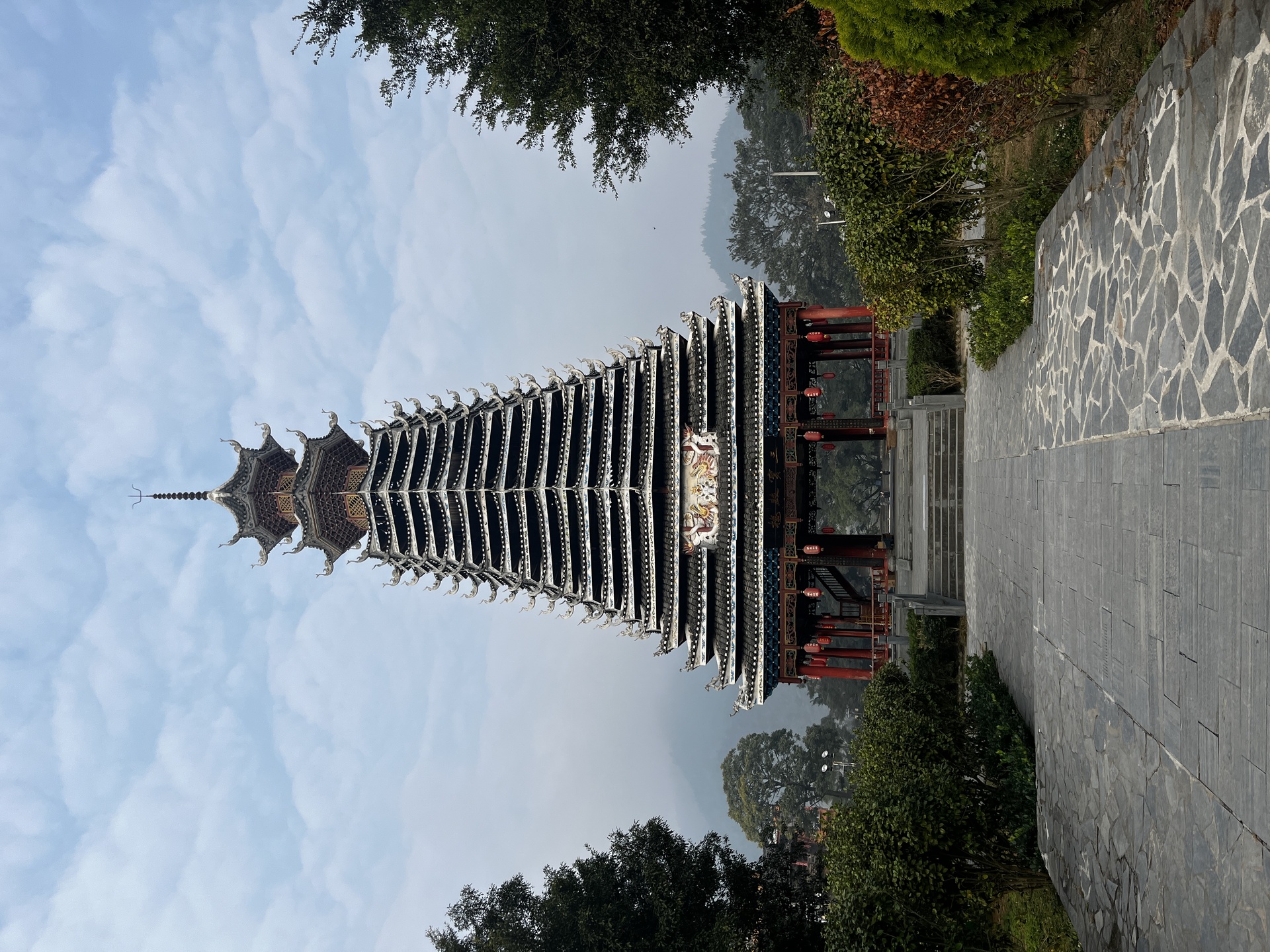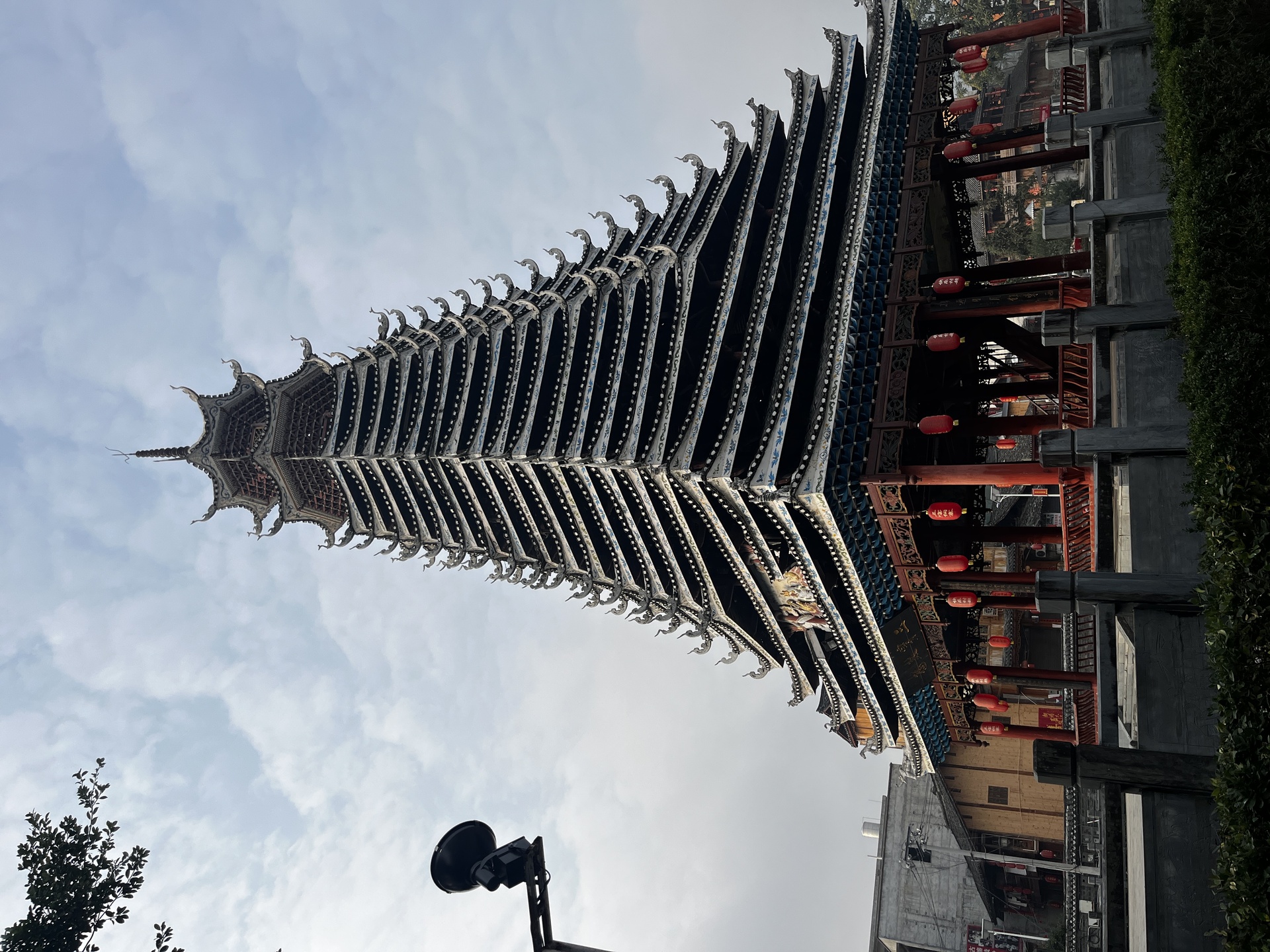 三宝侗寨 三宝鼓楼(4对8柱)共21层 (4角4层 2层攒尖顶鼓楼,2001年 建设单位:榕江人民政府,林业局,施工单位 黎平县民族古建筑公司、城市综合总开发公司,经理:杨应琪,总经理:周长波)