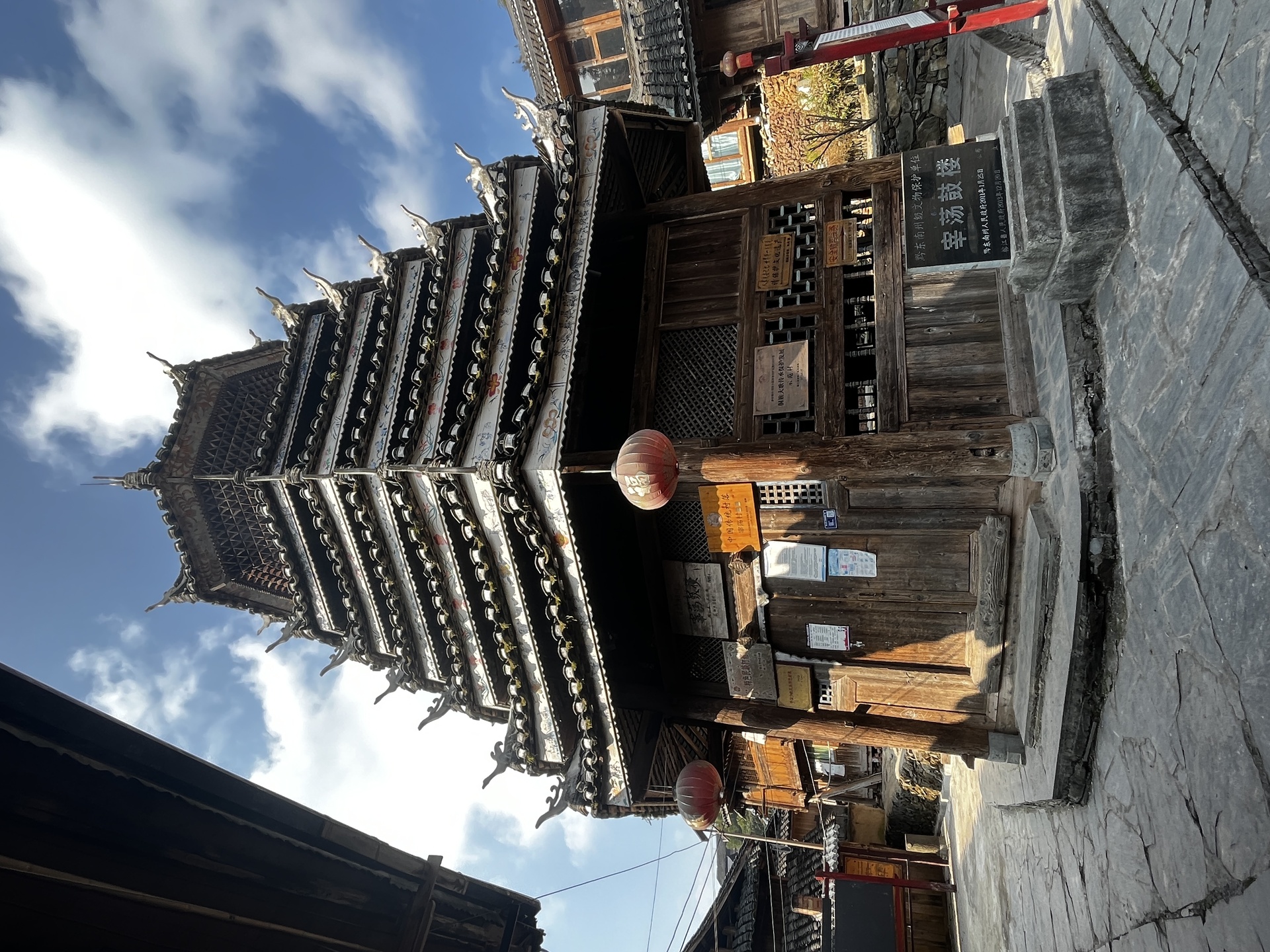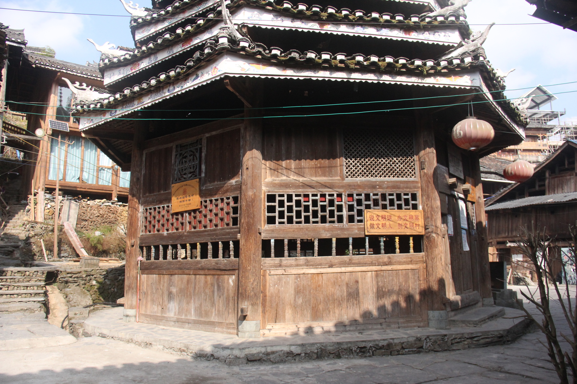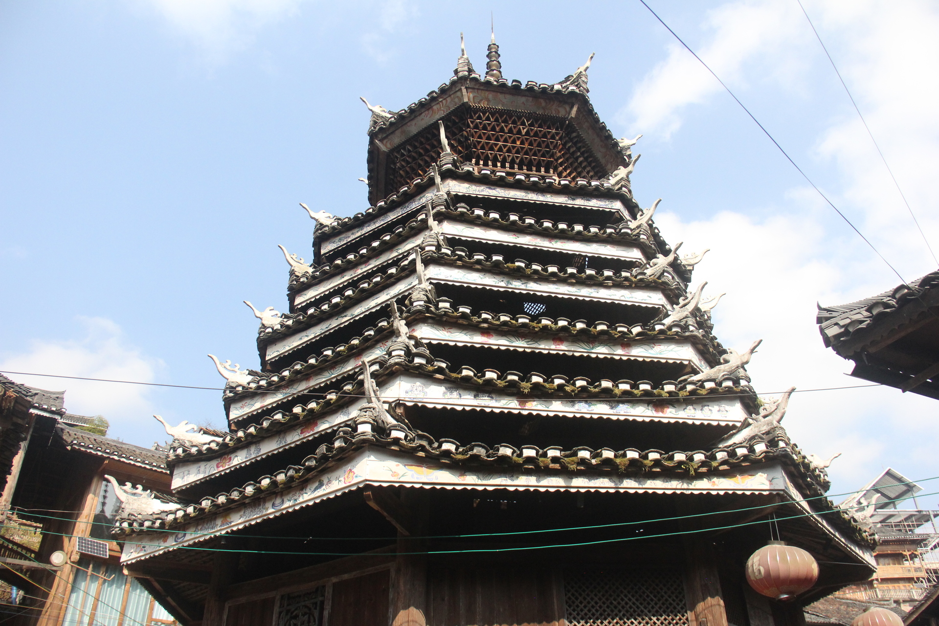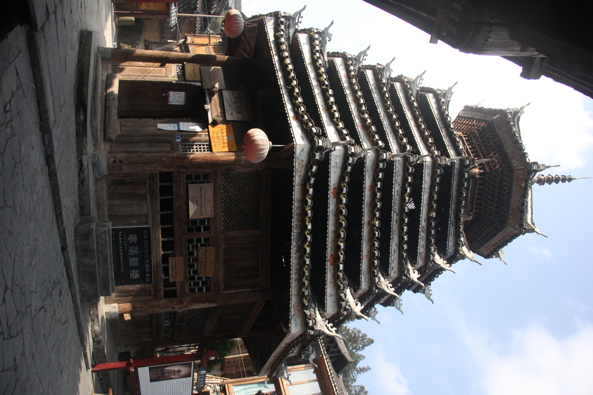 宰荡村 宰荡鼓楼 始建清 乾隆初年(约1730年)(4对8柱)7层8角1层攒尖顶, 高12米,省级文保物。200多户,