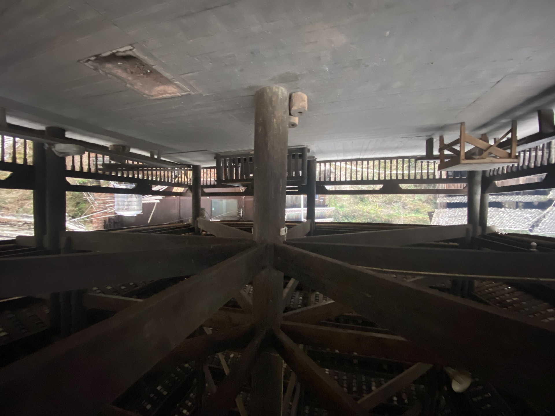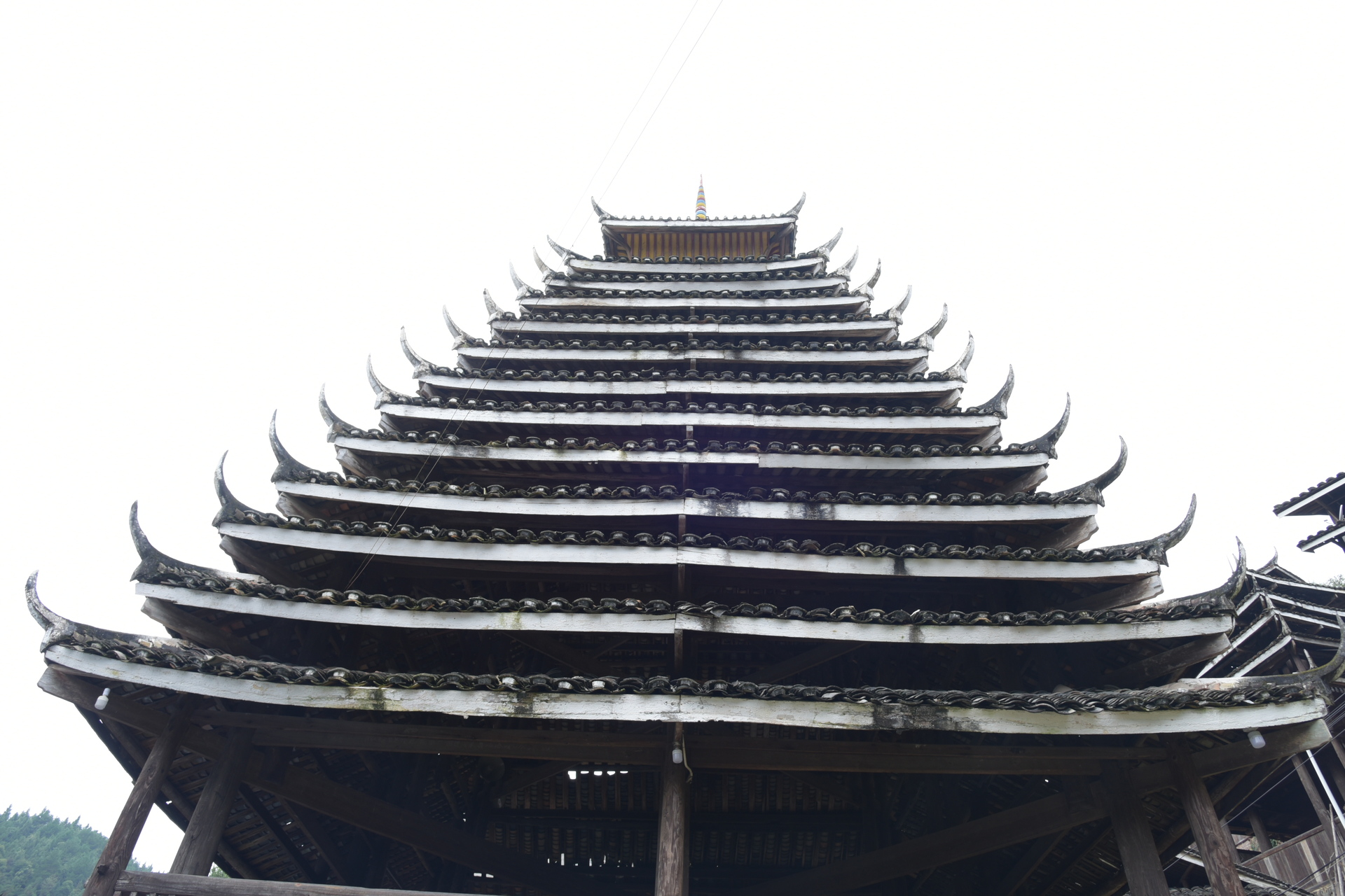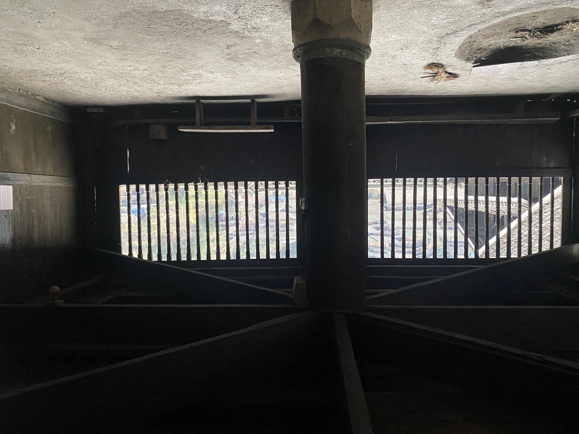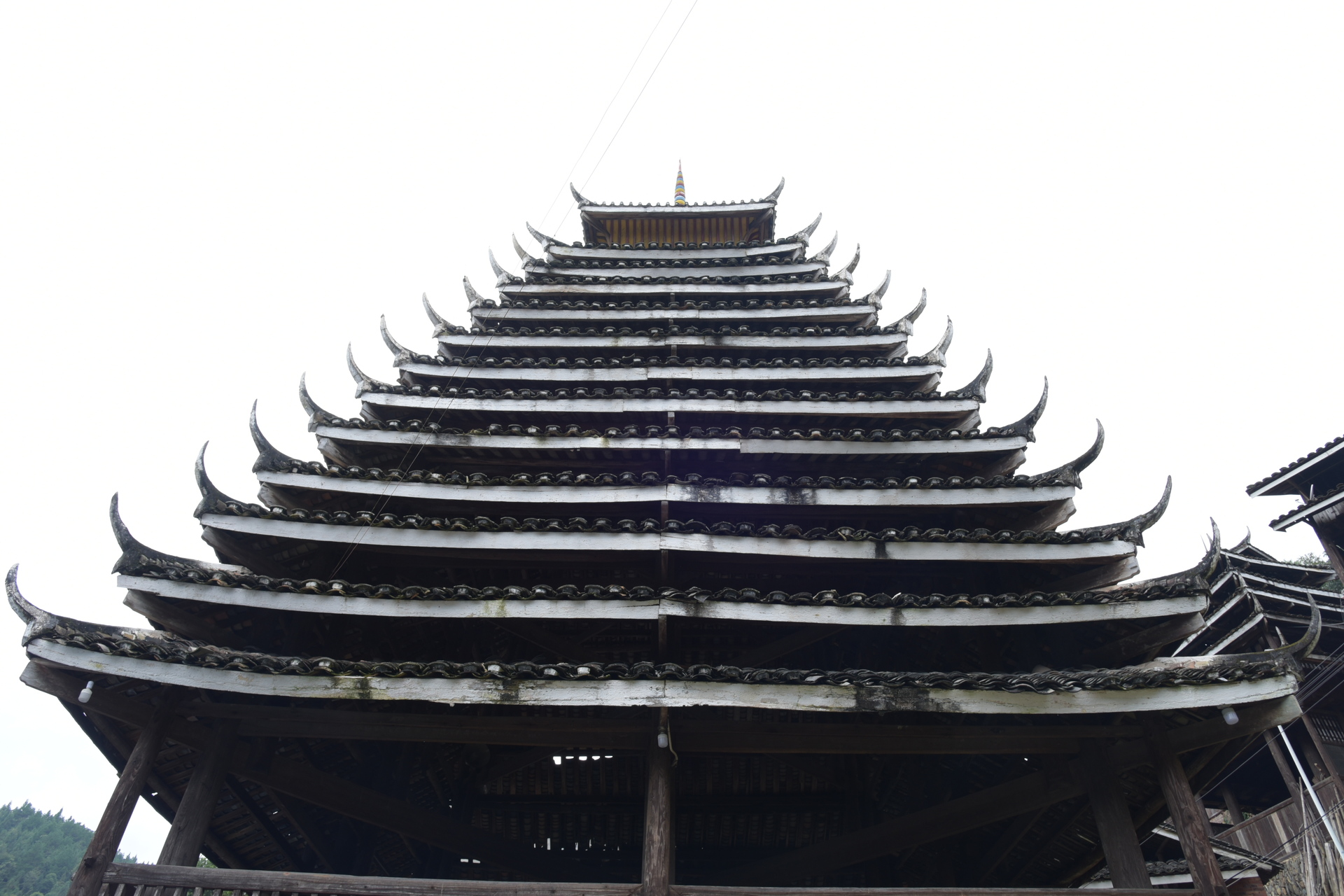 独柱鼓楼 4边形 13层攒尖顶鼓楼, 1对8柱