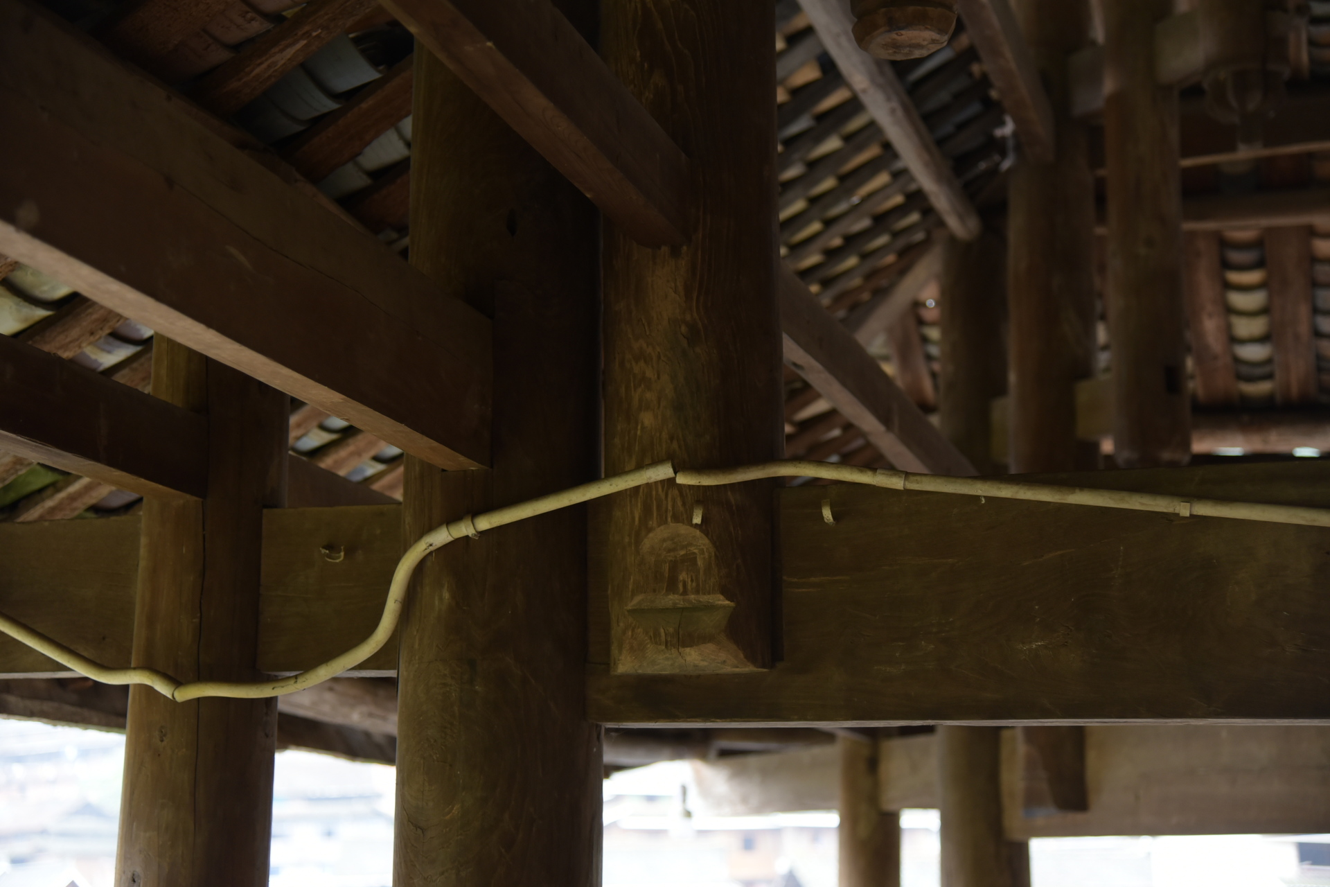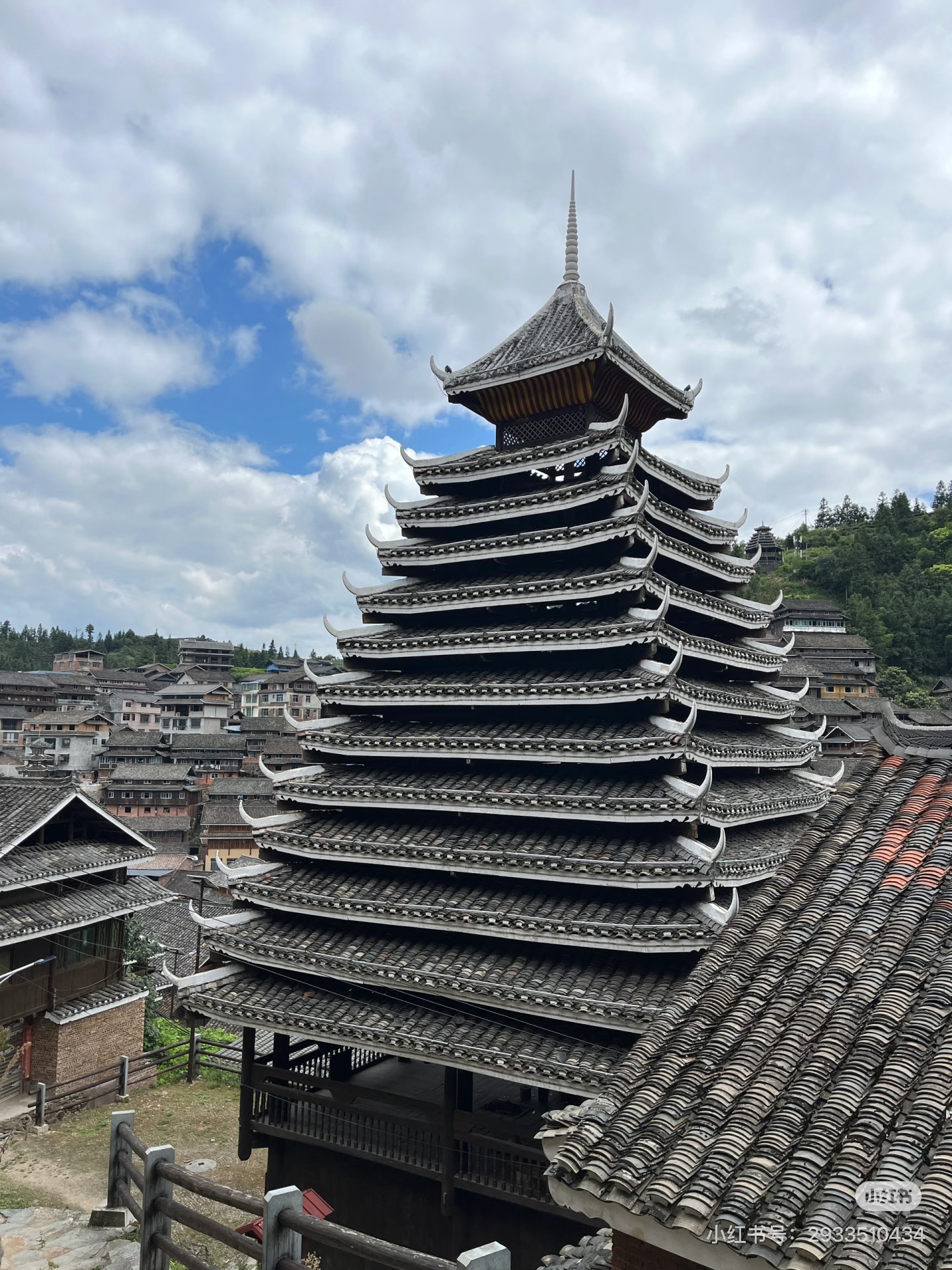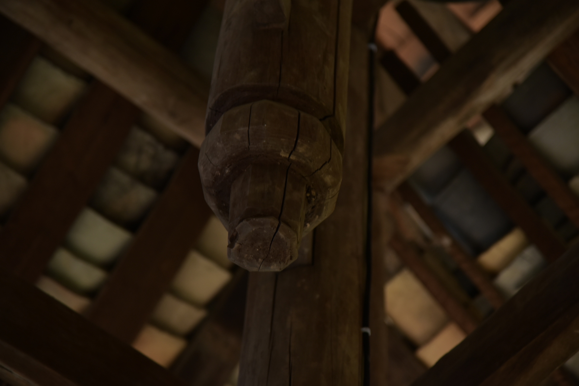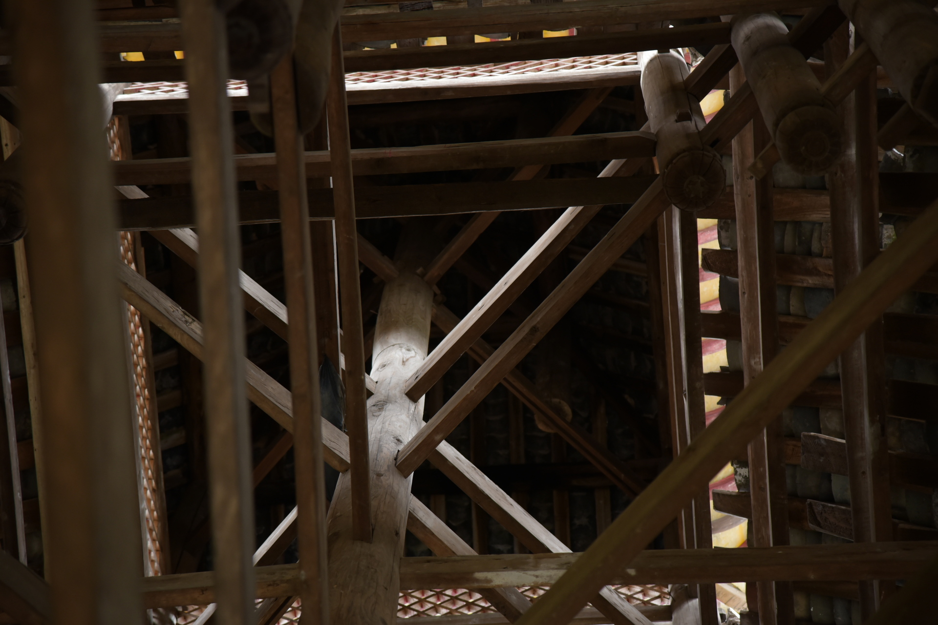 独柱鼓楼 4边形 13层攒尖顶鼓楼, 1对8柱