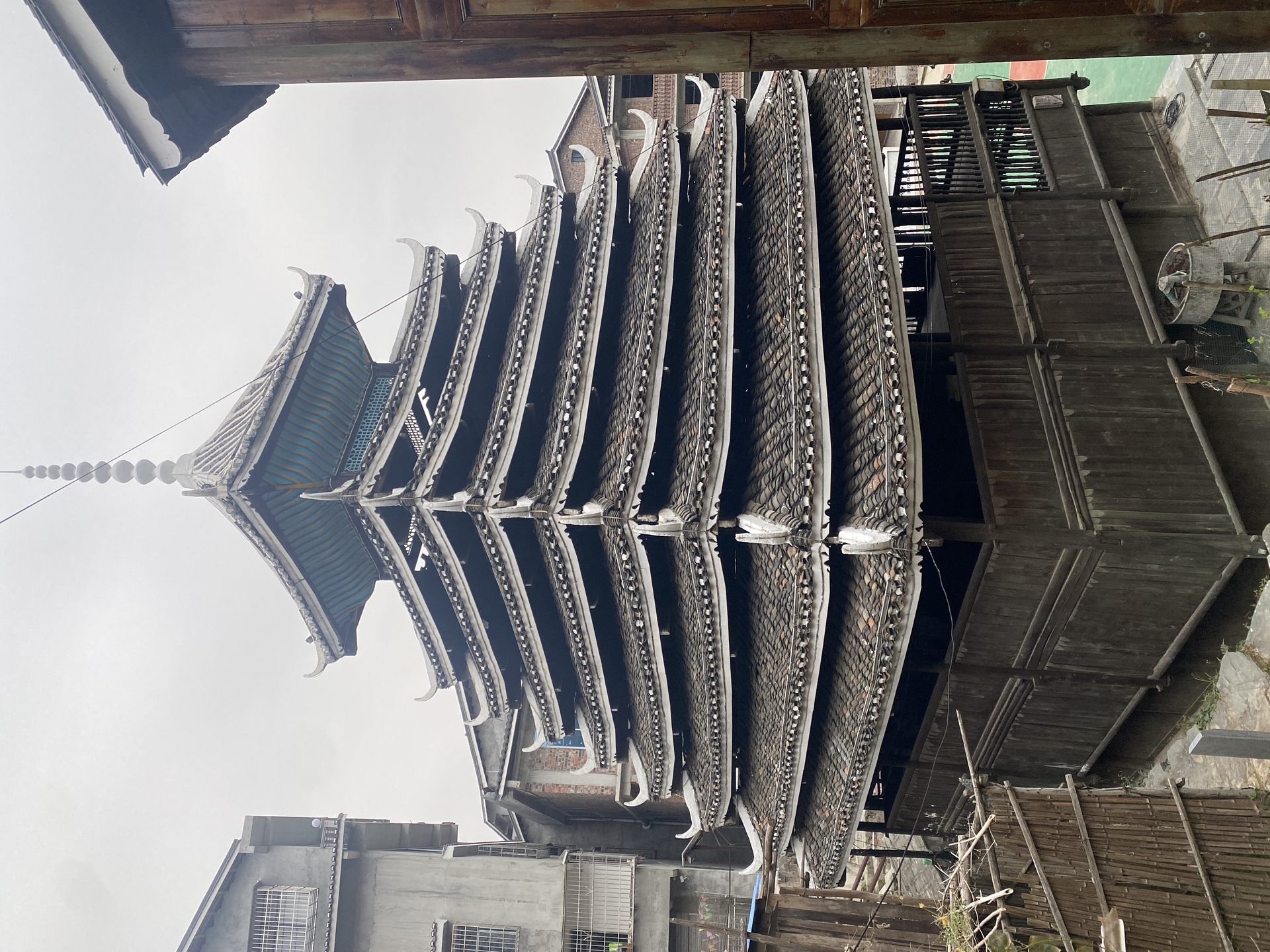 .高定鼓楼,9层4边形攒尖顶,4对12柱,身2层,始建明末,1985年修缮,掌墨师:吴富智,80岁