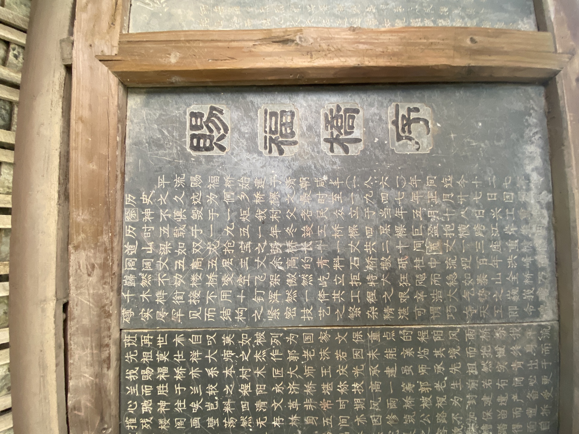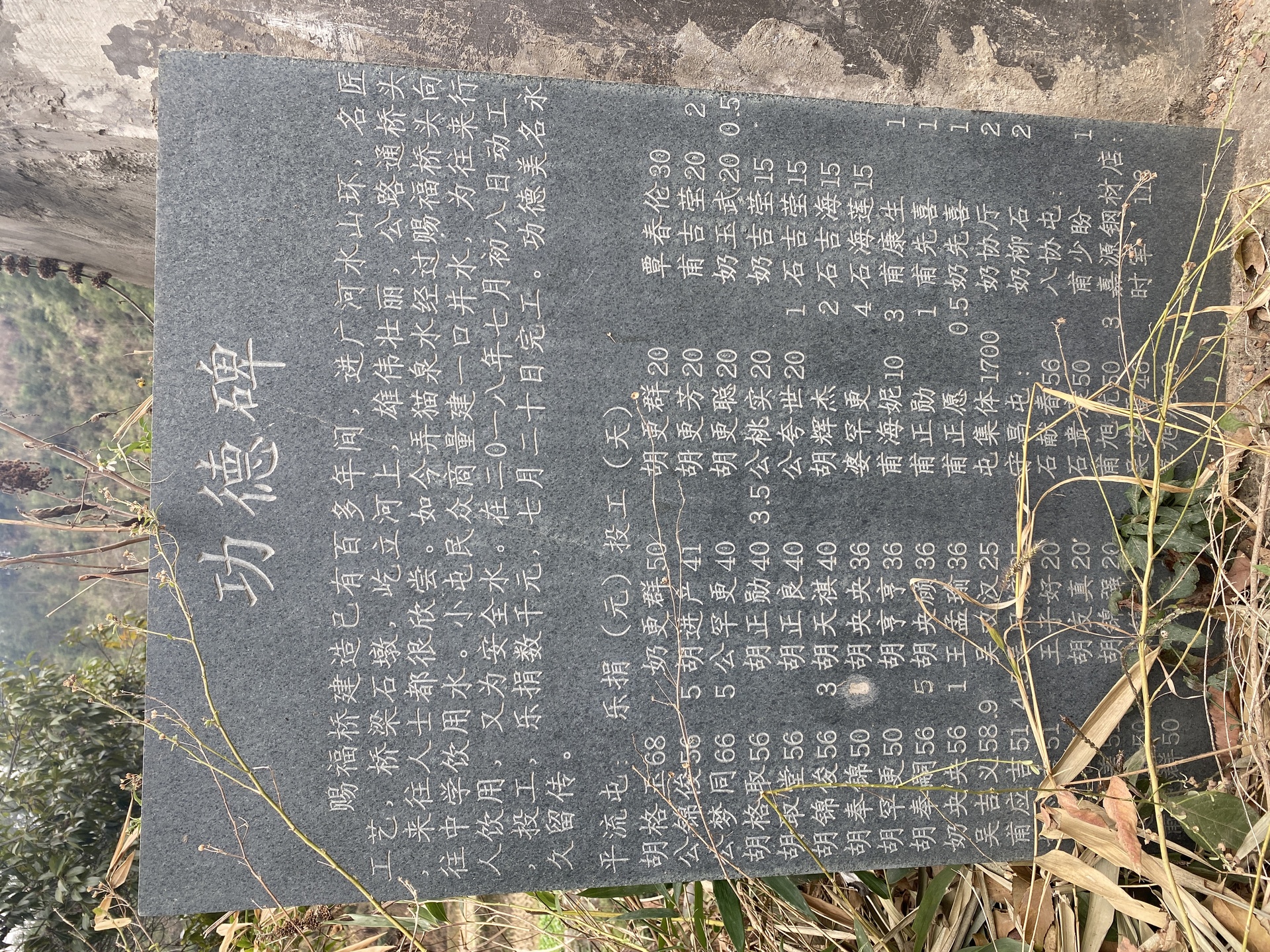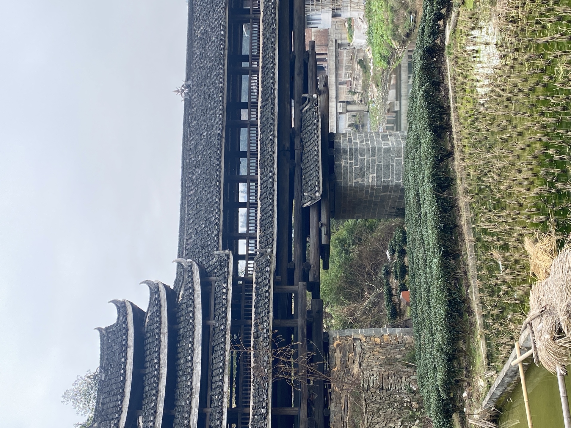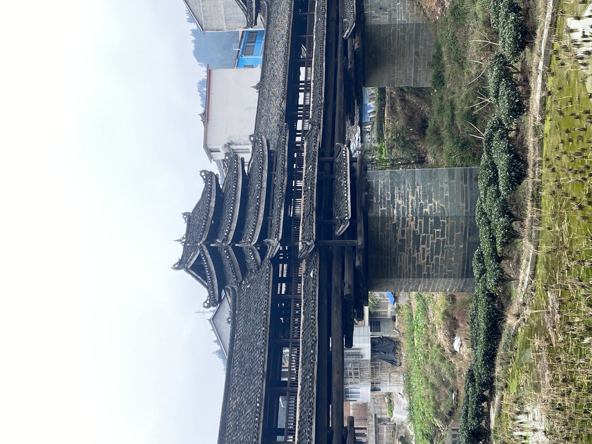 平流赐福桥、始建有100多年 不祥,饮水安全,2018年7月动工 12月完工,3宝塔斜山顶 +1个入口门楼,3桥石墩,桥两8间每间约3米,3停约5.米*4米