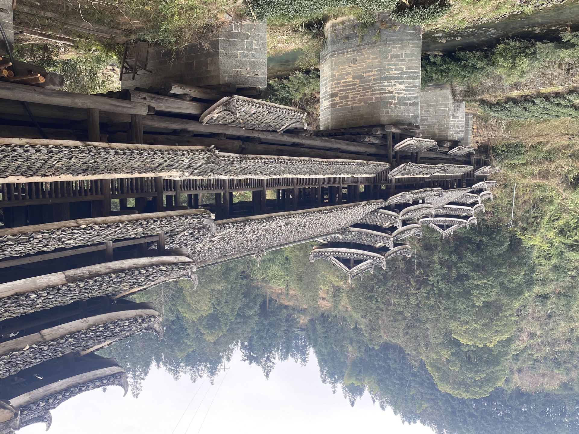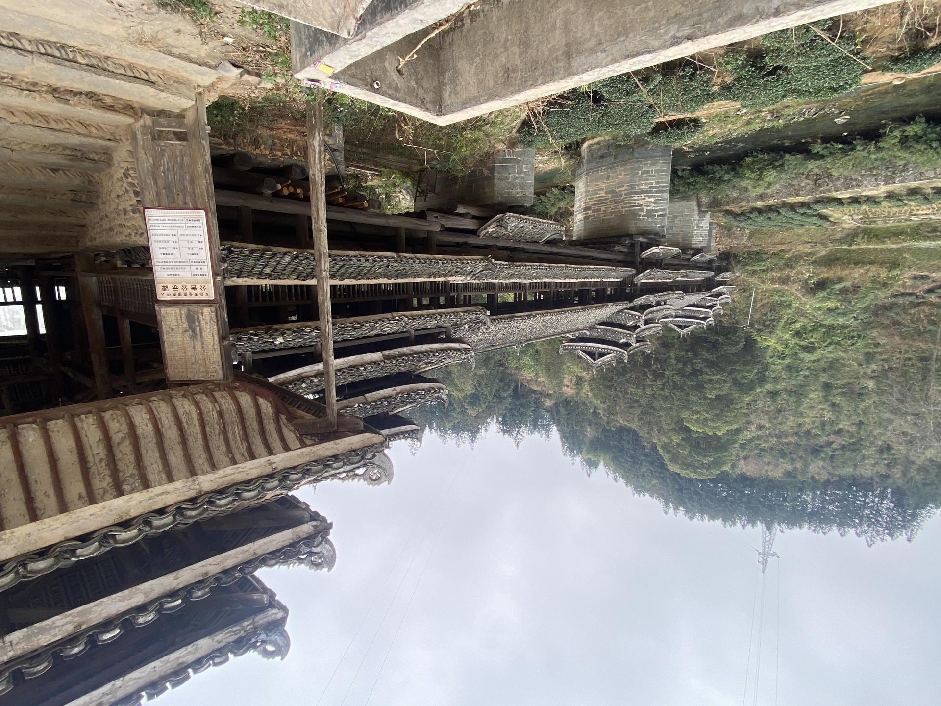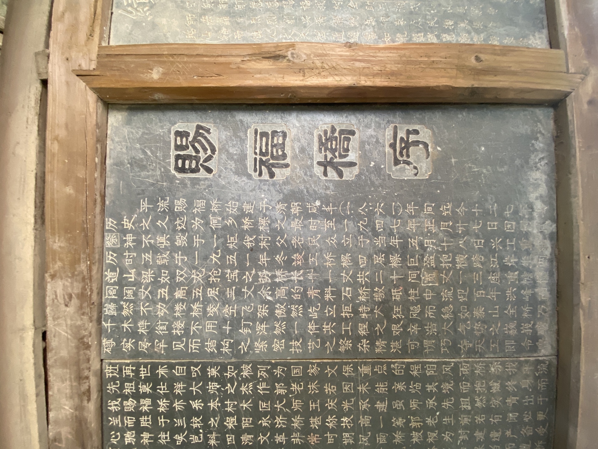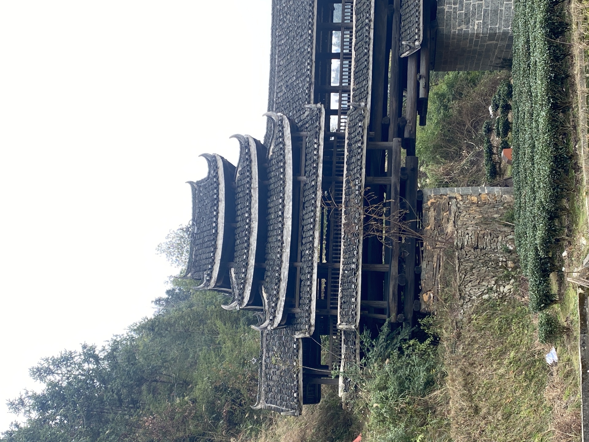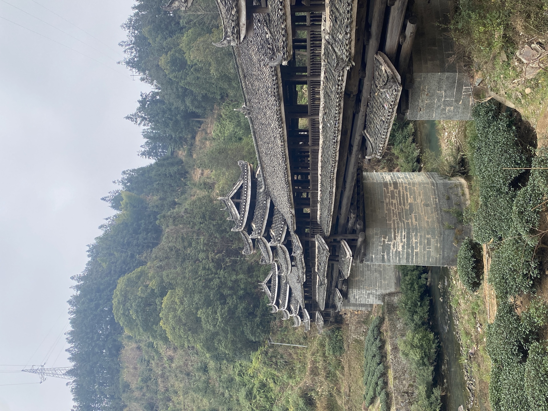 平流赐福桥、始建有100多年 不祥,饮水安全,2018年7月动工 12月完工,3宝塔斜山顶 +1个入口门楼,3桥石墩,桥两8间每间约3米,3停约5.米*4米