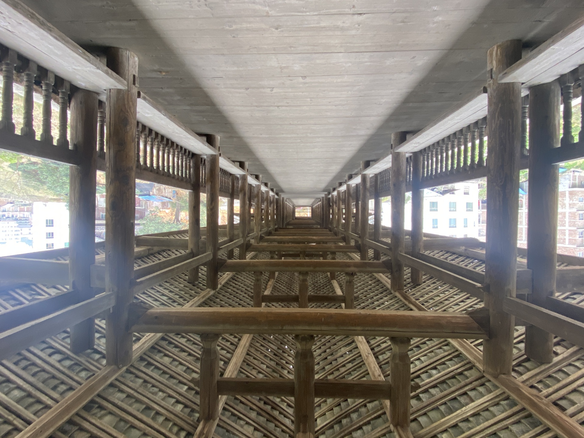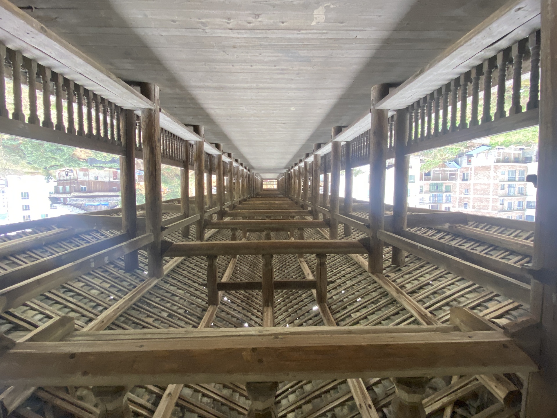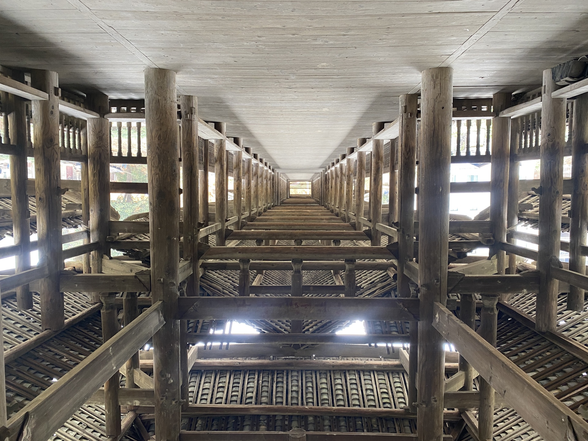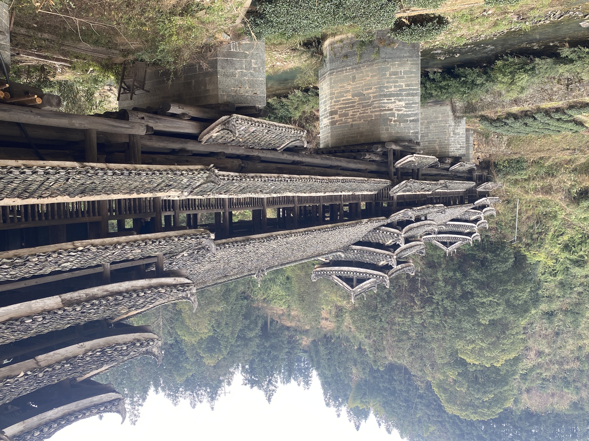 平流赐福桥、始建有100多年 不祥,饮水安全,2018年7月动工 12月完工,3宝塔斜山顶 +1个入口门楼,3桥石墩,桥两8间每间约3米,3停约5.米*4米