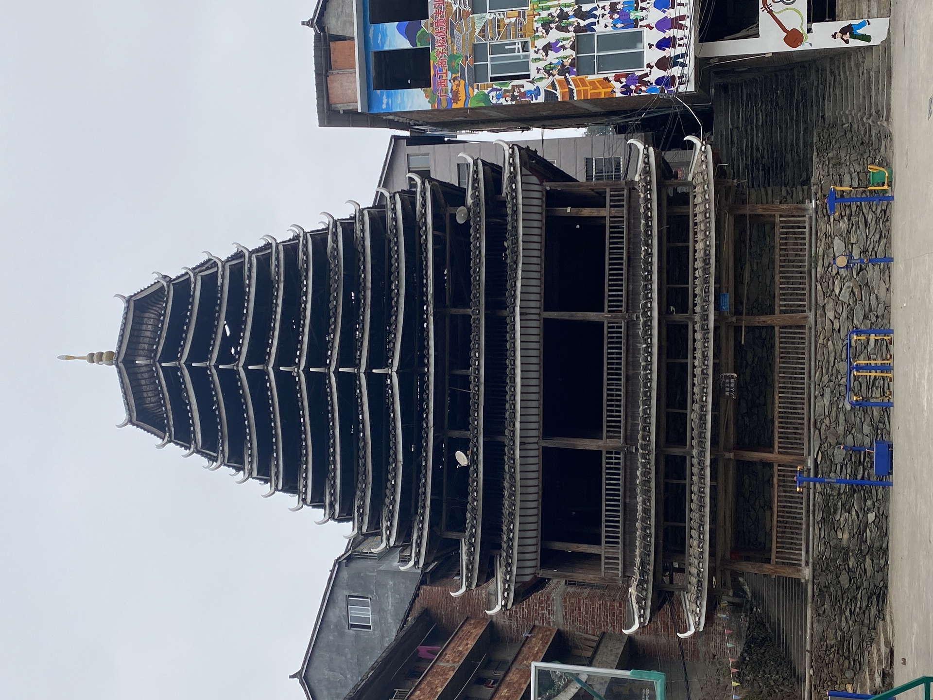 平流鼓楼 、13层(2层四边形,11层六边形)攒尖顶,2003年,掌墨师:胡义庆,(已逝)