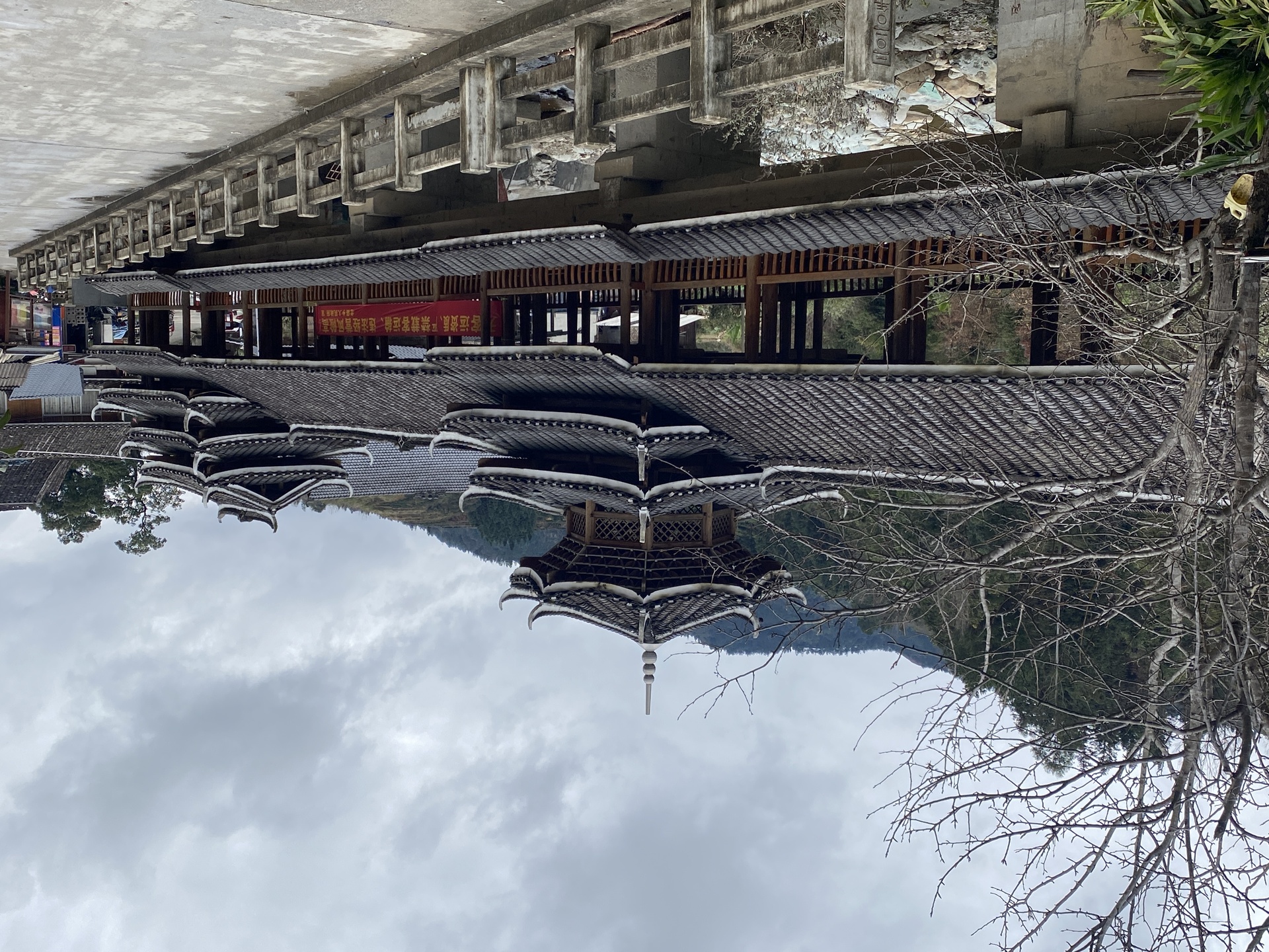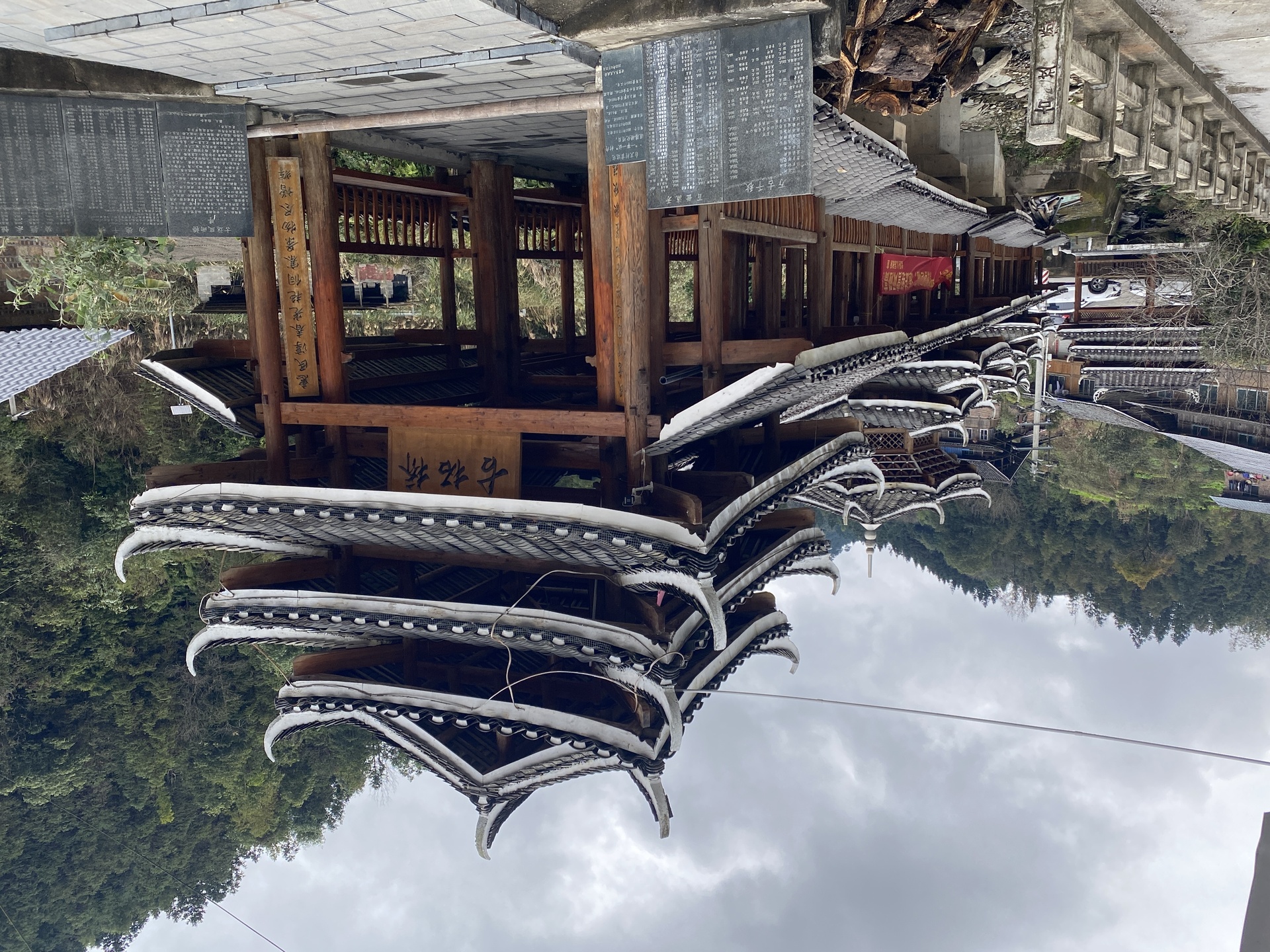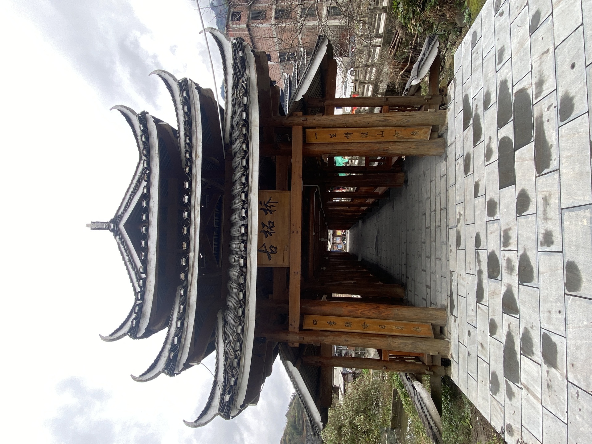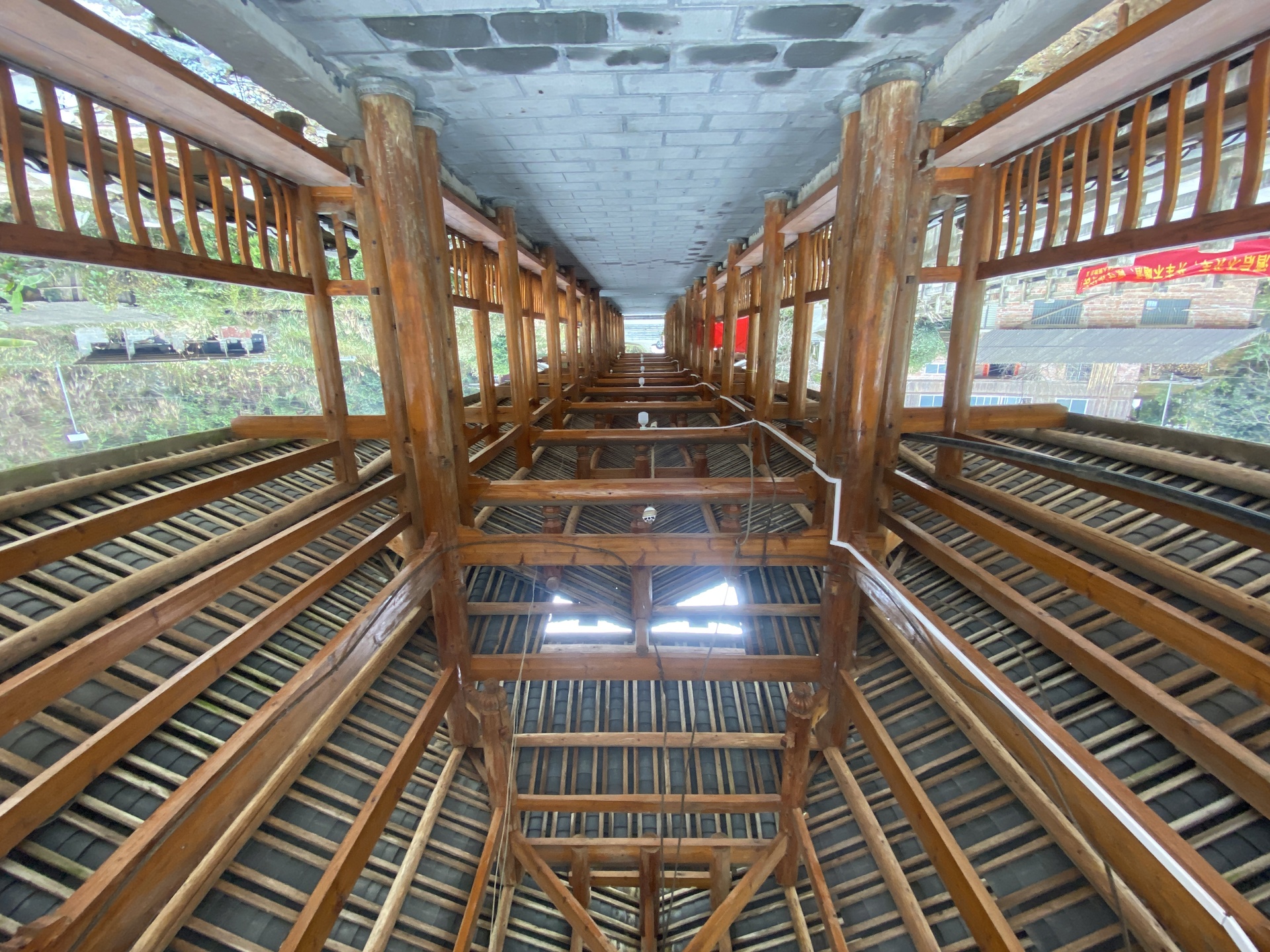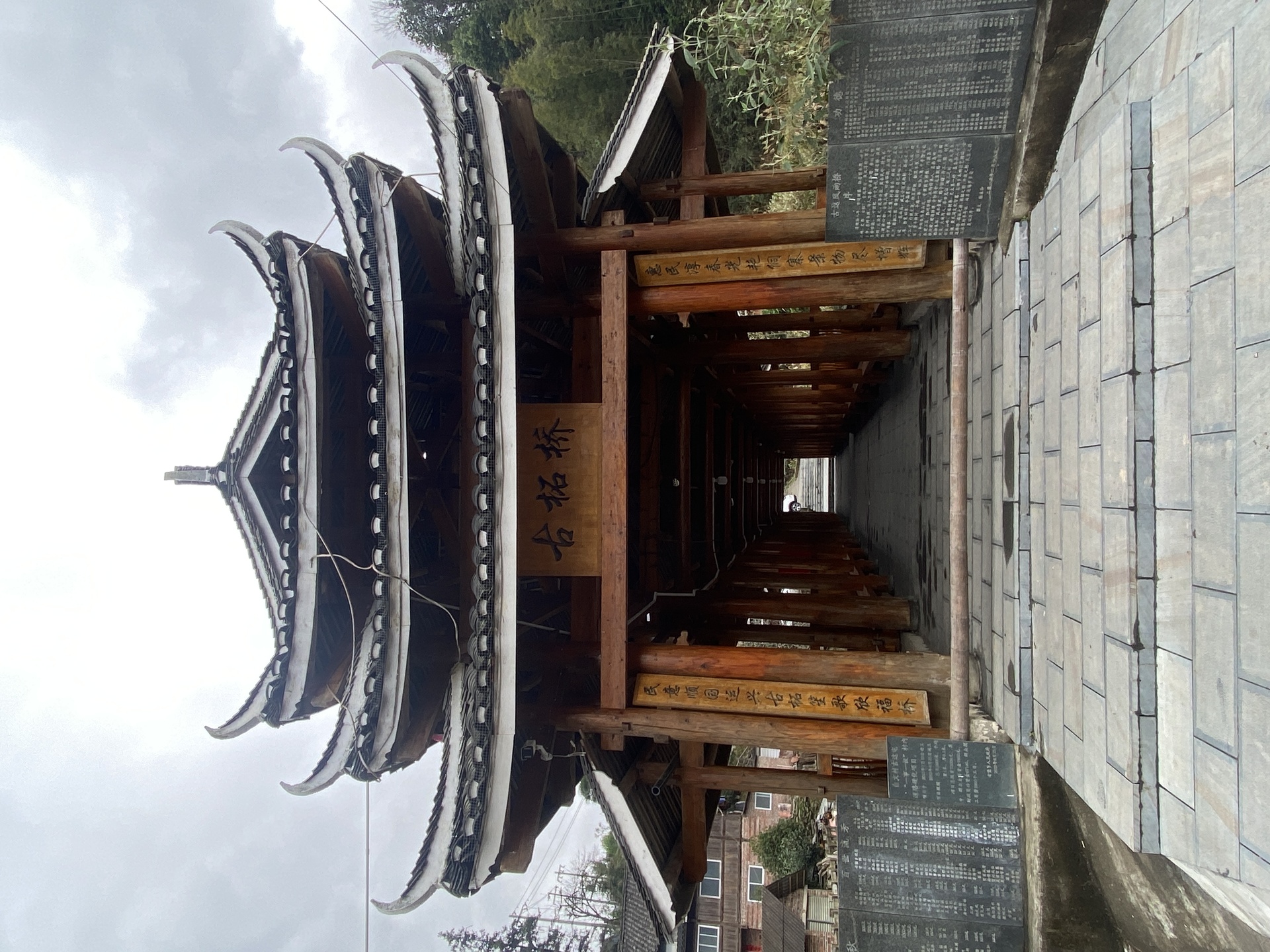 白文村 白这屯 风雨桥, 始建清顺治八年, 2015年建,长39米,宽4米,亭高19.8米,掌墨师:吴承惠