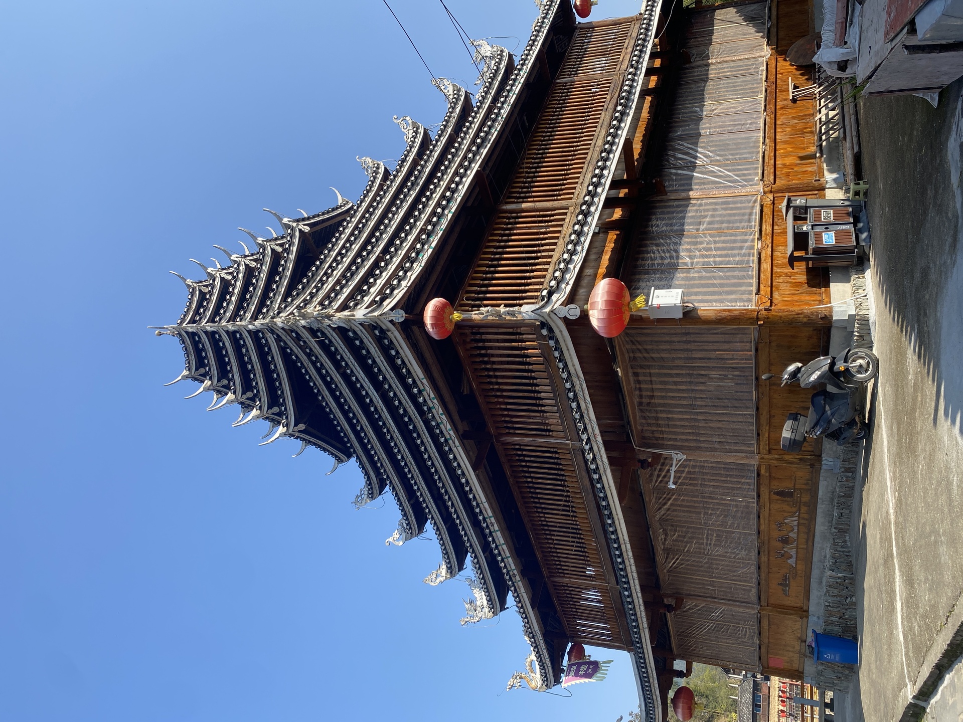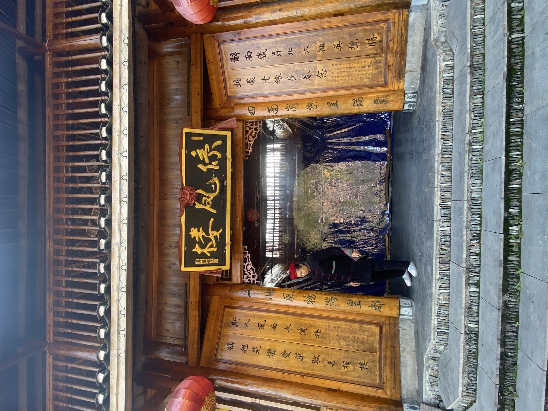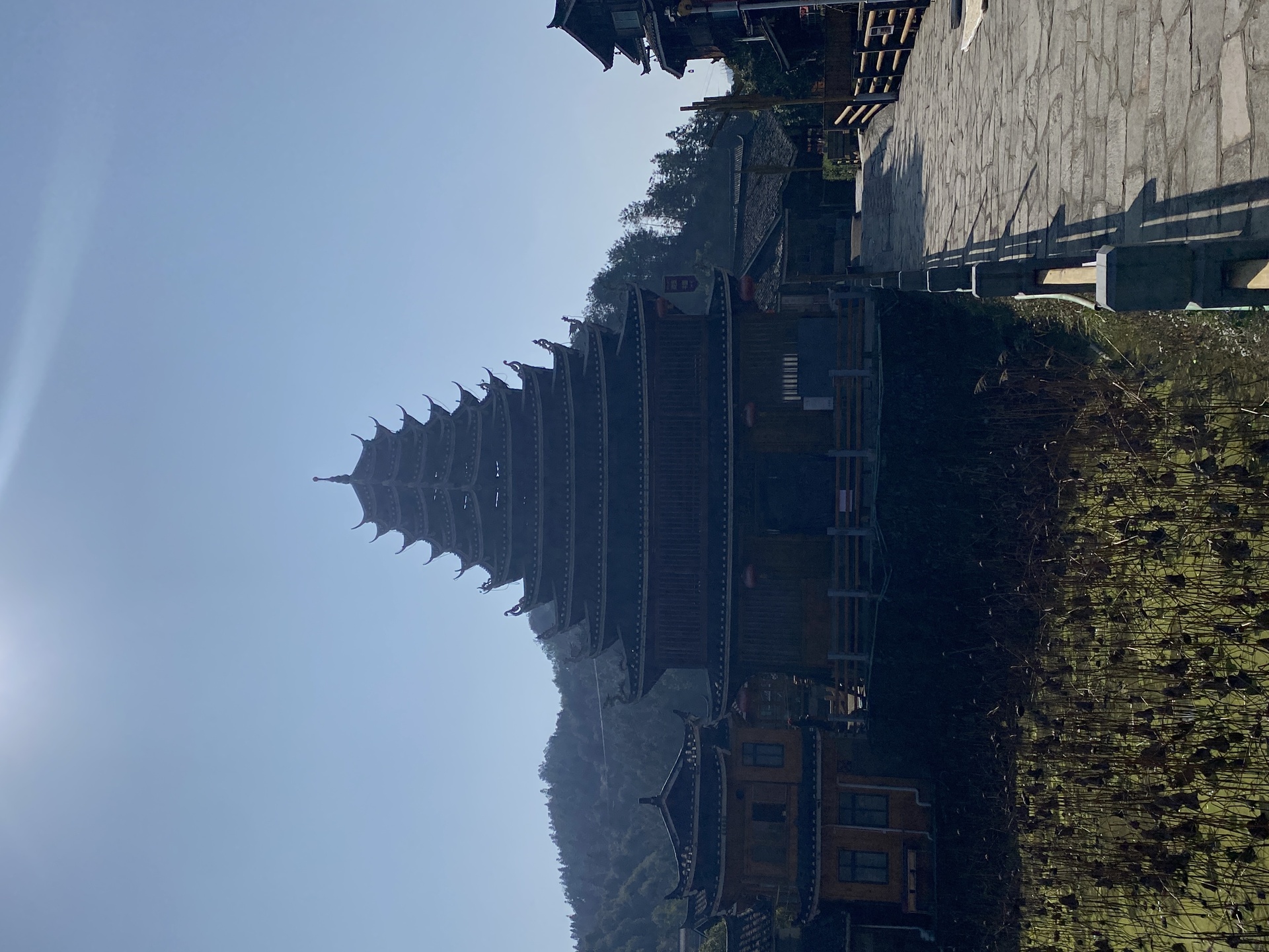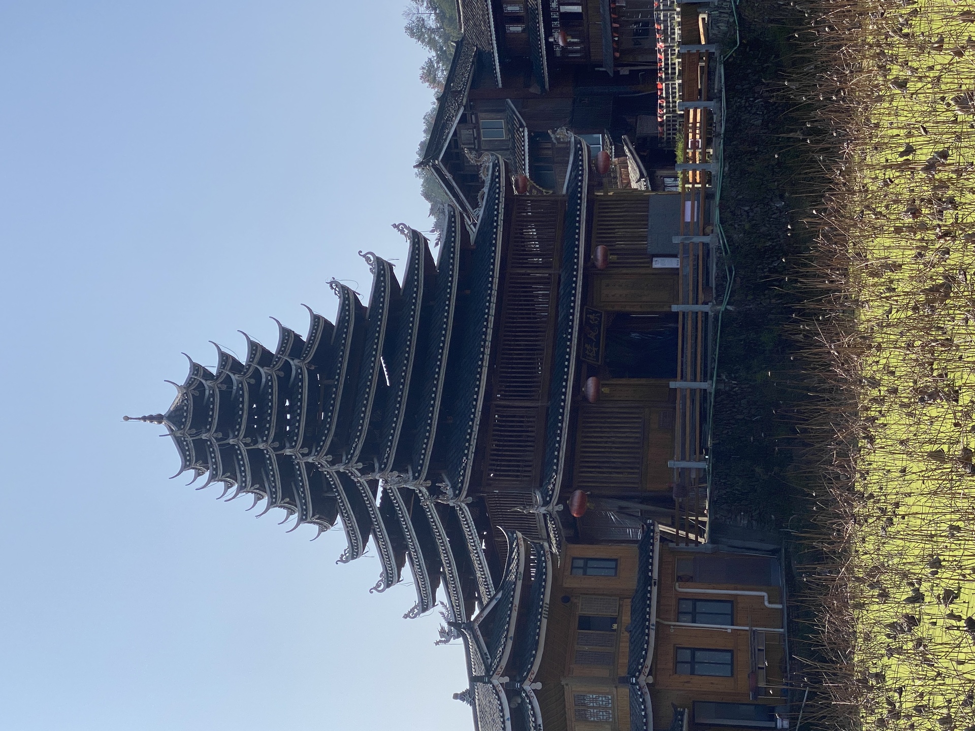 皇都盘寨系风鼓楼,9层(5层四边,4层8边形)攒尖顶,2016年建,出资人:潘爱华博士,4对12柱 ,外圈12柱